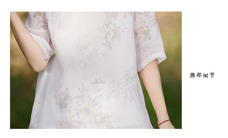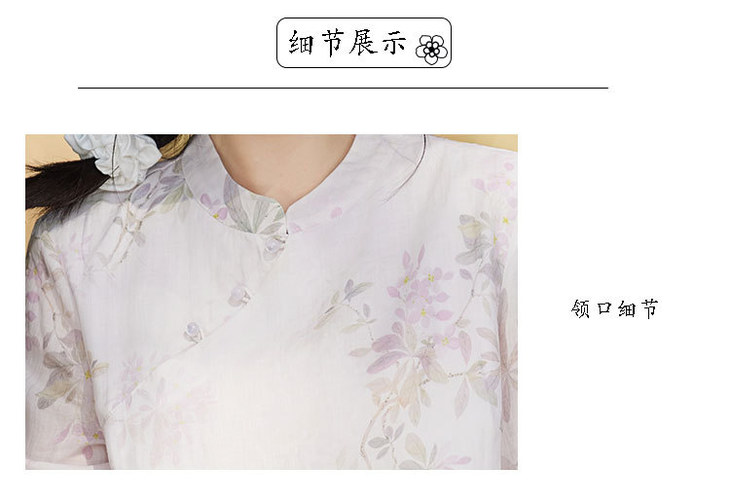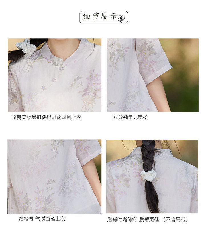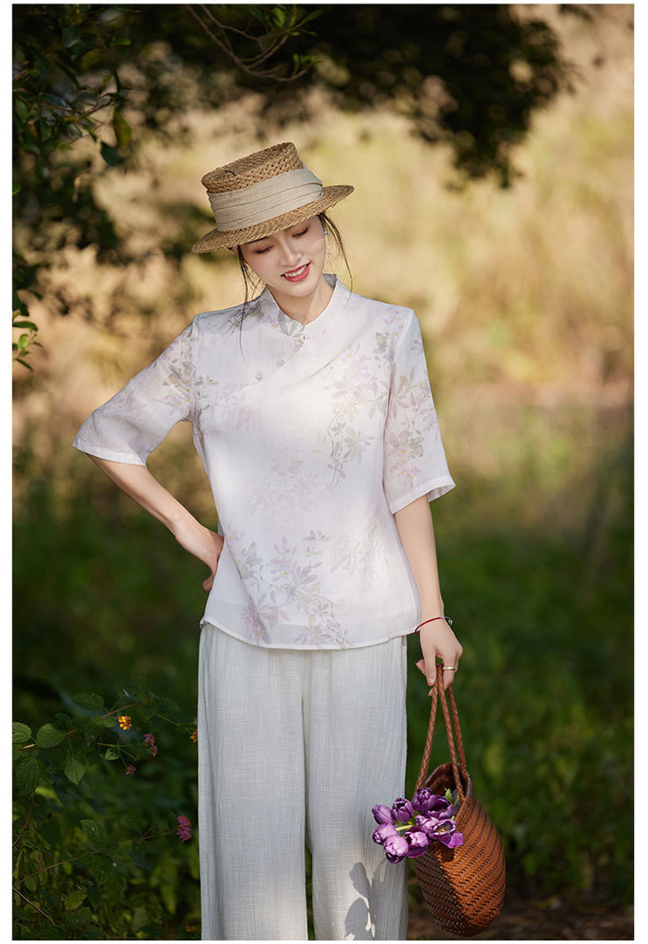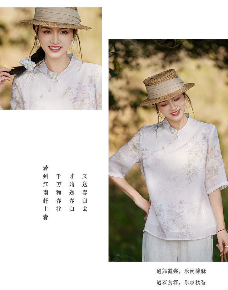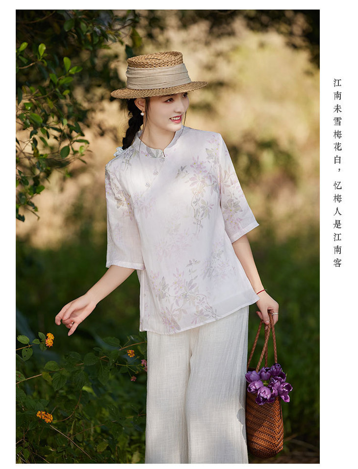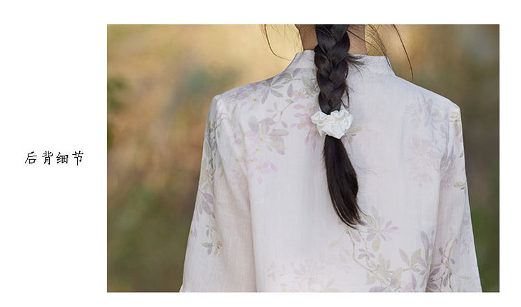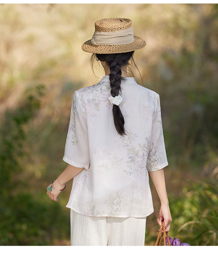 中国风复古小众独特设计立领盘扣,新中式衬衫苎麻印花宽松上衣TT-96311