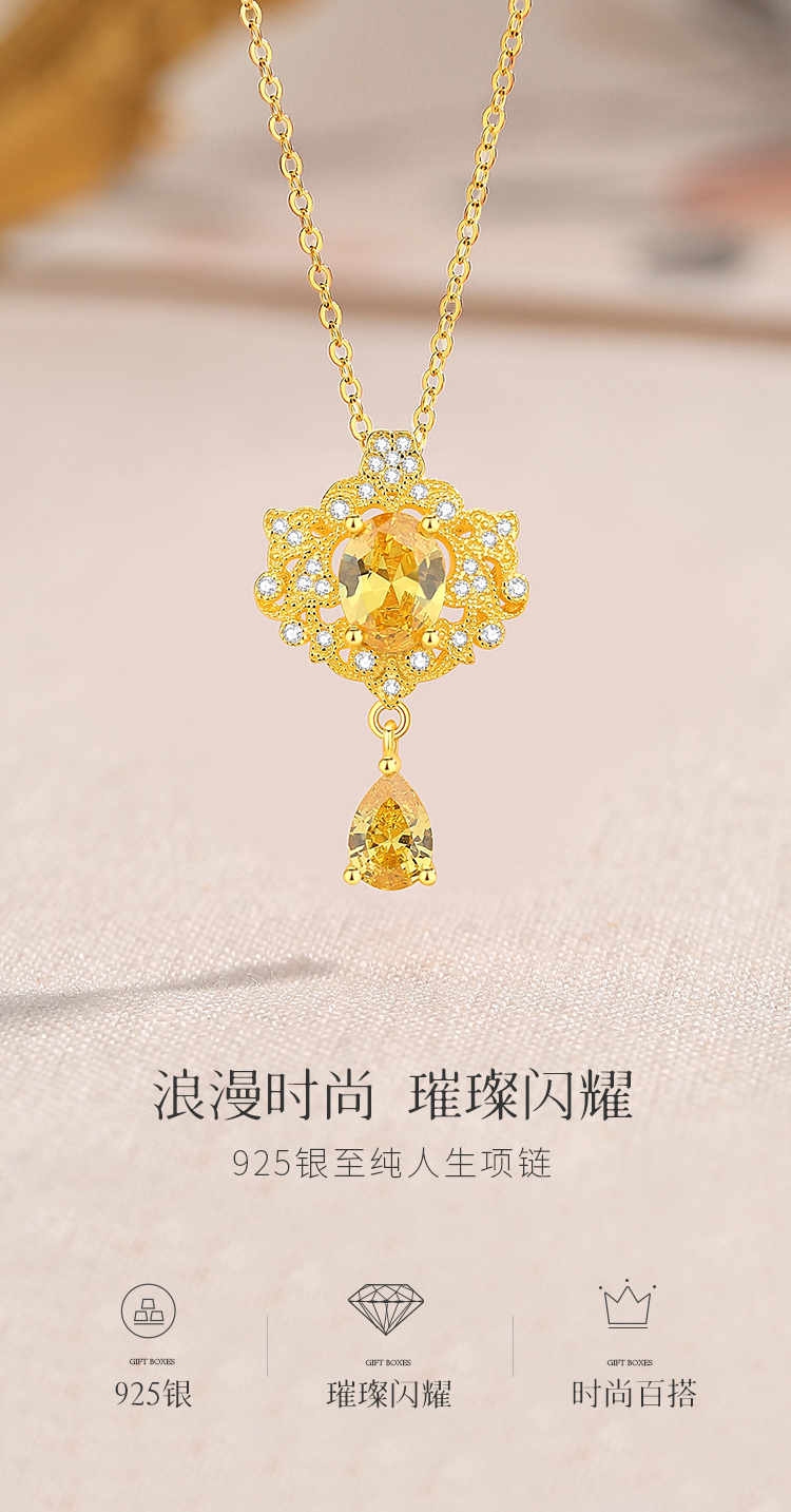Winy925纯银幸运之光项链送女友闺蜜节日生日礼物