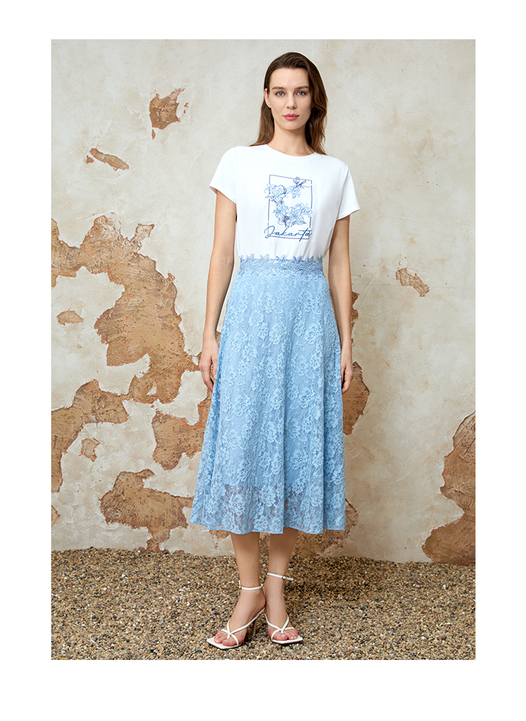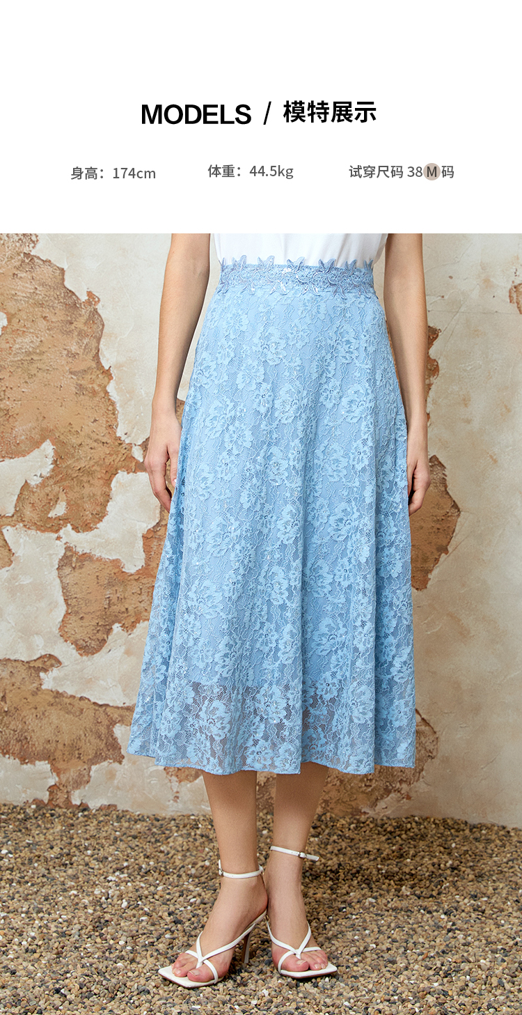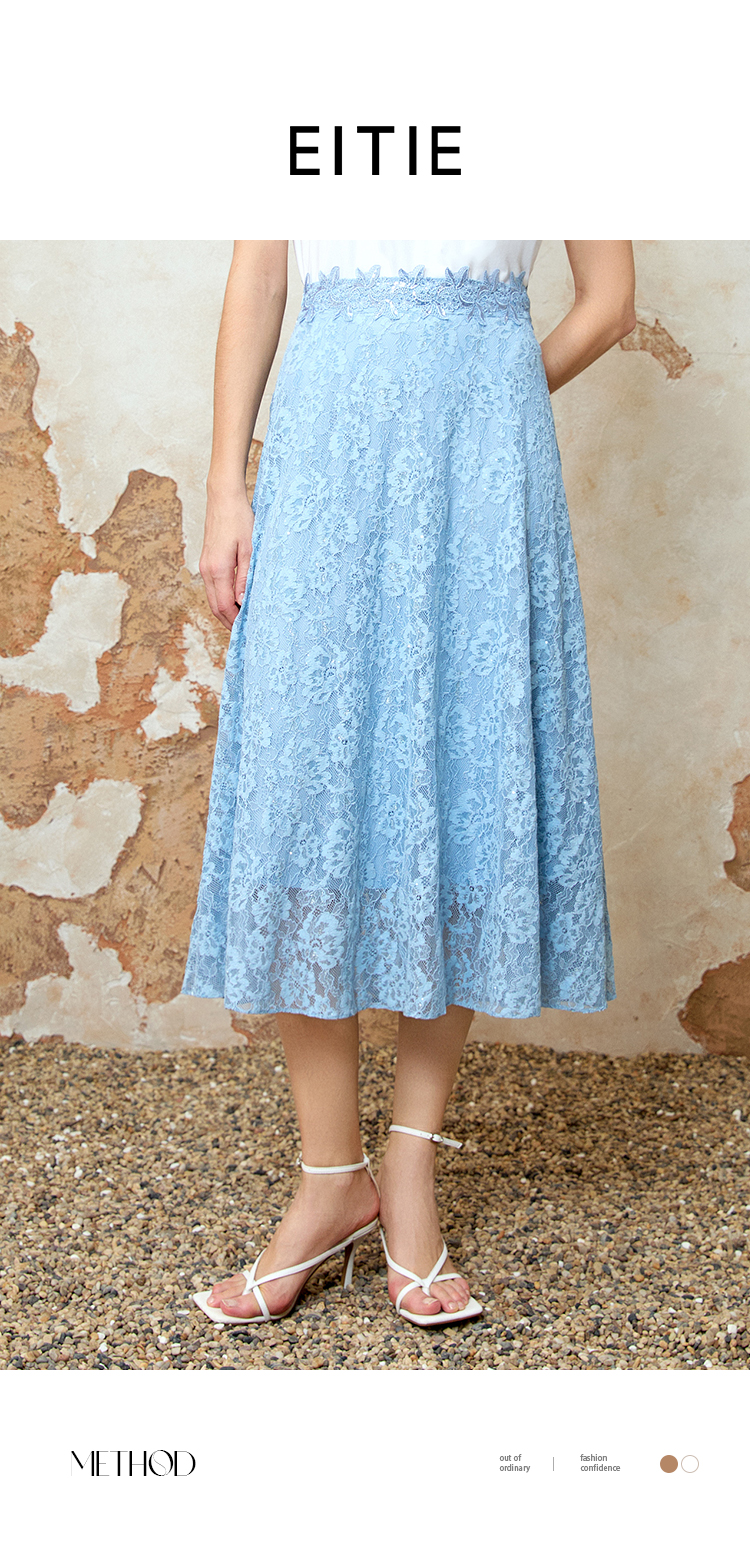 EITIE爱特爱夏季新款精致蕾丝a字高腰显瘦百搭通勤半身裙8206905