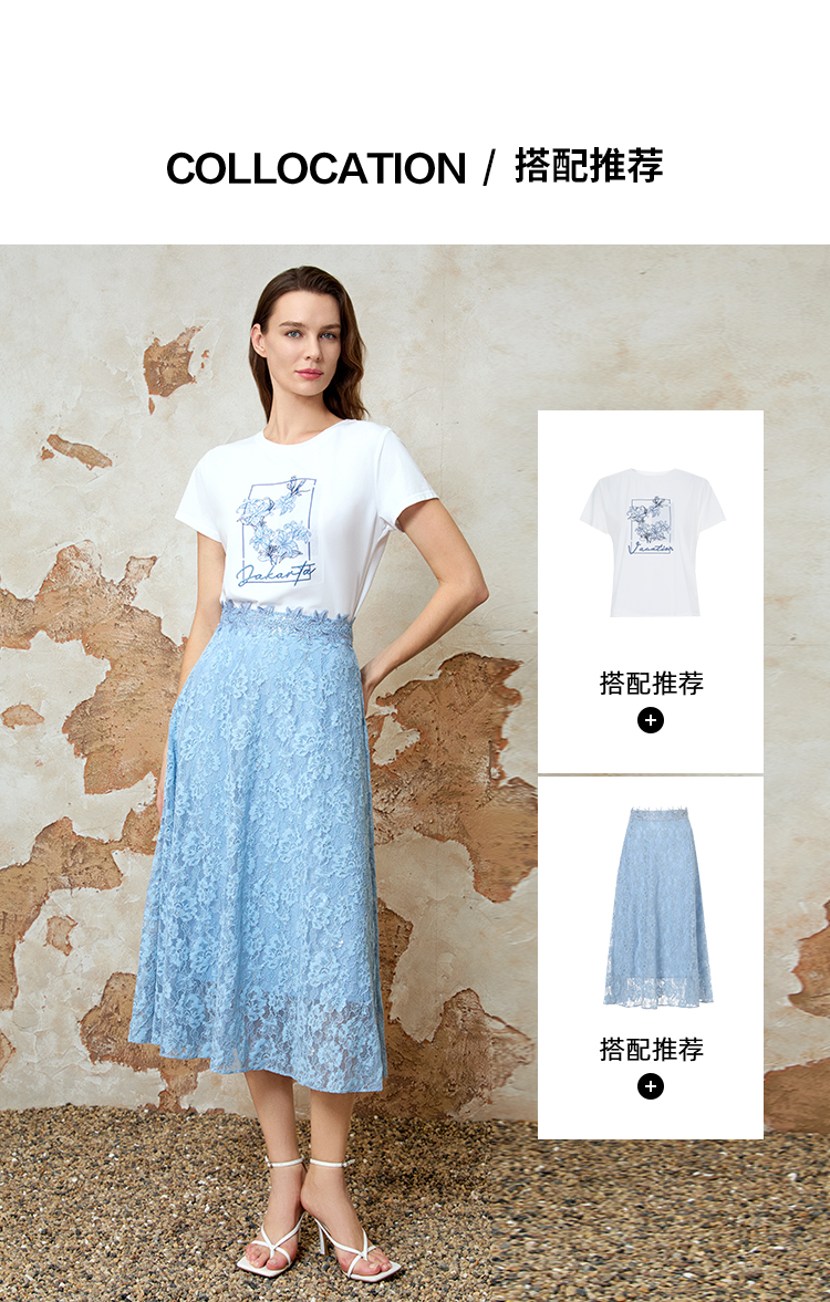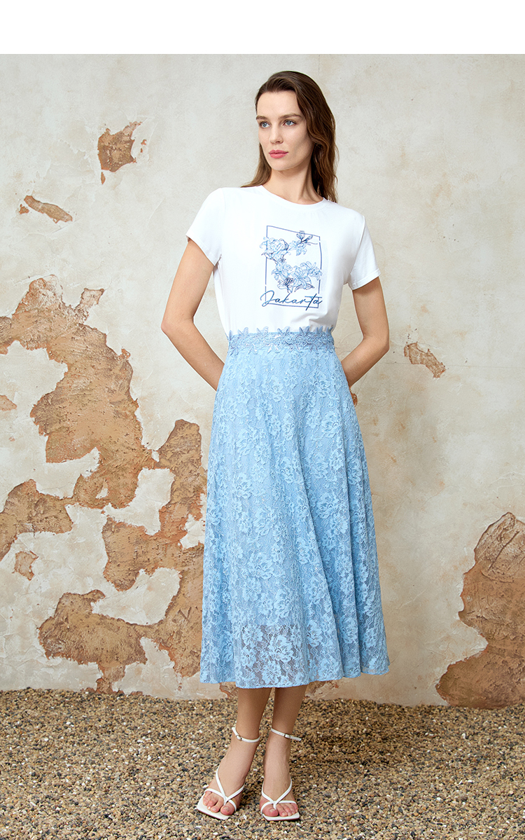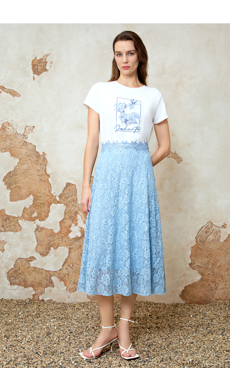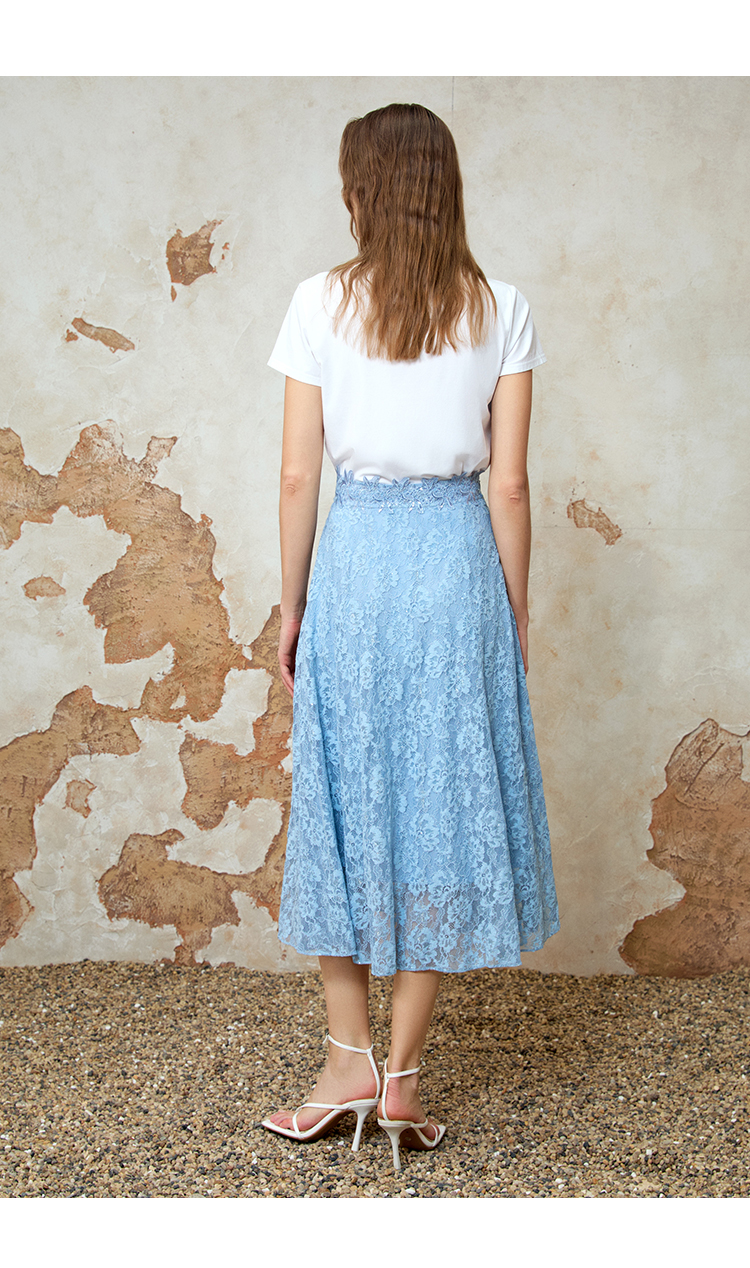 EITIE爱特爱夏季新款精致蕾丝a字高腰显瘦百搭通勤半身裙8206905