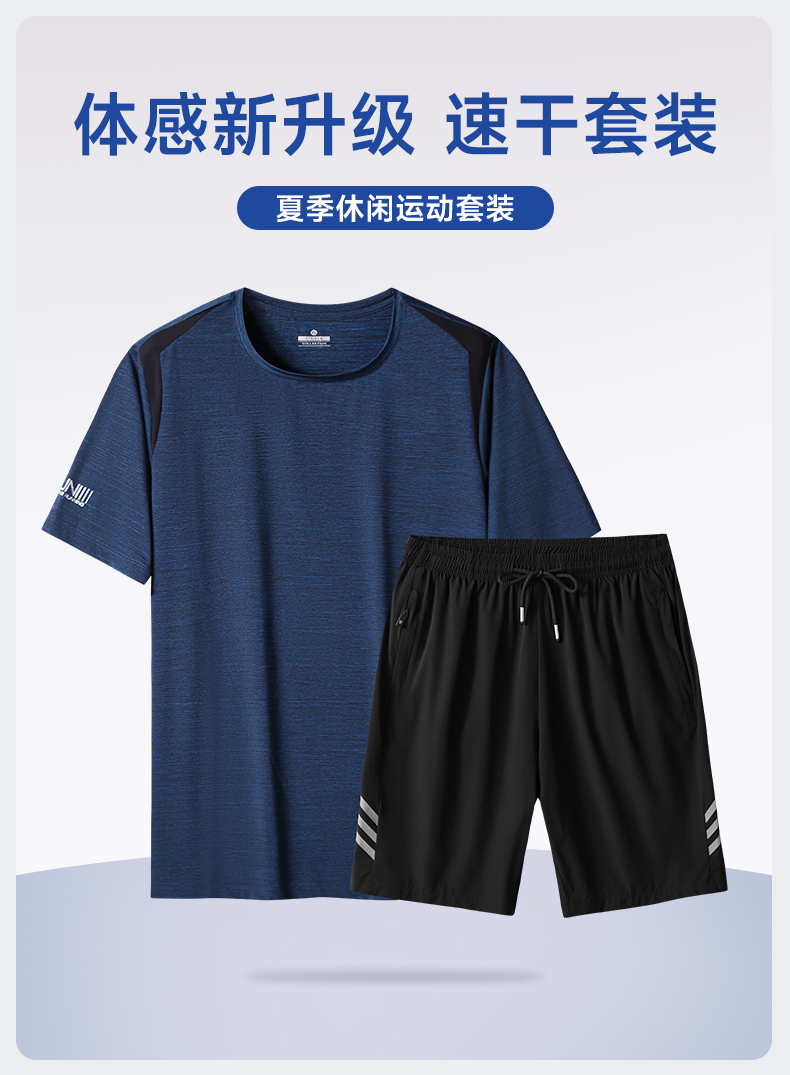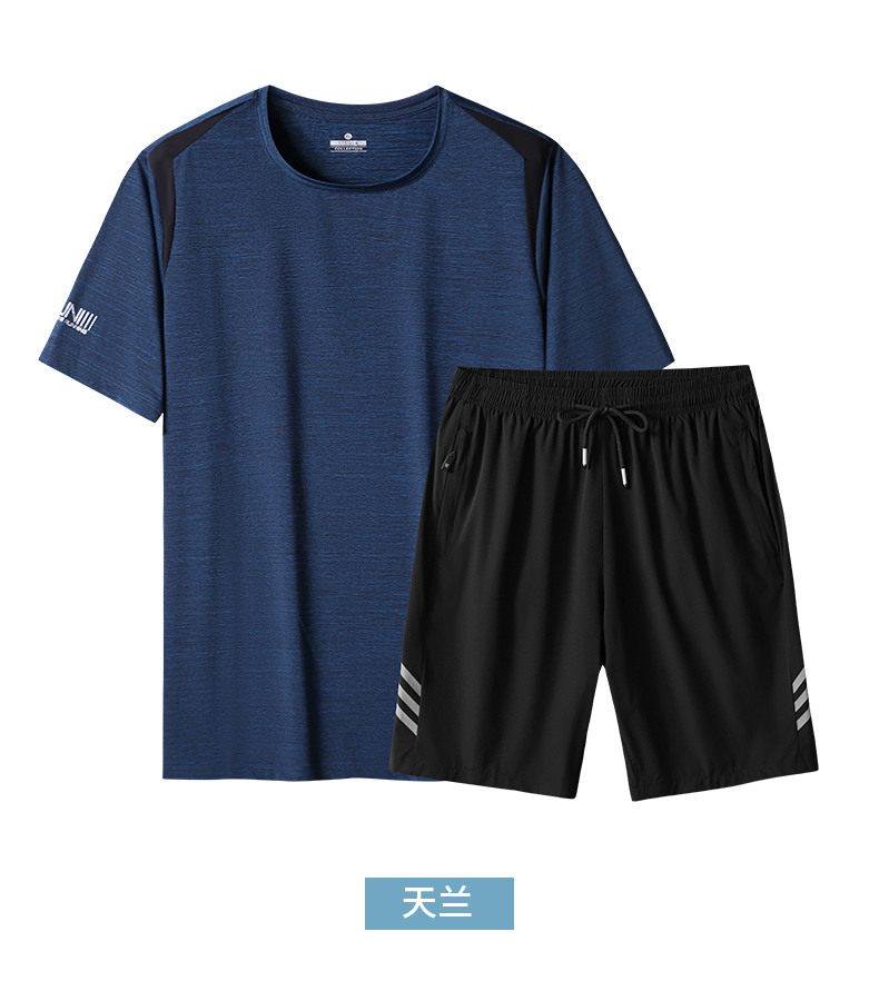 【Q】【冰丝速干】【新款DSF】大依优型大码男装夏季套装运动休闲加肥加大短袖短裤大号T恤套装夏装