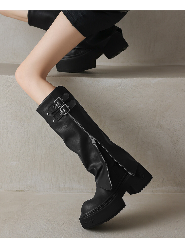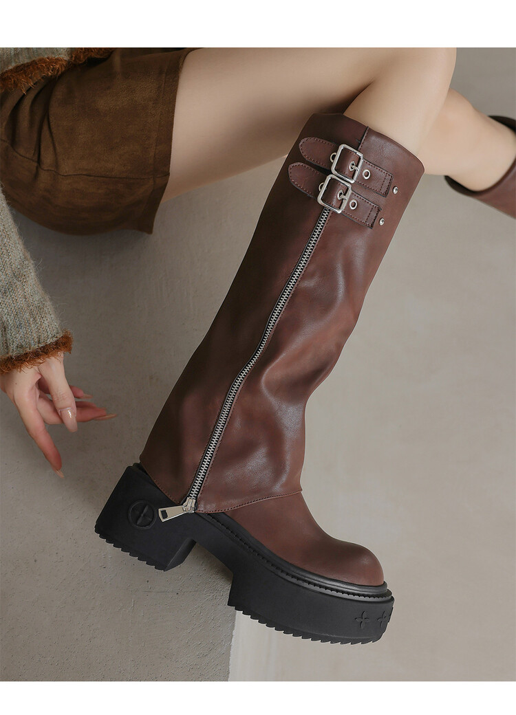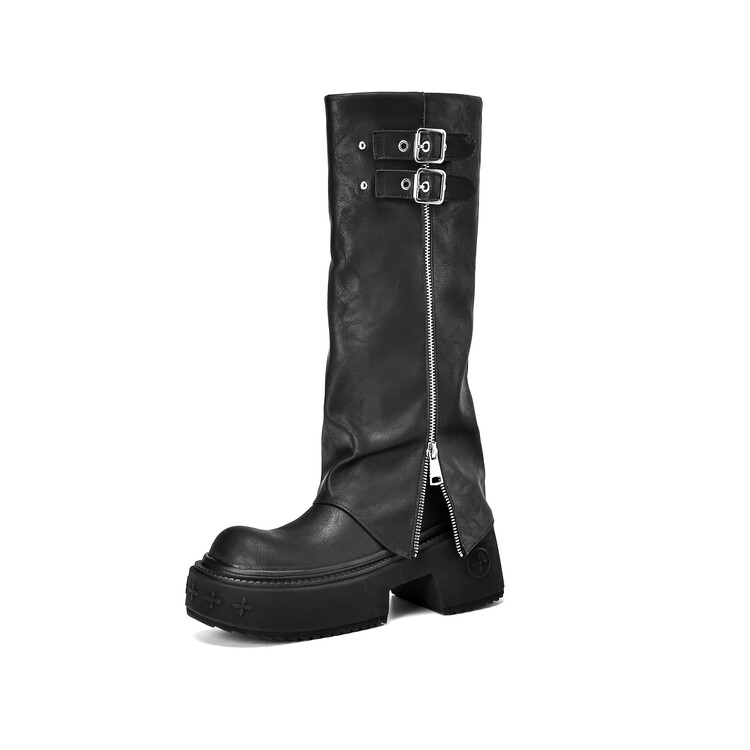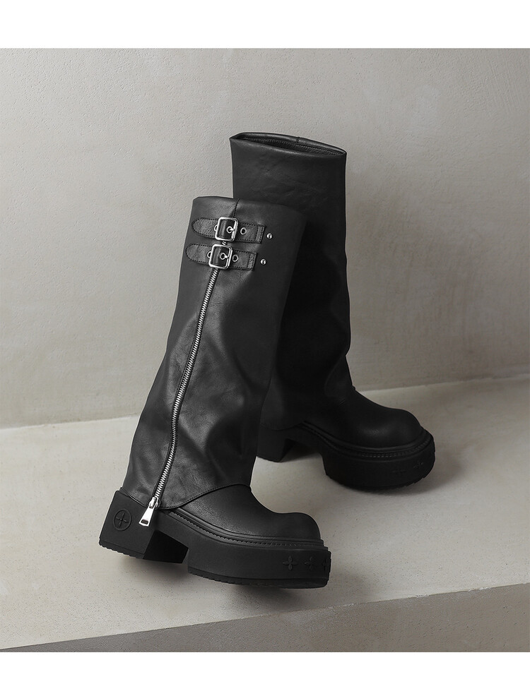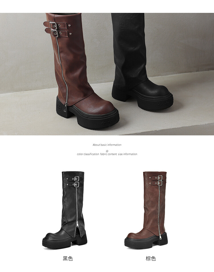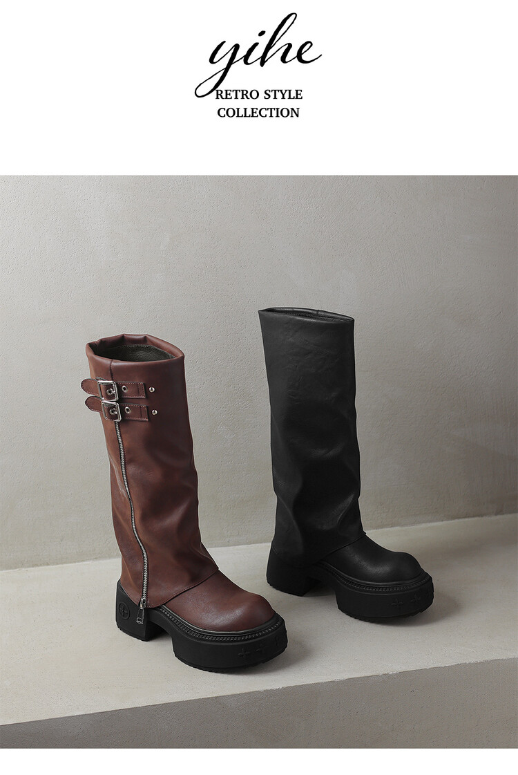 【预售7天】显瘦百搭欧美时尚松糕厚底裤管靴女不过膝高靴新款西部骑士靴MX&mx88660