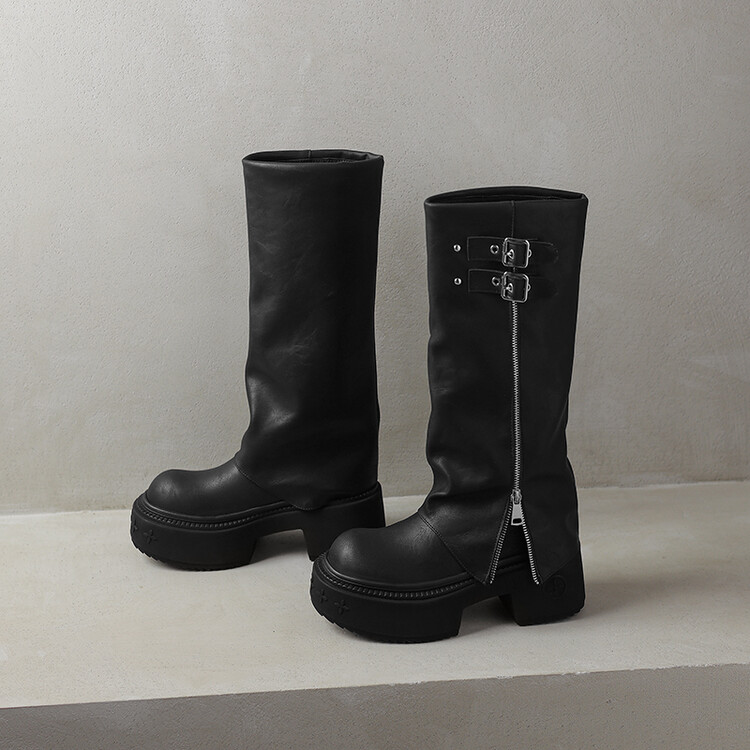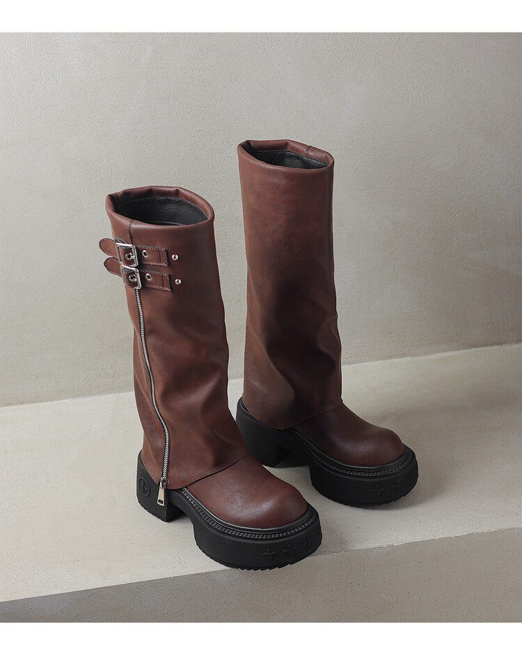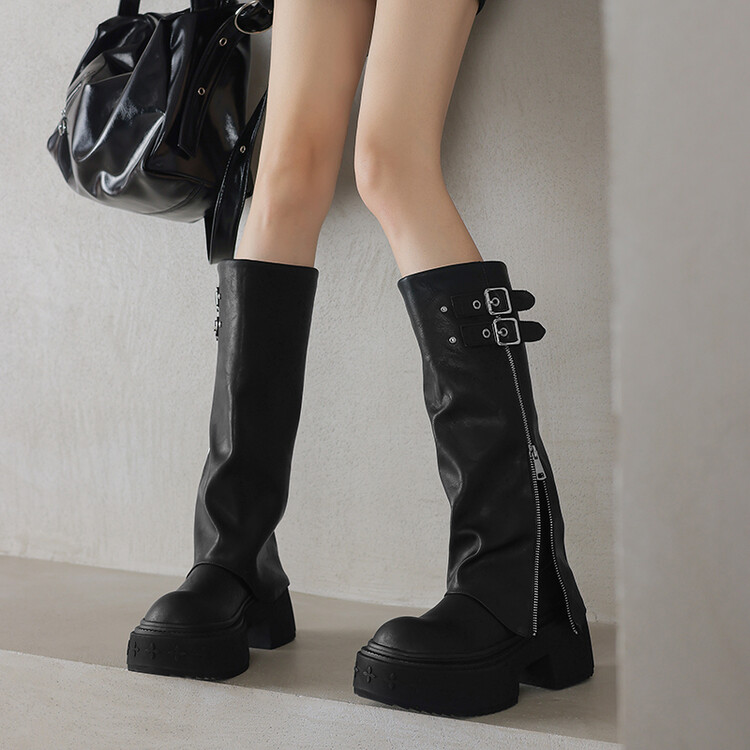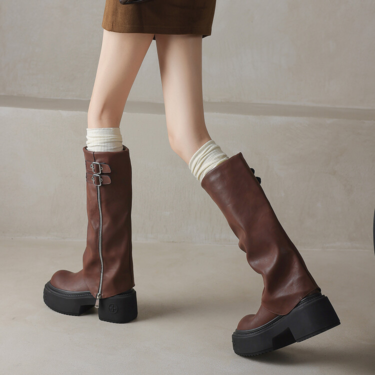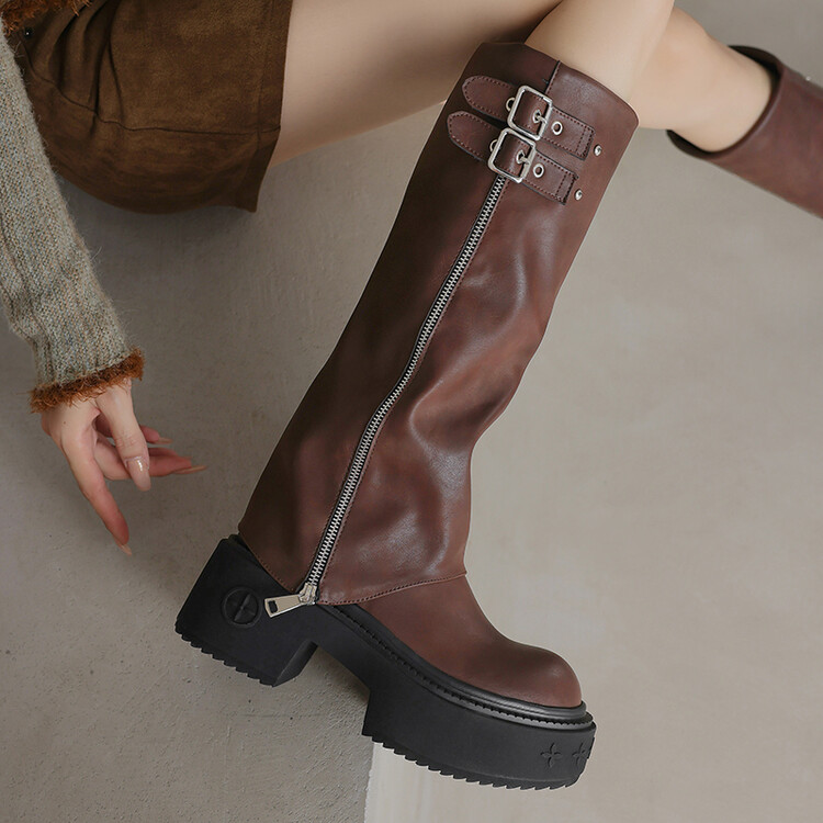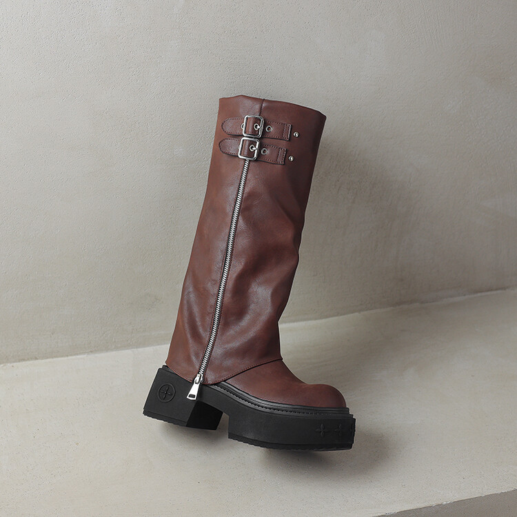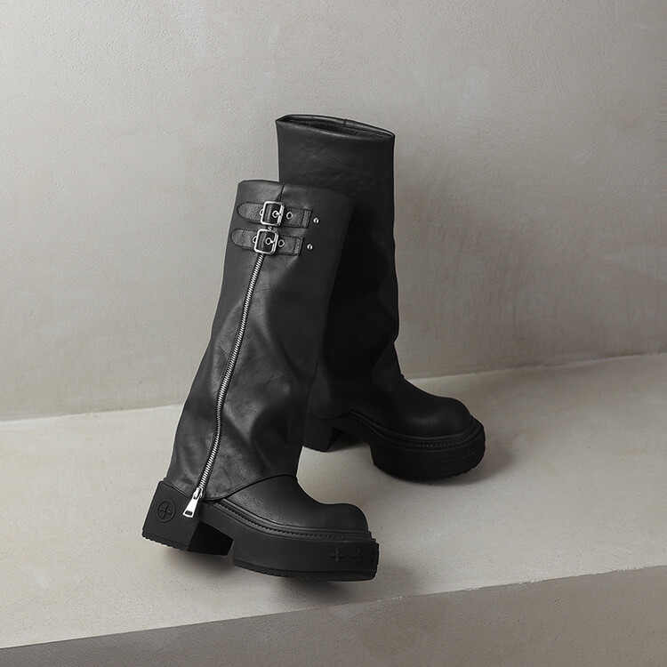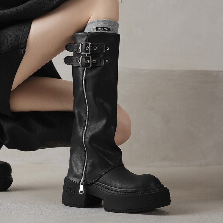 【预售7天】显瘦百搭欧美时尚松糕厚底裤管靴女不过膝高靴新款西部骑士靴MX&mx88660