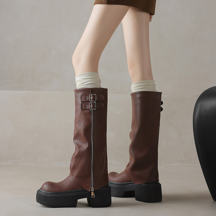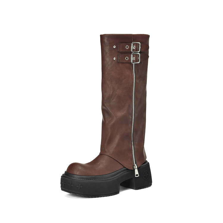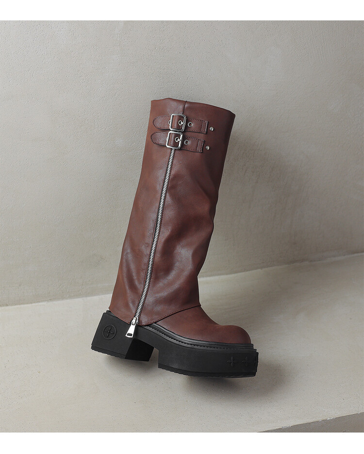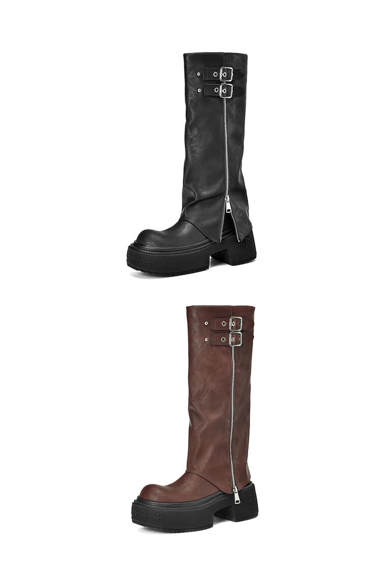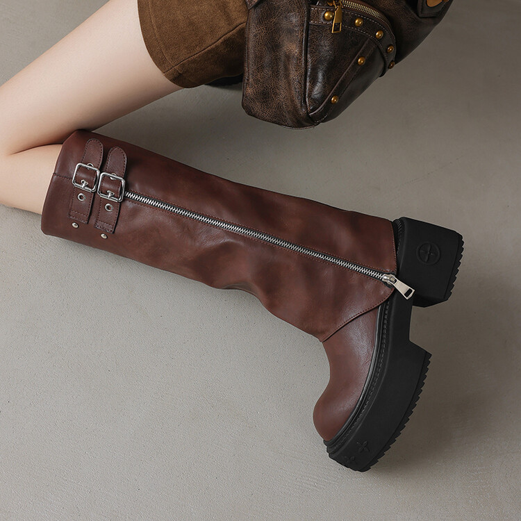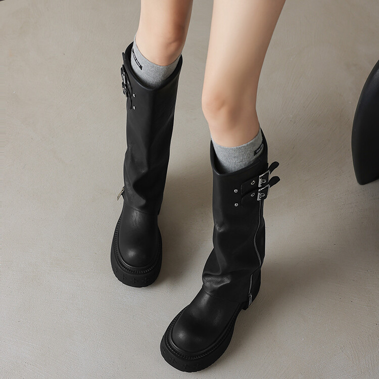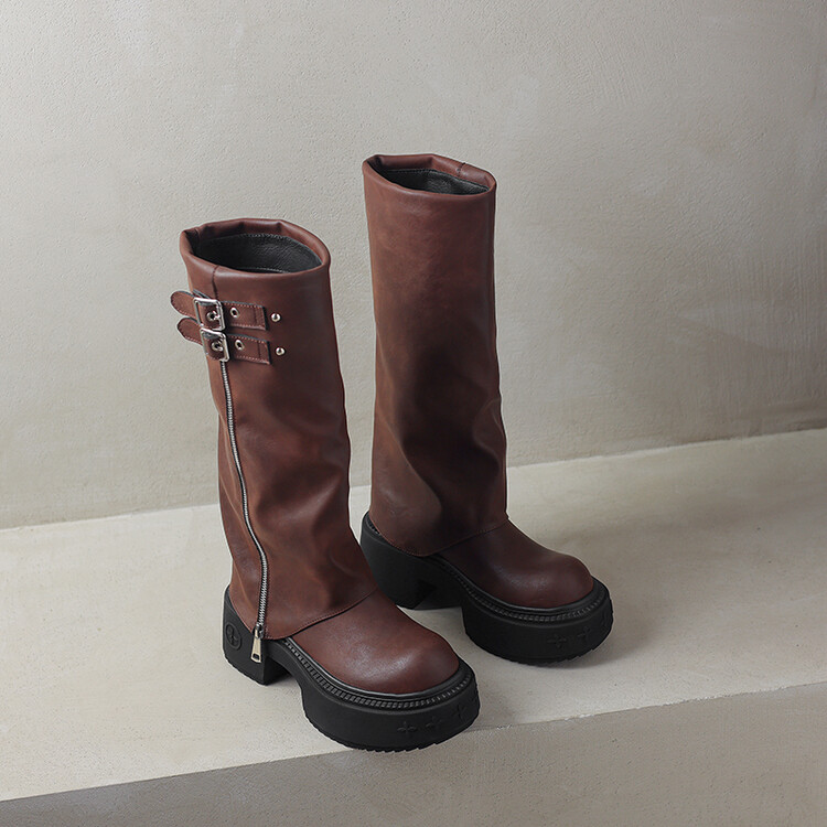 【预售7天】显瘦百搭欧美时尚松糕厚底裤管靴女不过膝高靴新款西部骑士靴MX&mx88660