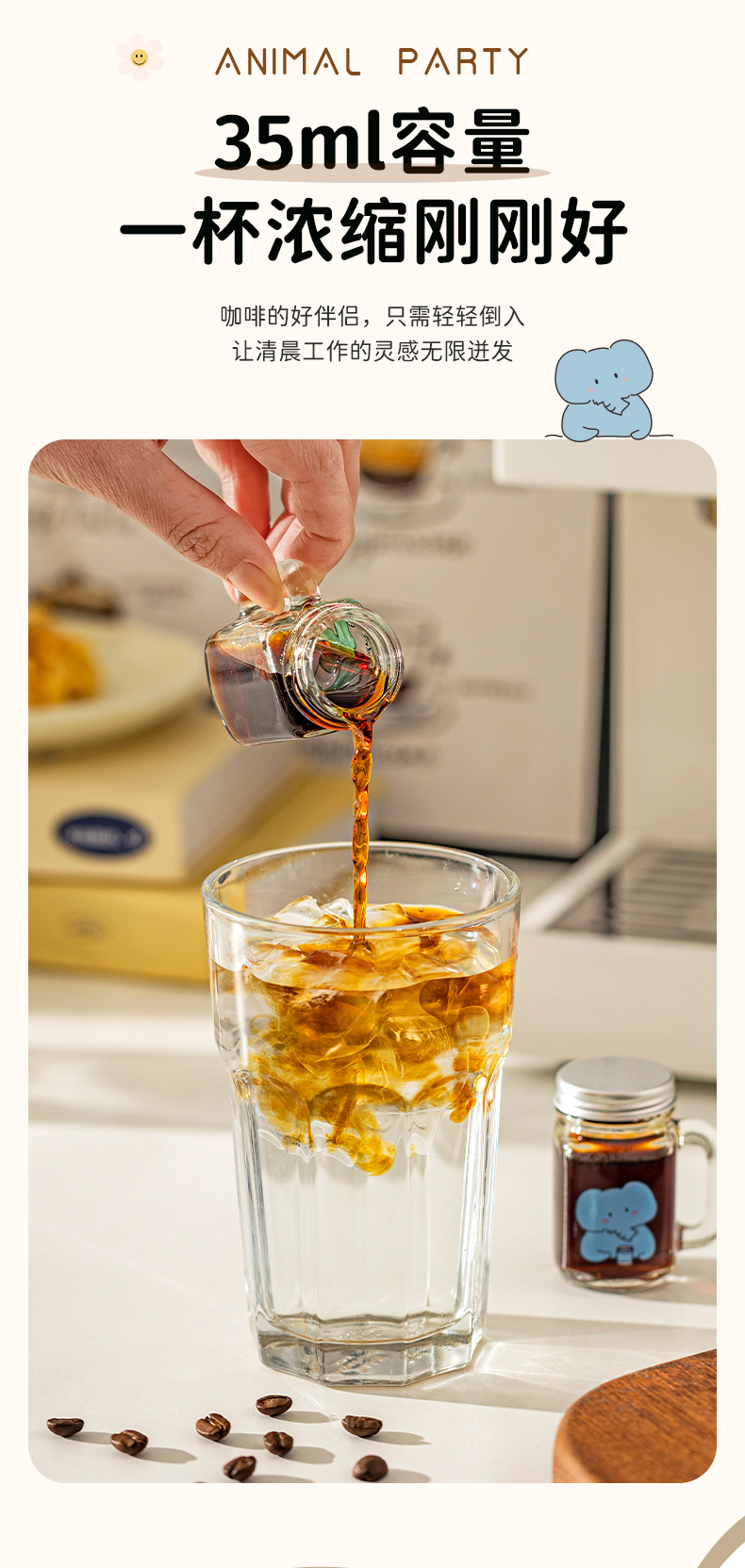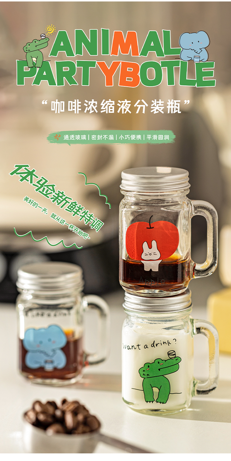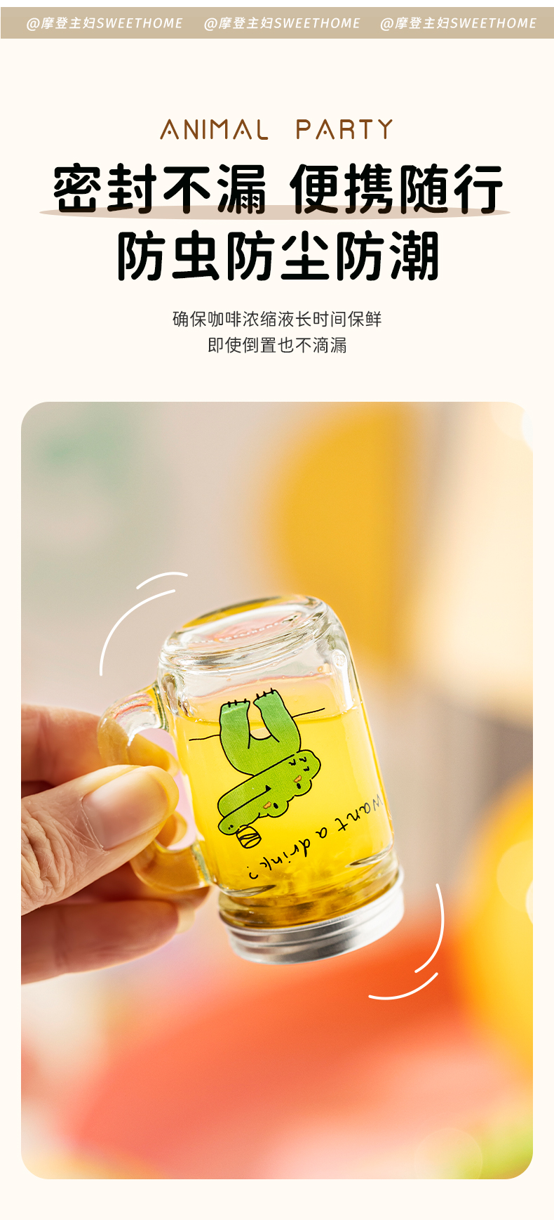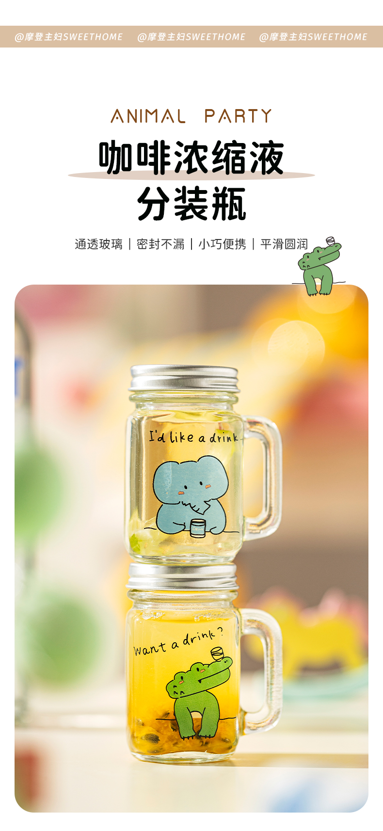 摩登主妇动物派对迷你咖啡浓缩液分装瓶透明小密封罐玻璃瓶储存罐