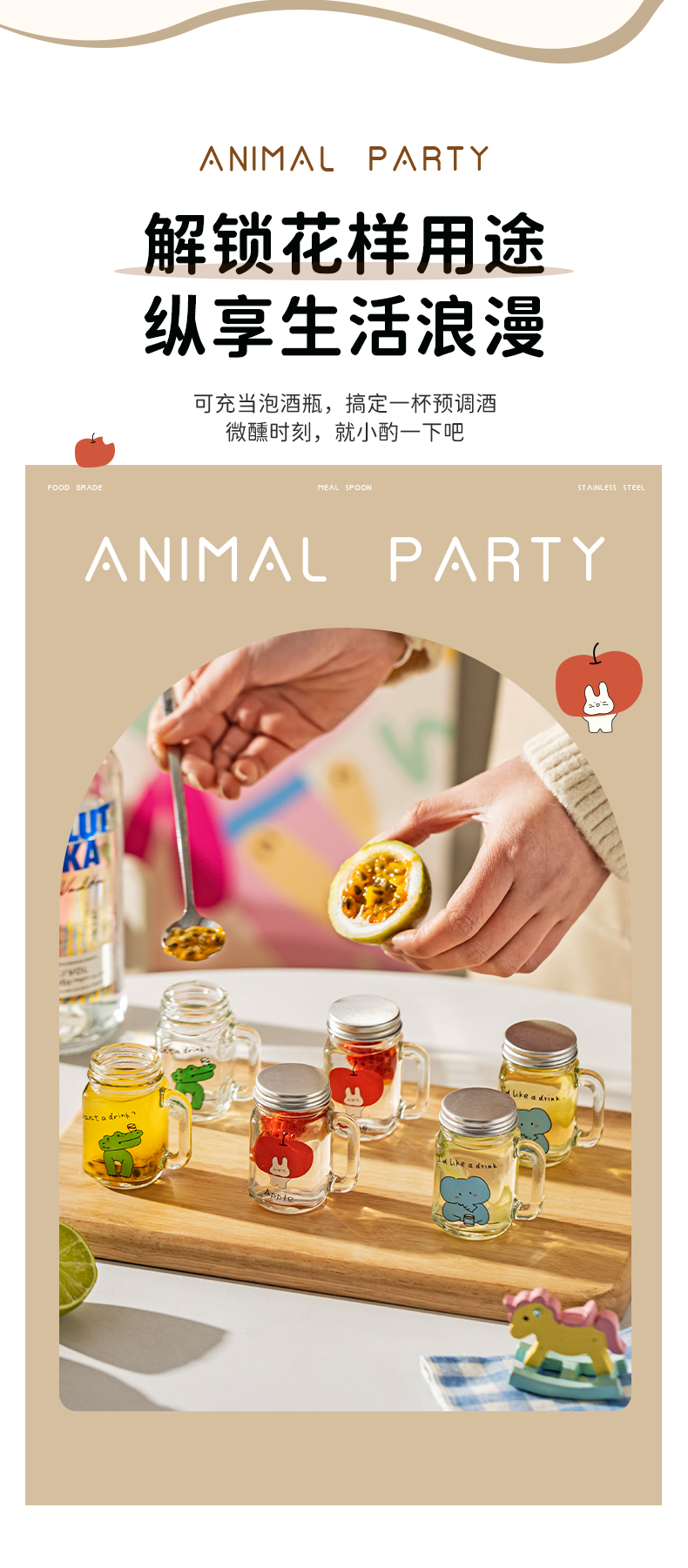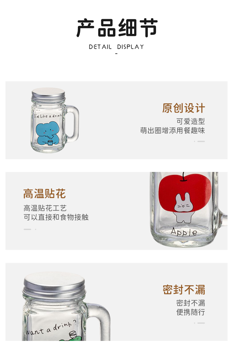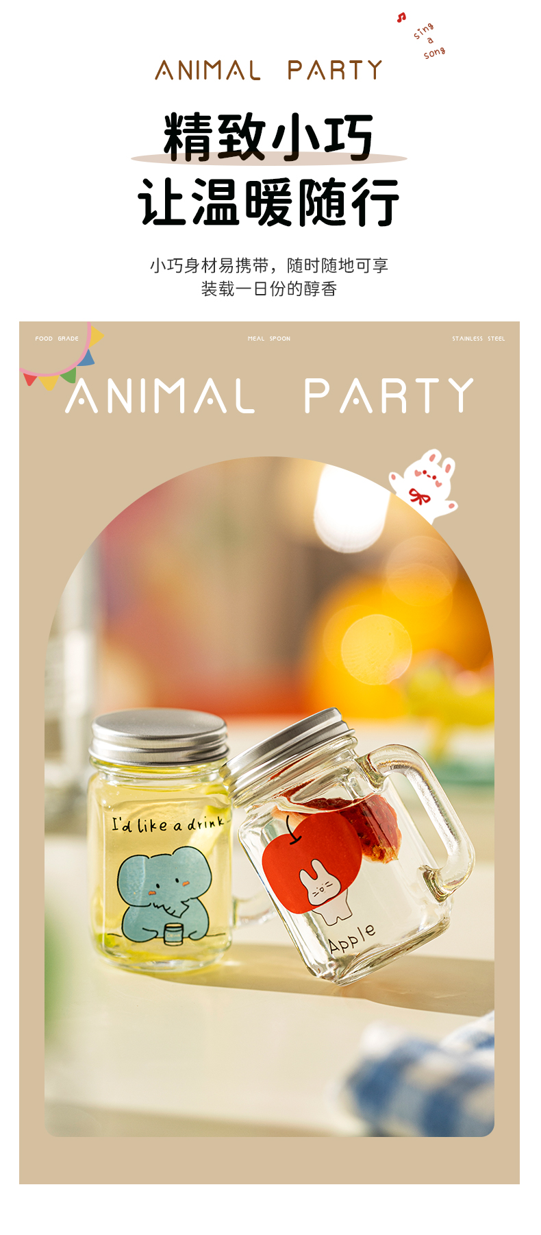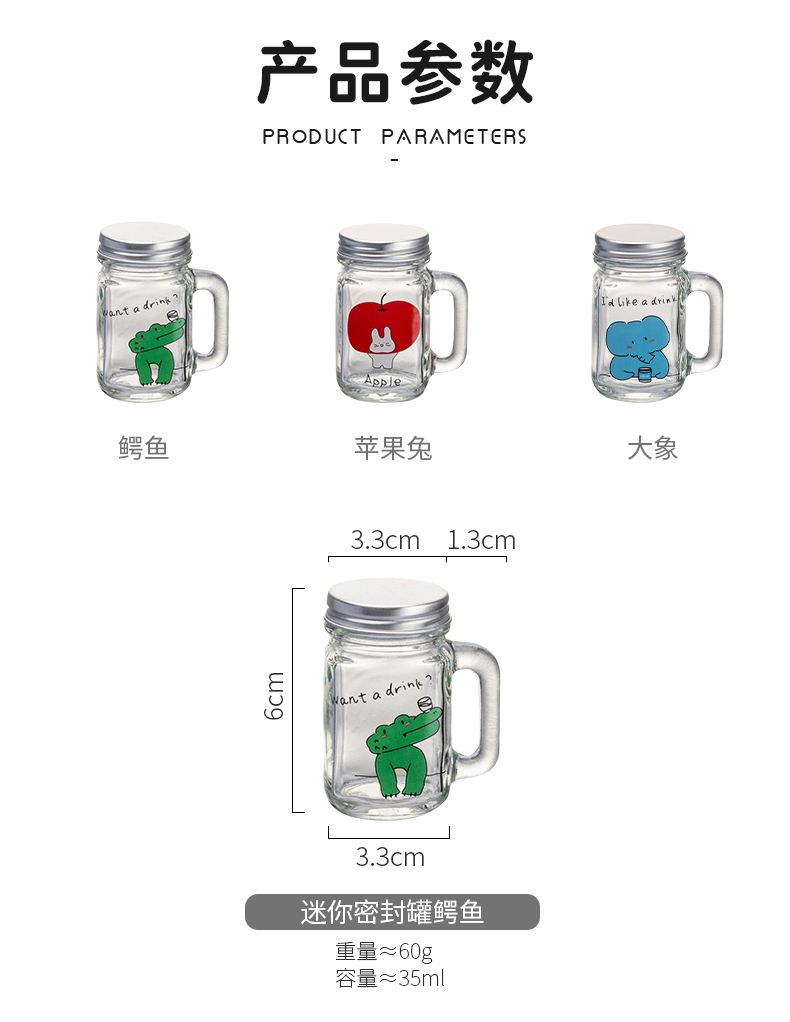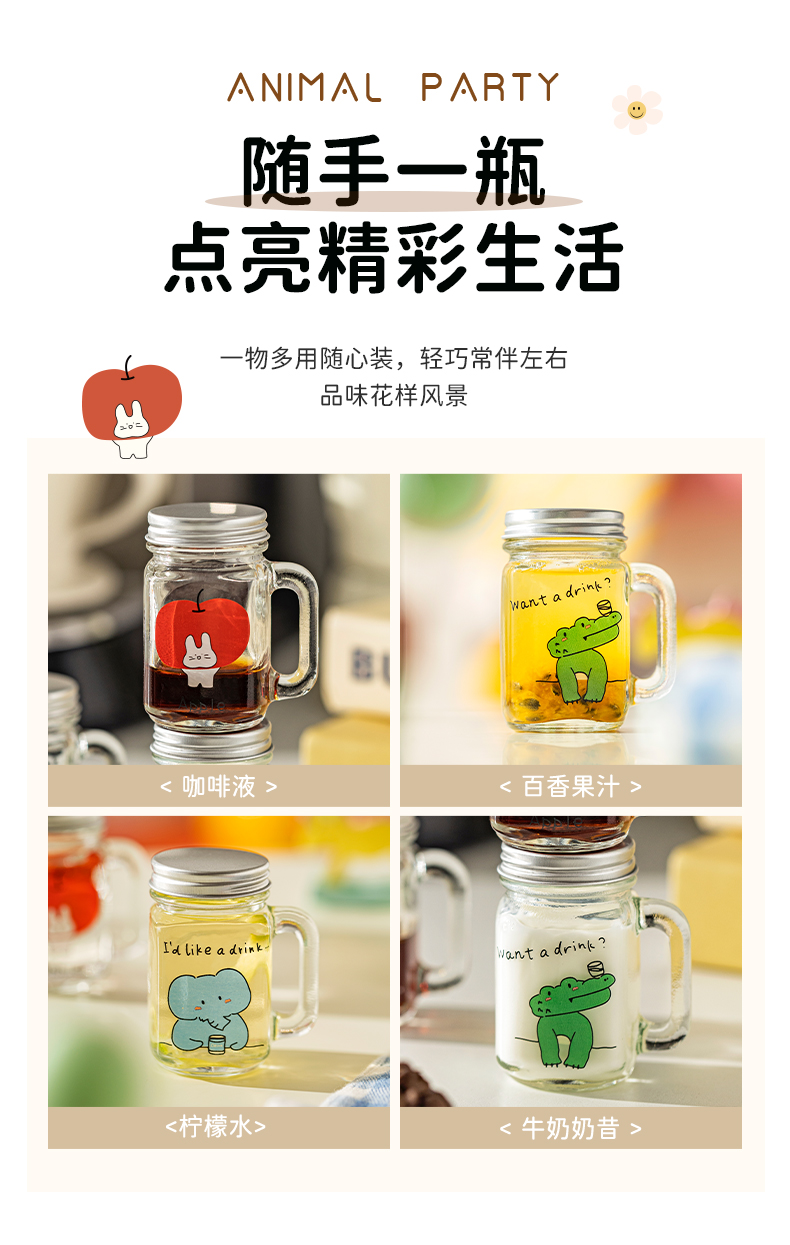 摩登主妇动物派对迷你咖啡浓缩液分装瓶透明小密封罐玻璃瓶储存罐