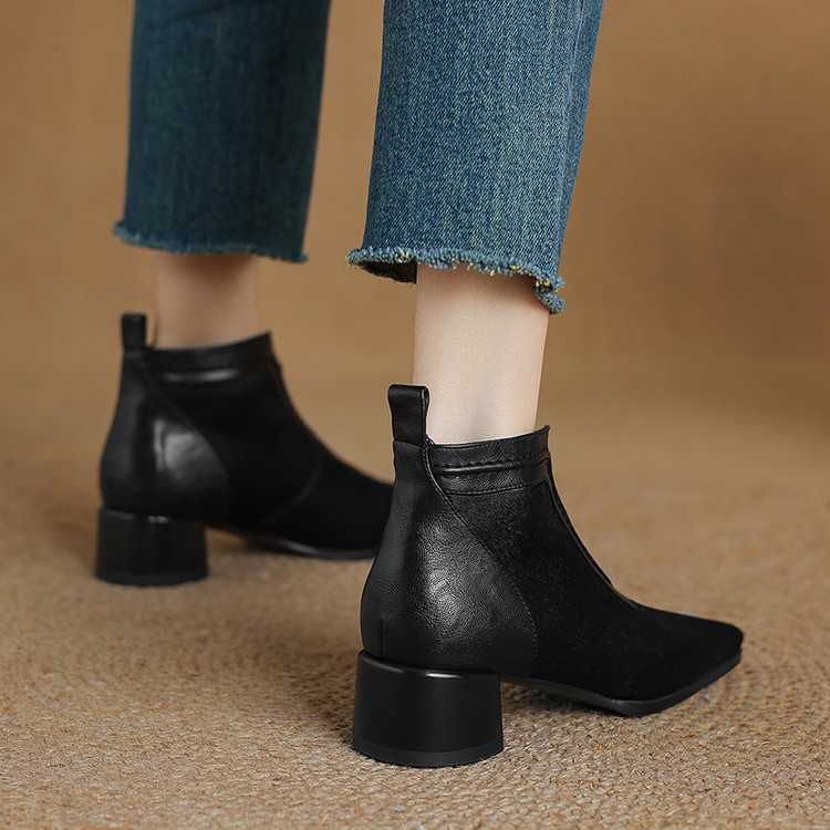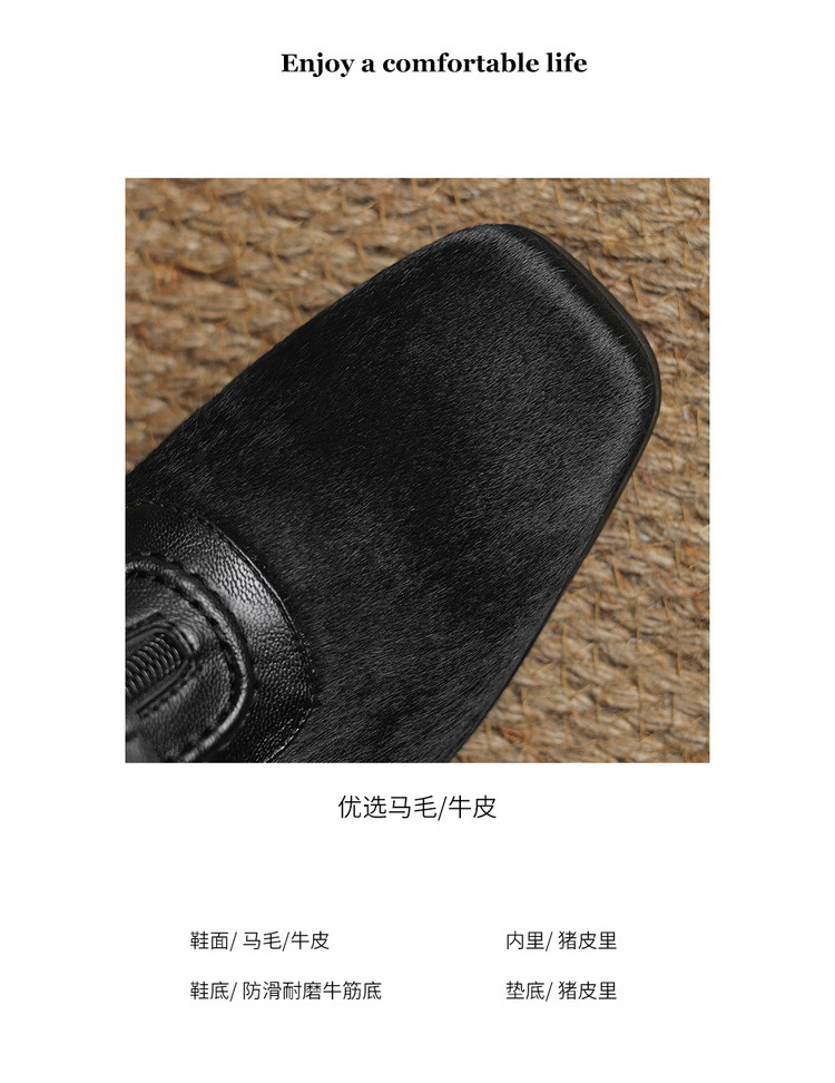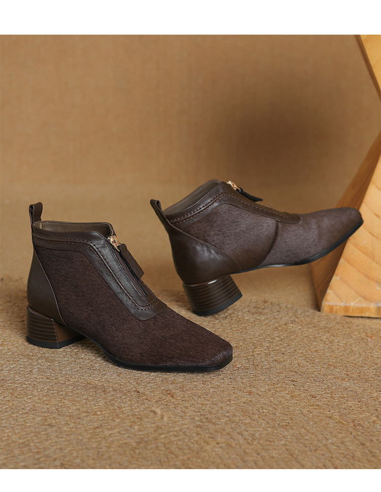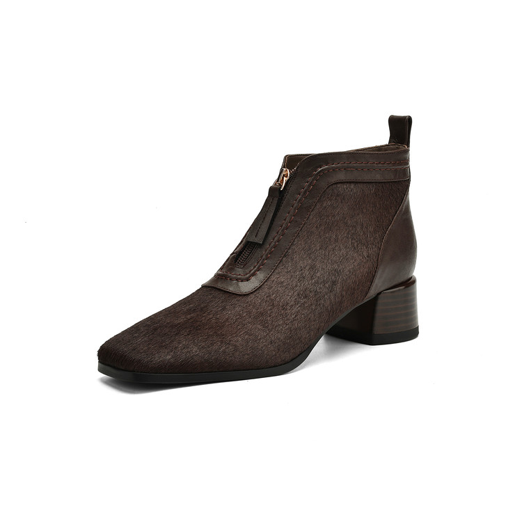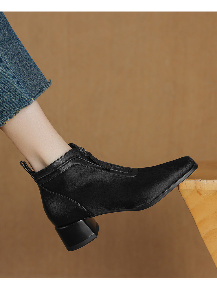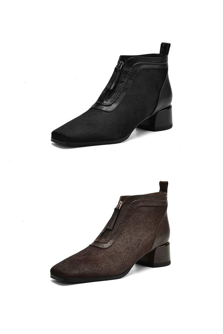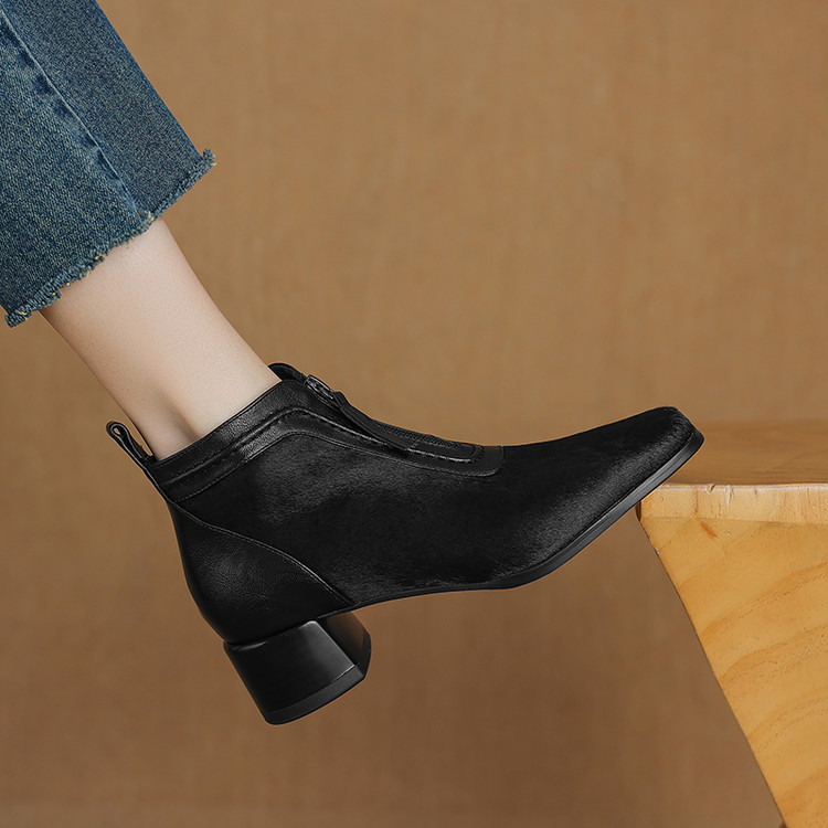 【预售5天】新款马毛拼接裸靴女方头前拉链短靴优雅气质中粗跟舒适时装靴HP&A2615-6