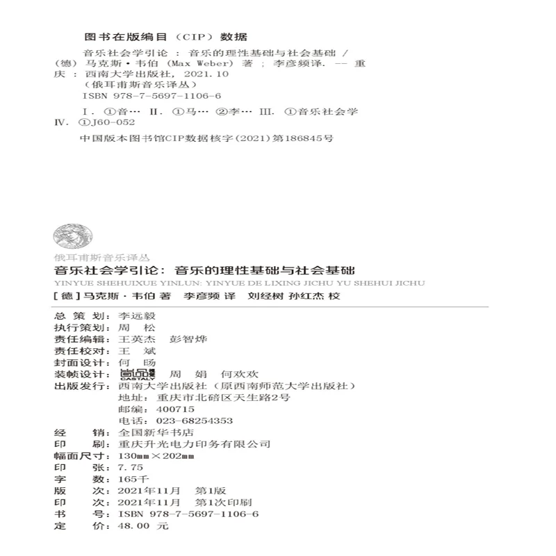 原著作者马克斯·韦伯,德国政治学家、经济学家、社会学家,现代社会学三大奠基人之一,开创了音乐社会学研究的先河。 译者李彦频,中央音乐学院音乐学博士,现就职于中国国际广播电台,2010—2011年在德国柏林洪堡大学音乐学系访学。 |