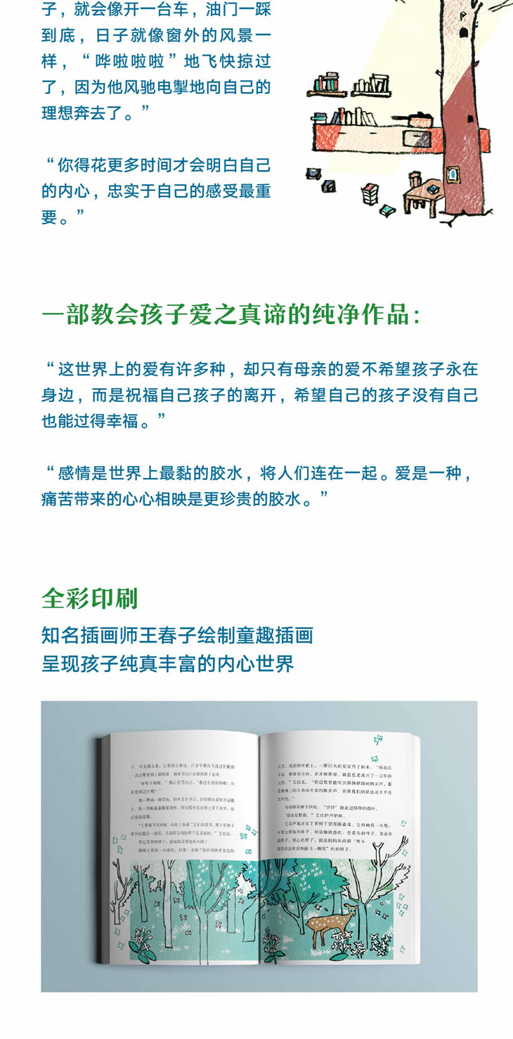 l 全彩印刷,知名插画师王春子绘制童趣插画,呈现孩子纯真丰富的内心世界。