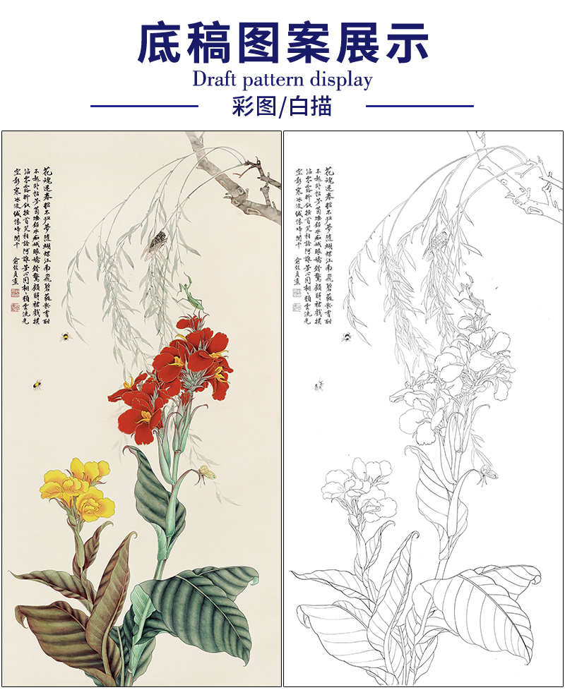 俞致贞花鸟工笔画白描底稿《春华蛱蝶谣诗意》临摹勾线高清打印稿ZZ04