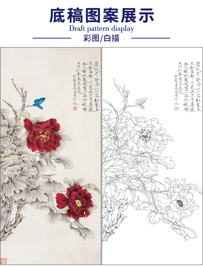 俞致贞花鸟工笔画白描底稿《牡丹》临摹勾线高清打印稿ZZ55