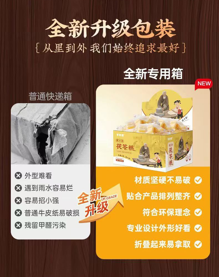 【商品名称】黄小米茯苓糕 【上架规格】500g*2箱 【保质期】60天 【生产日期】最新(随批次更新) 【储存条件】干燥阴凉处 【发货地】福建漳州 【生产地】福建漳州 【发货快递】申通、韵达、邮政随机发货 【不发货地区】内蒙古、青海、甘肃、宁夏、新疆、西藏、港澳台 【加运费地区】北京、上海+1元/件 【发货时效】72小时 【售后规则】 1:短保食品不支持7天无理由退换货,发出后不支持拦截拒收,介意慎拍 2:若收到产品有质量问题或者破损少件,请签收24小时内对产品拍照+快递箱面单照片联系售后处理 (所有的售后都基于提供照片或视频为凭证,未提供凭证或超过售后时效,不予处理,请理解!) 3:个人喜好/口味等问题不在售后范围内