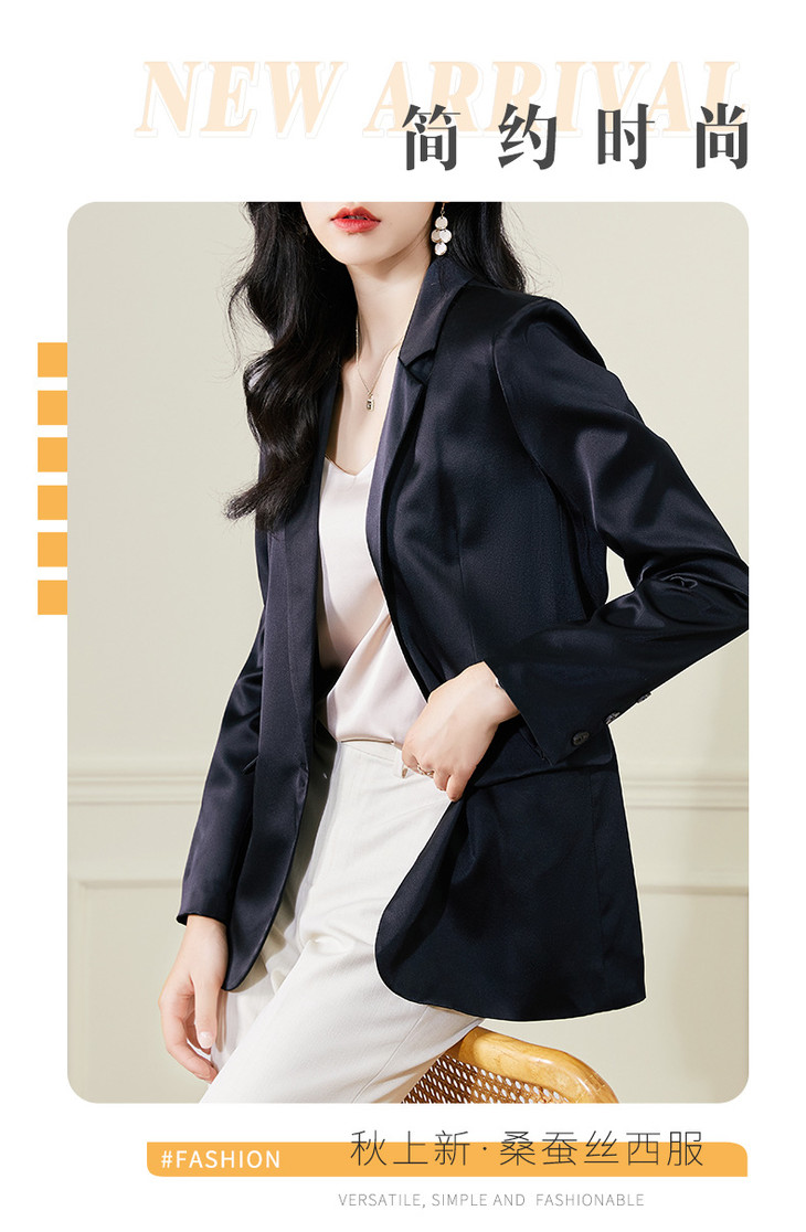 QY 89821纯色气质桑蚕丝西服外套