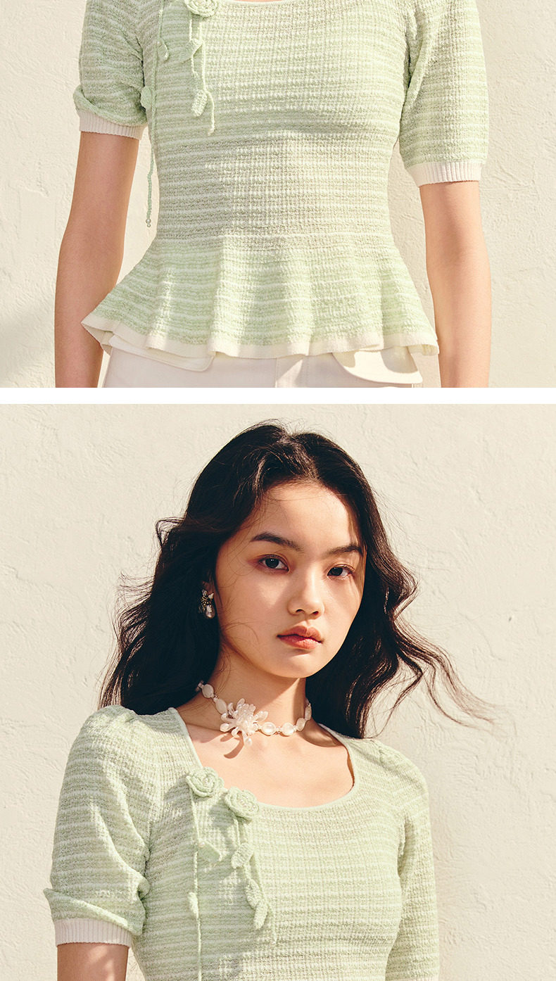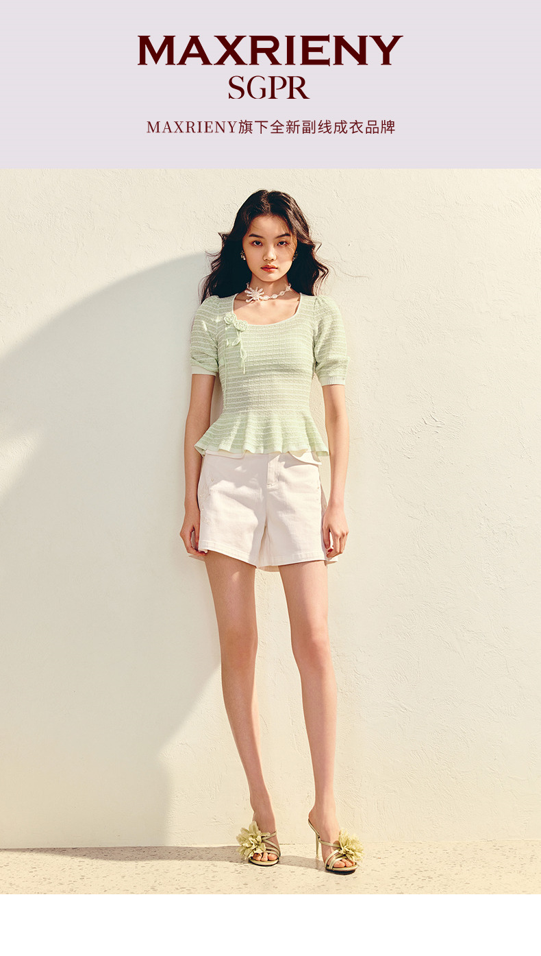 【SGPR】浪漫优雅收腰x型套头毛衫25夏款修身上衣女(货号:MU86SW009)