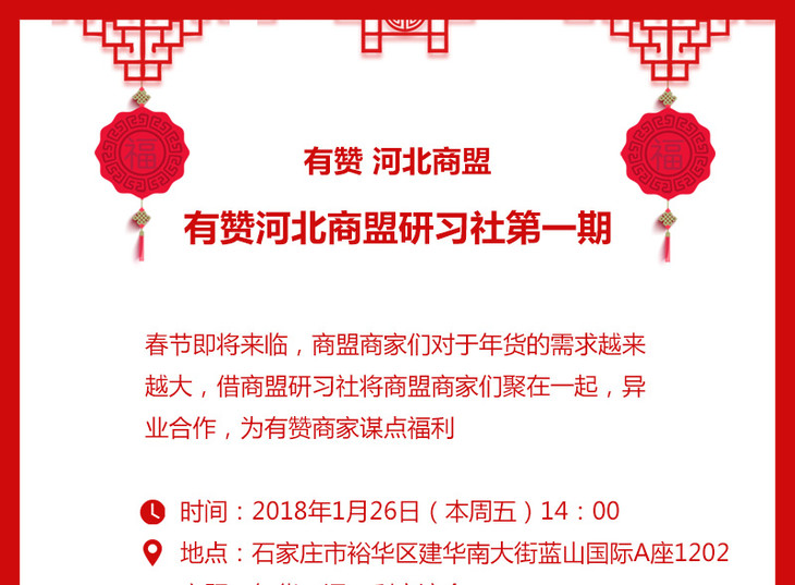 【有赞 河北商盟】研习社:年货互通互利交流会 1月26日 周五