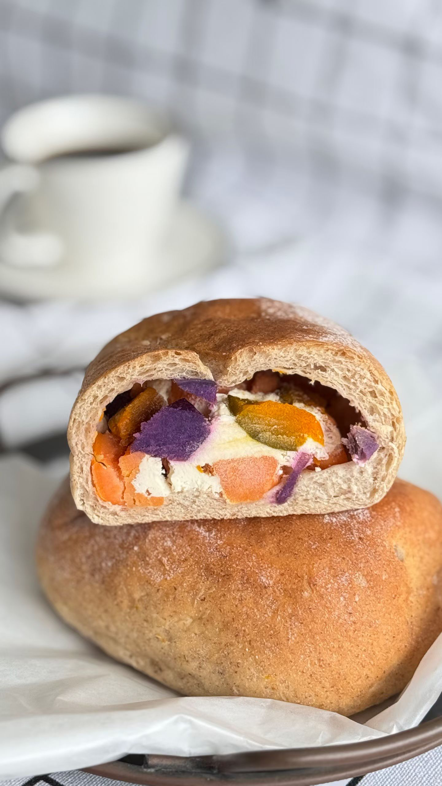 纯手工五谷丰登杂粮欧包 红薯、紫薯、南瓜、板栗、无任何添加剂 200g*3个装 (收到时产品呈微凉软化状态,及时冷冻即可,不影响食用,如介意,请慎拍) 收到后冷冻保存
