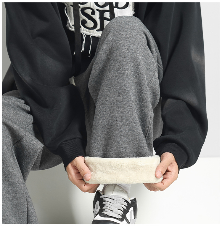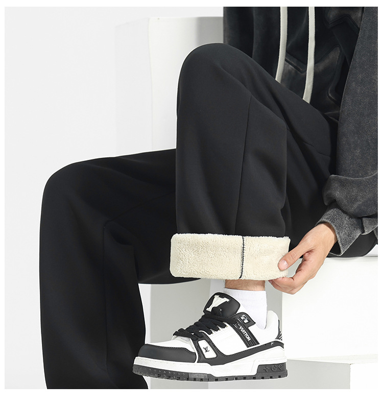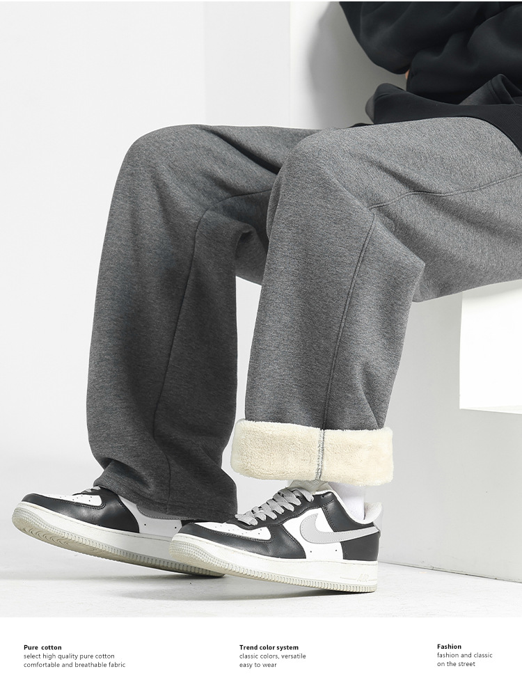 【甄选优质棉质❗️柔软细腻舒适透气】加绒裤子男冬季男裤羊羔绒加厚休闲直筒裤男士运动裤秋冬阔腿卫裤。jb