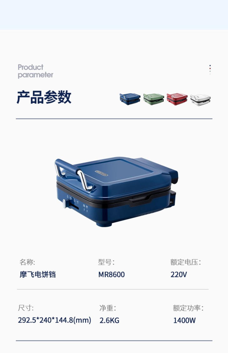 【摩飞】电饼铛 【独立温控1400W】MR8600 家用早餐机双面加热全自动烙饼锅加深加大迷小型煎饼机