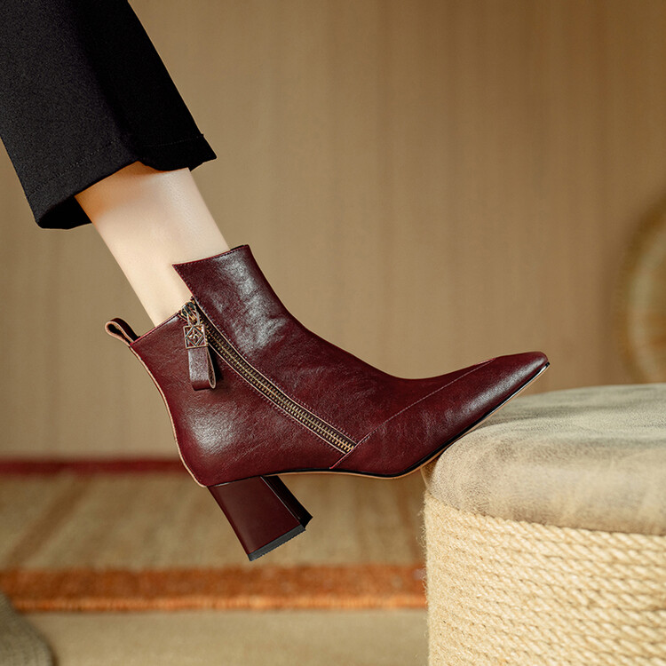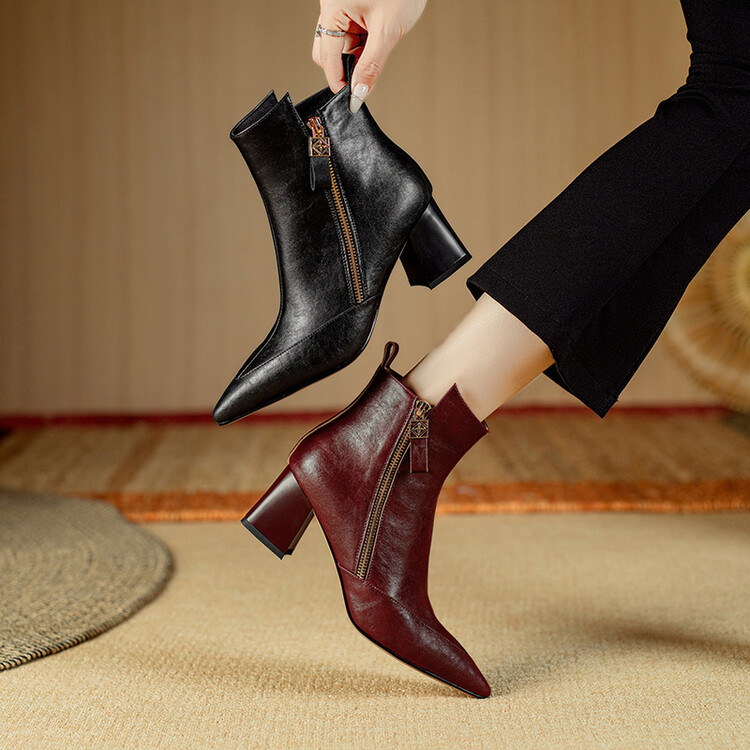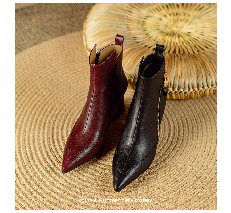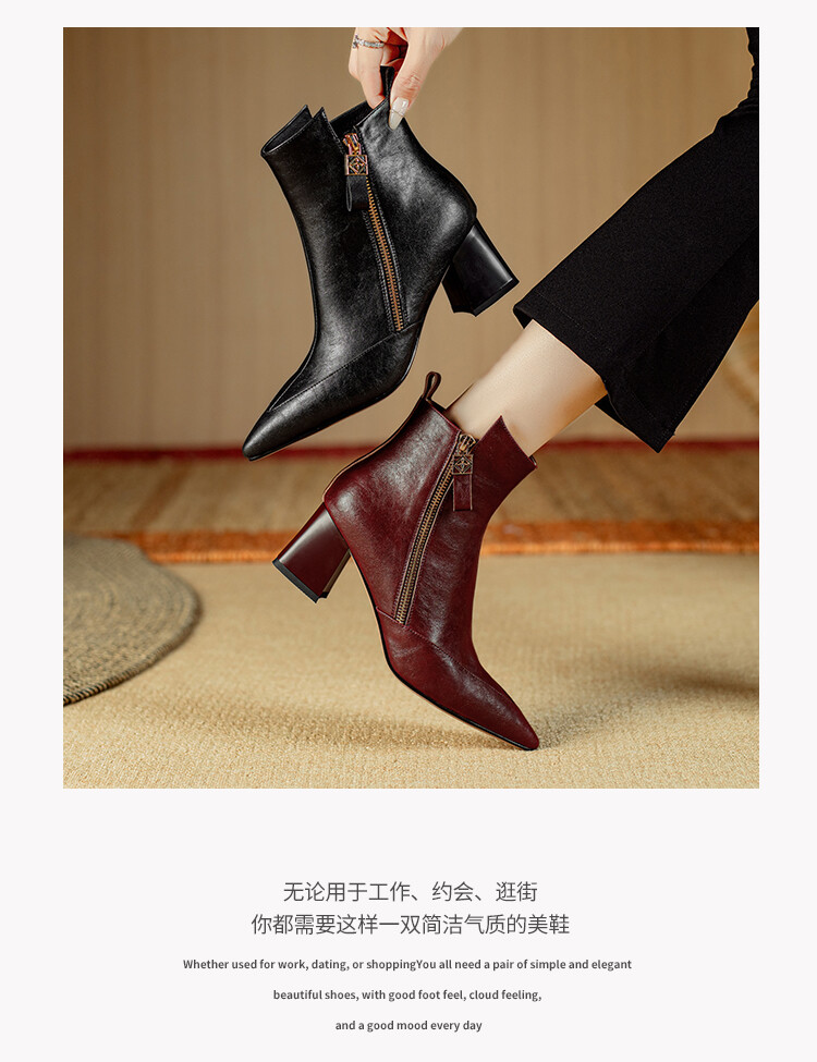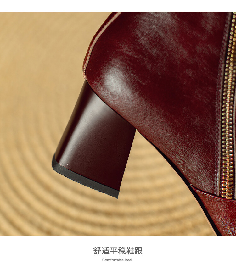 【货号】M6070【面料】牛皮【内里】猪皮里/绒里【垫脚】猪皮里/绒里【鞋底】牛筋底【跟高】6.5cm【颜色】黑色 酒红色【尺码】34-40(大小定制不退换)