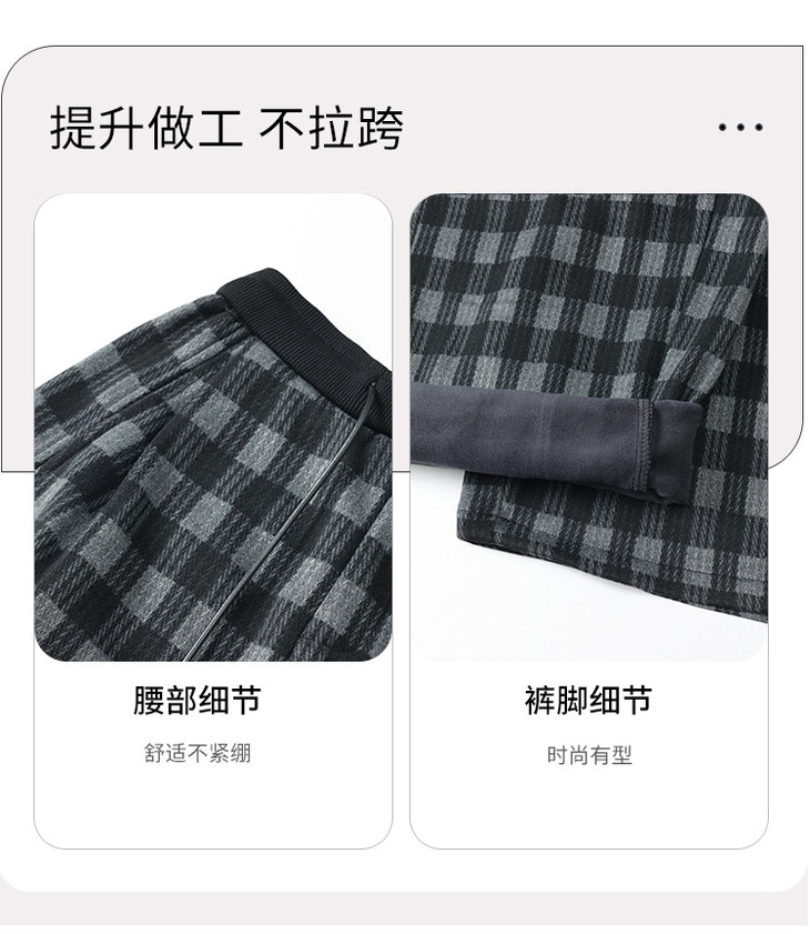 冬款松紧腰格纹加绒弯刀裤遮胯宽松休闲八分裤QYM25886 商品图3