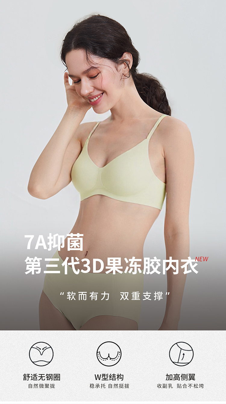 弗利少女无痕内衣果冻胶3.0软支撑薄款无钢圈舒适一片式文胸胸罩
