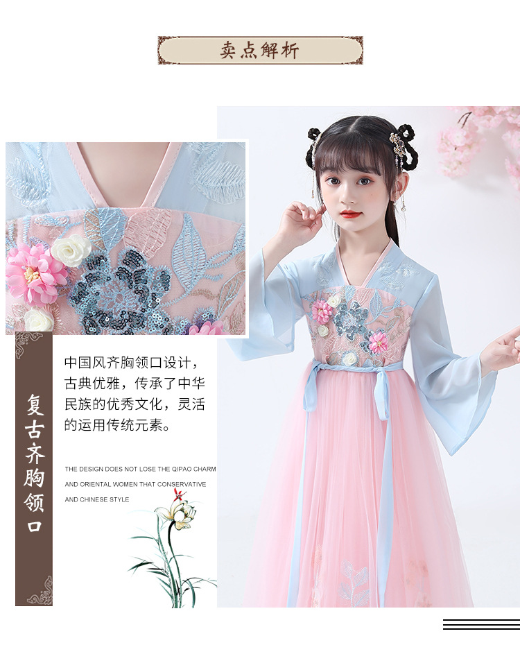 儿童汉服裙中国风古装洋气裙演出服DP8336