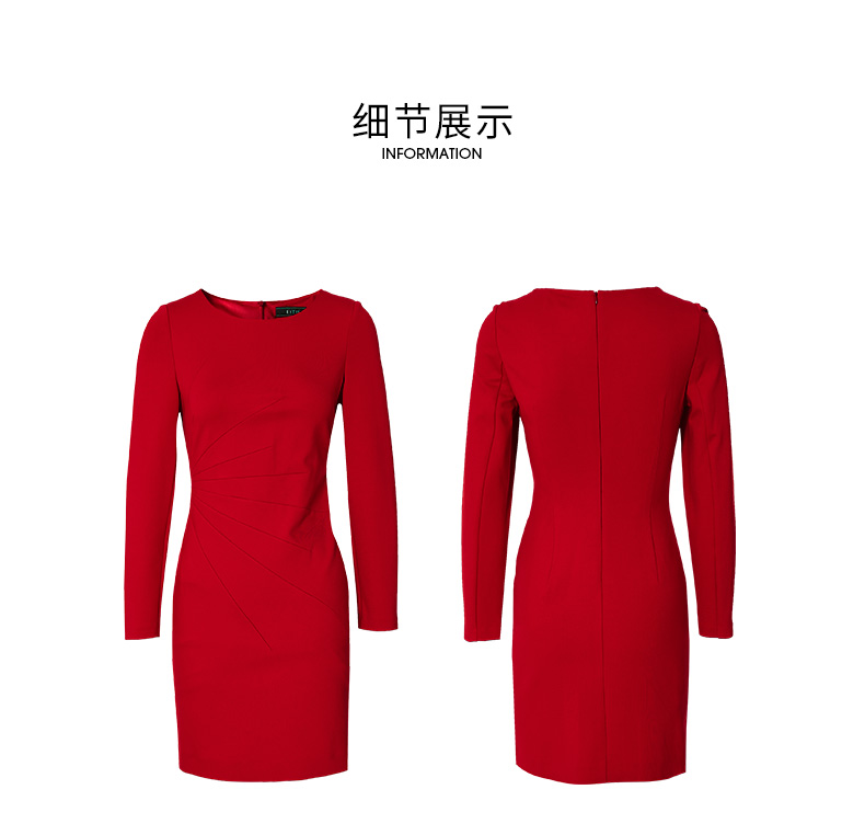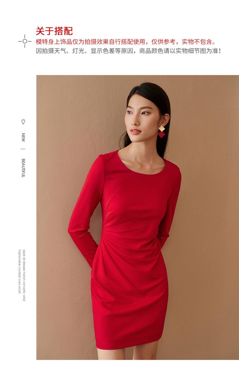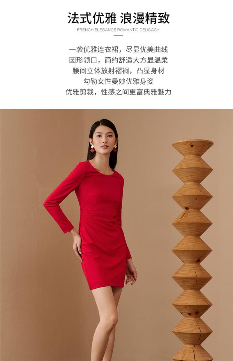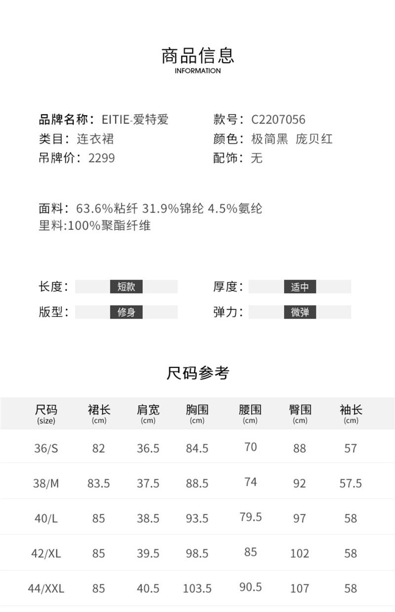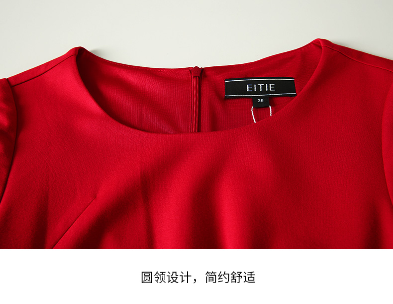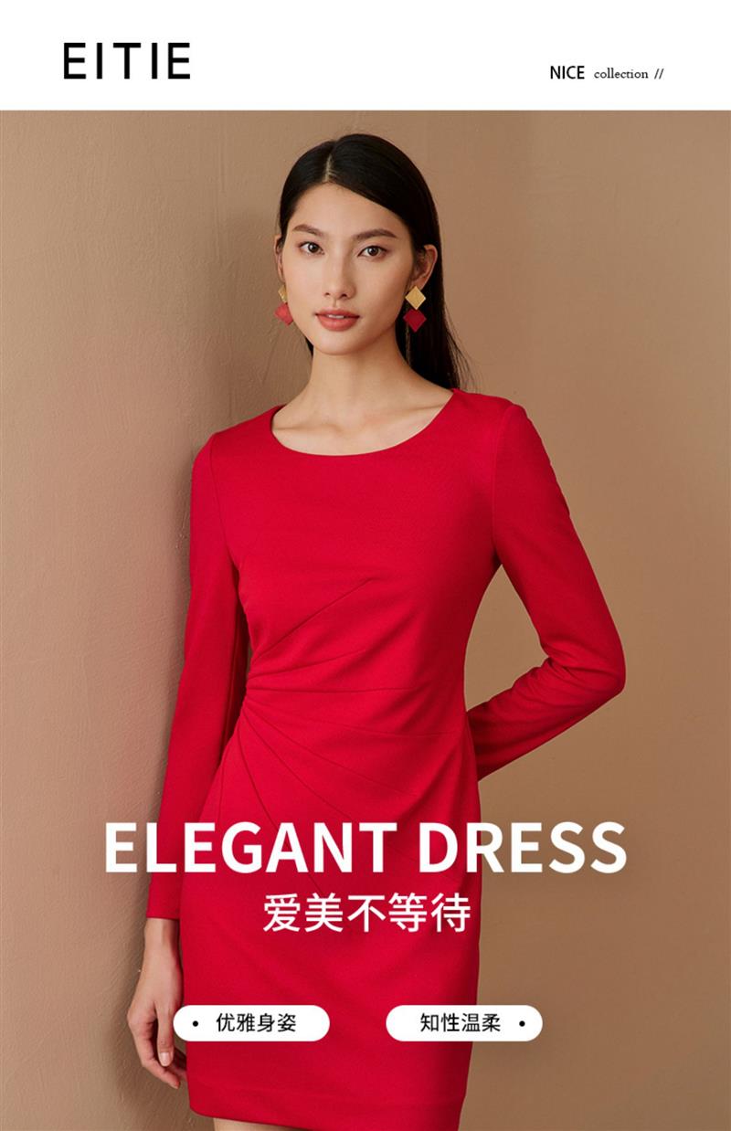 EITIE爱特爱春新款简约纯色利落百搭连衣裙修身显瘦打底短裙C2207056