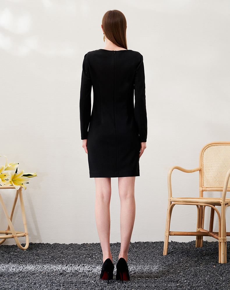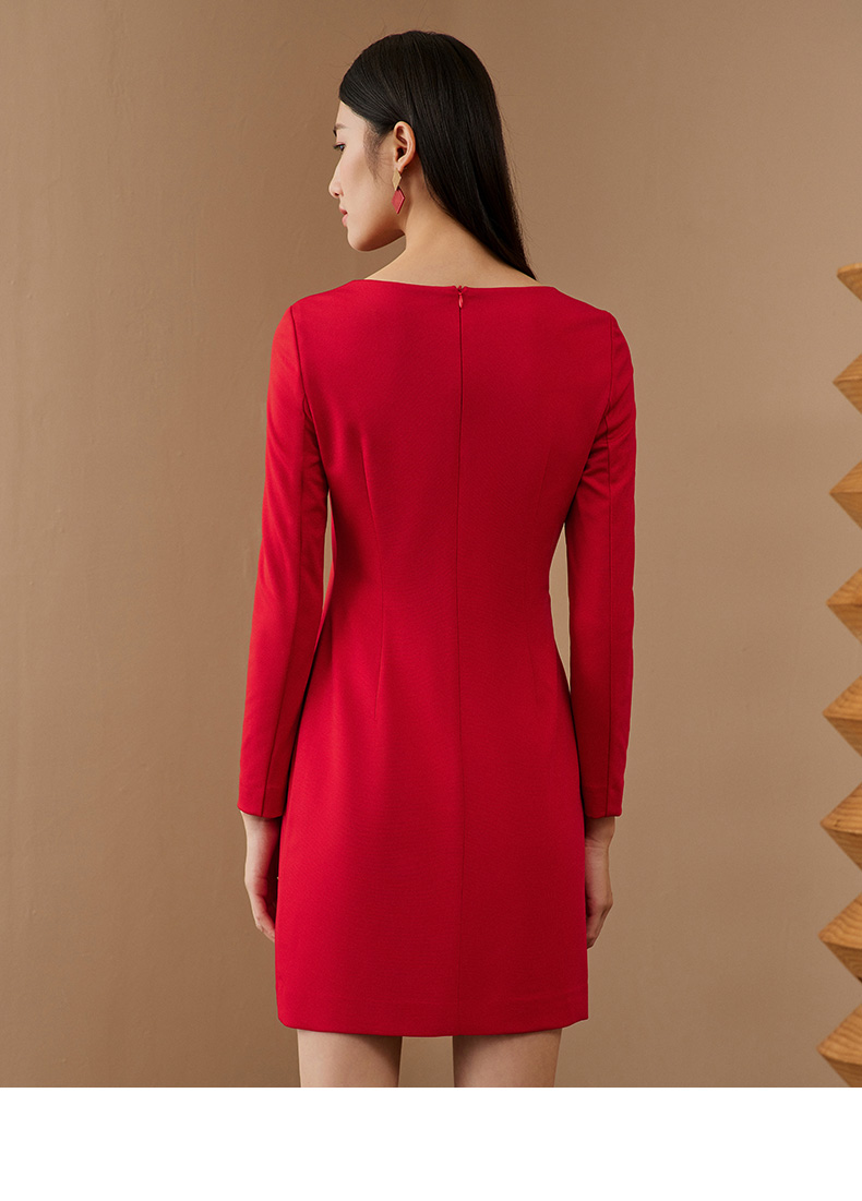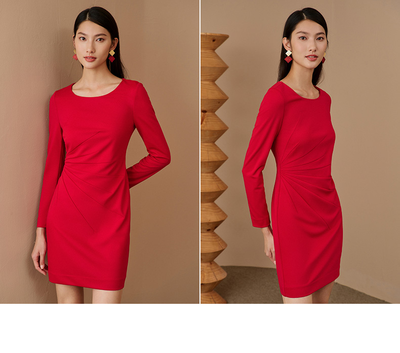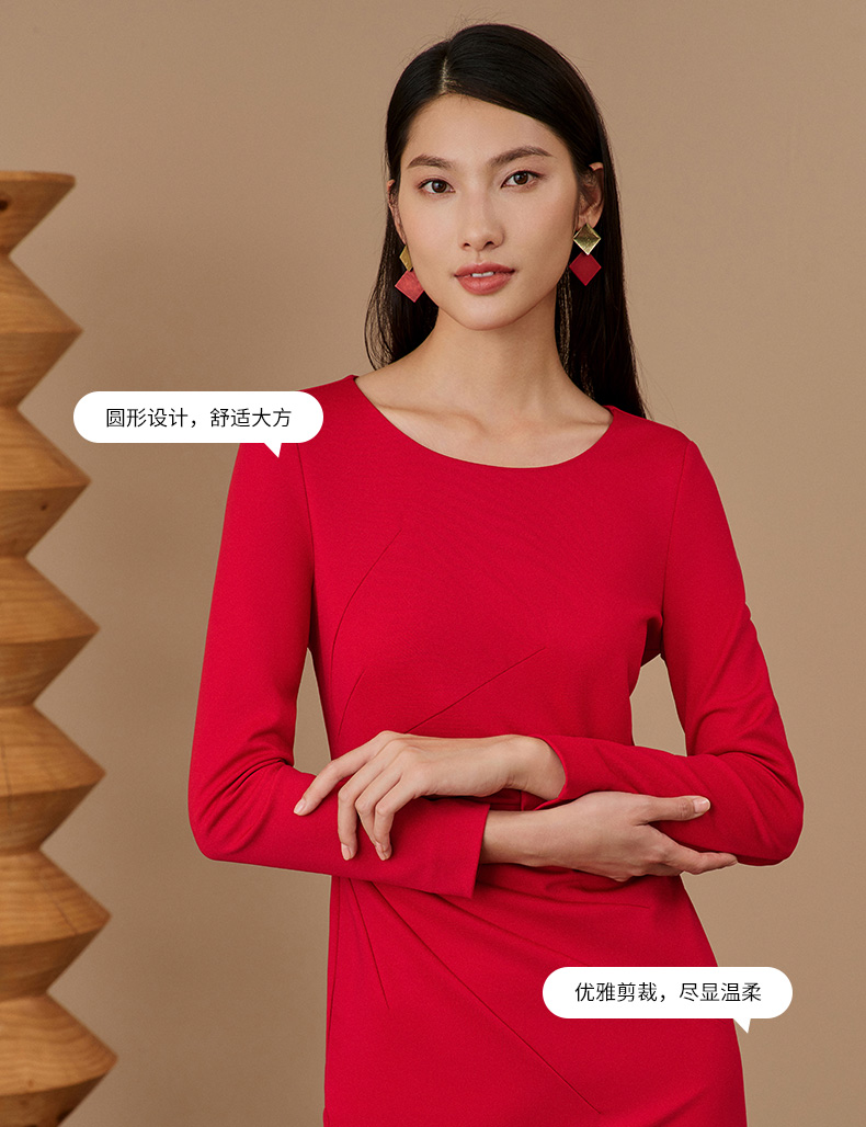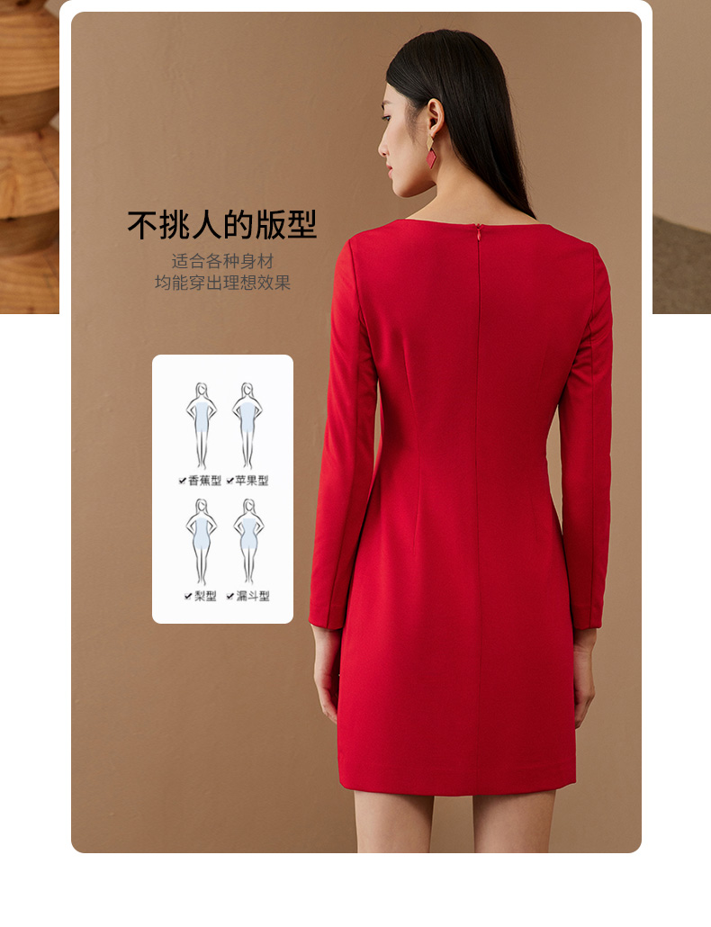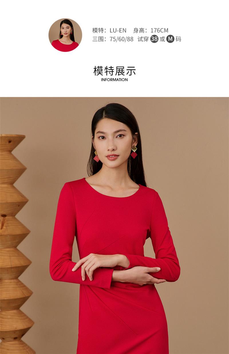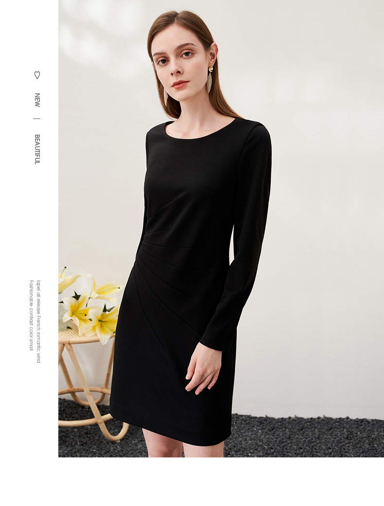 EITIE爱特爱春新款简约纯色利落百搭连衣裙修身显瘦打底短裙C2207056