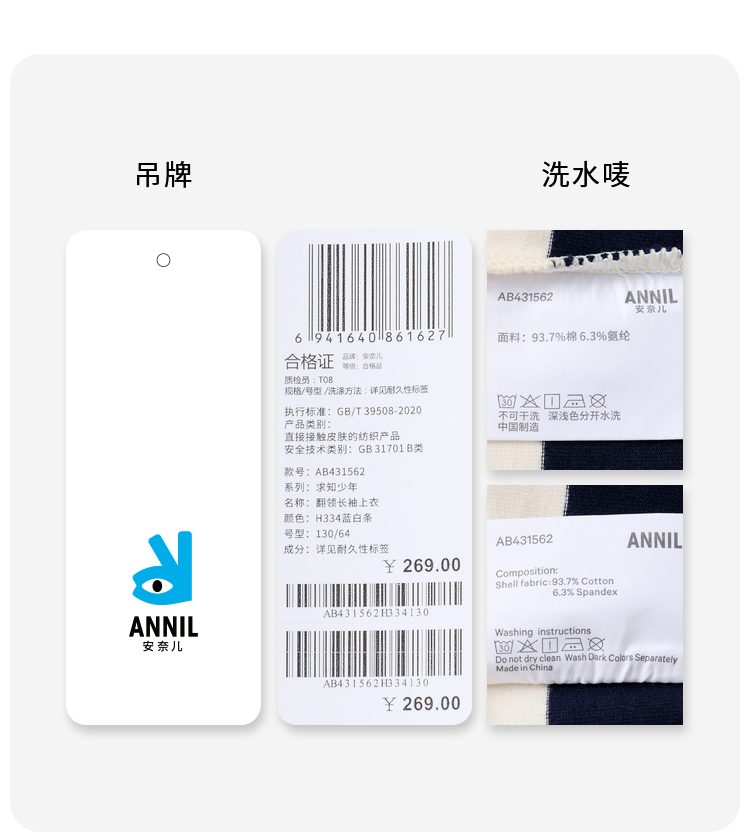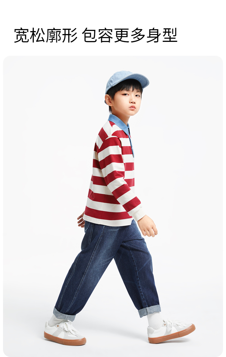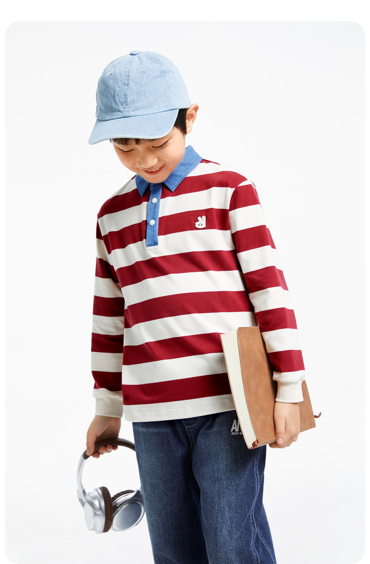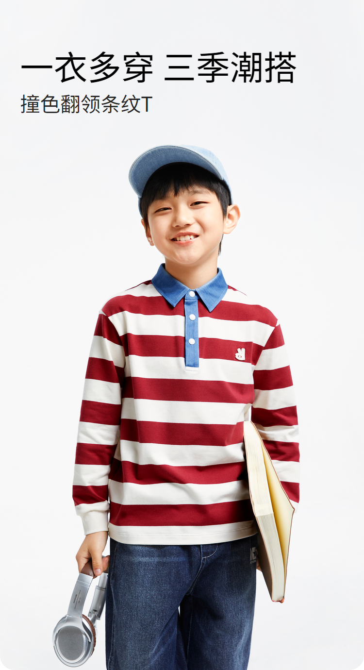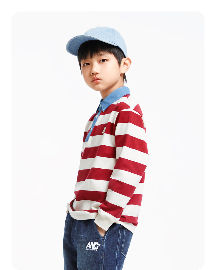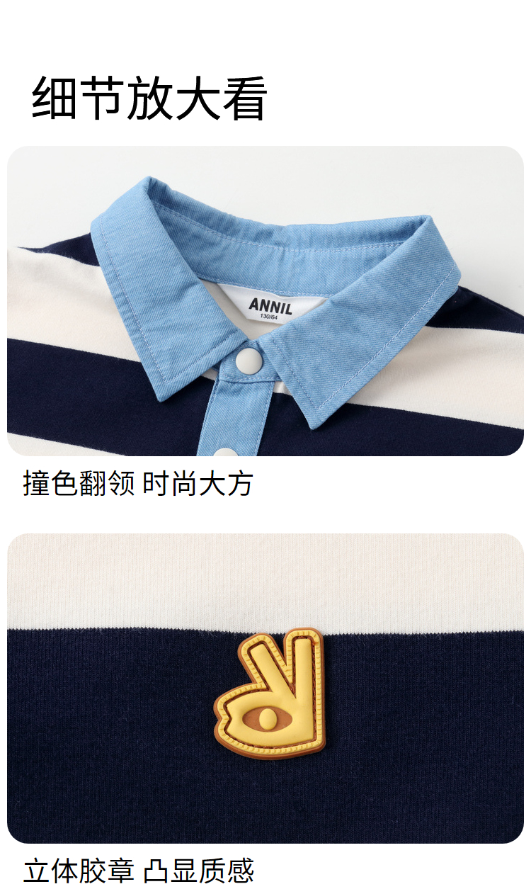 男童撞色翻领条纹T新款安奈儿童装实体店同款AB431562