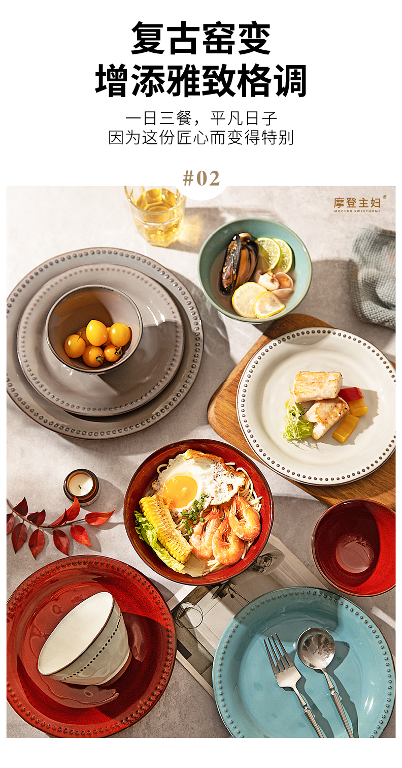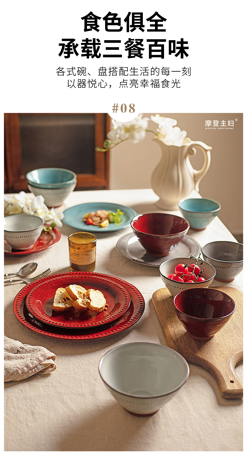 摩登主妇窑变碗盘碟餐具家用2025新款高颜值米饭碗汤面碗盘子餐盘