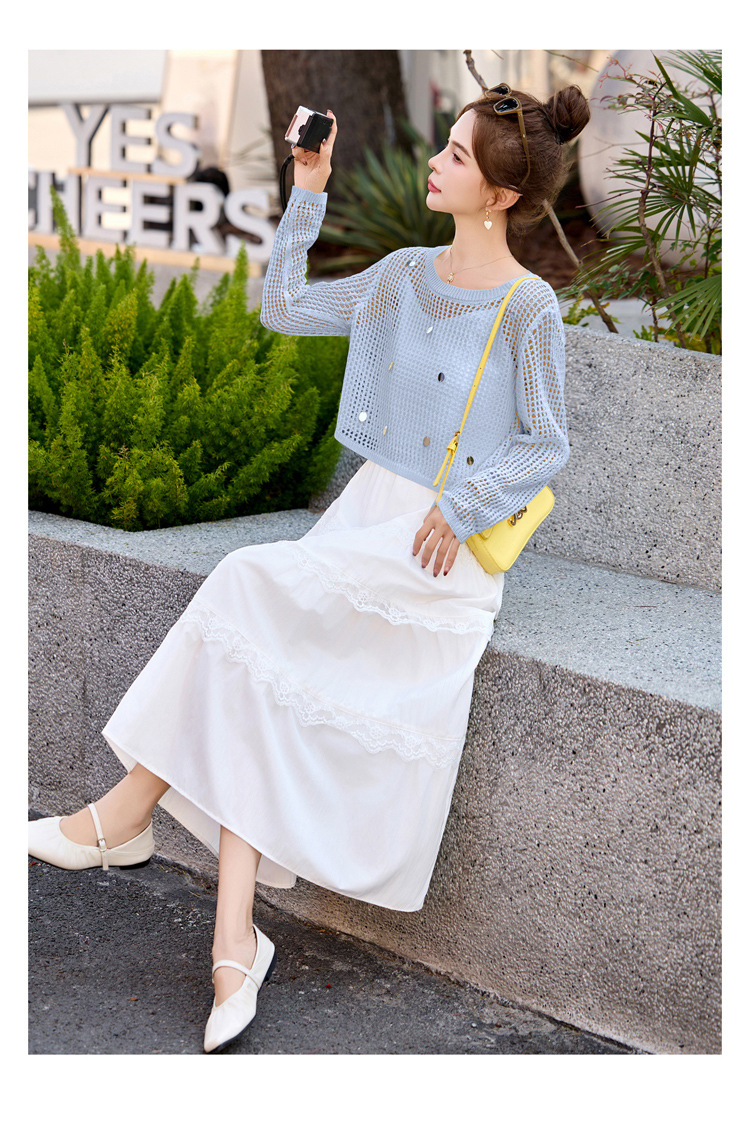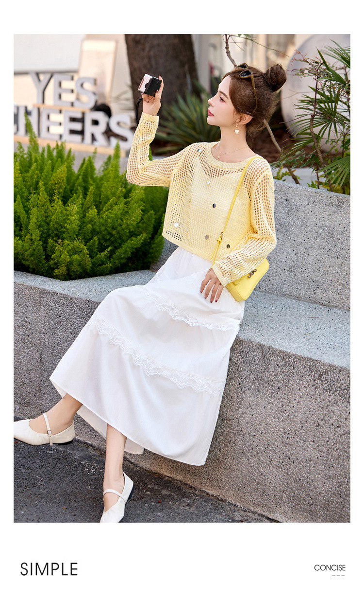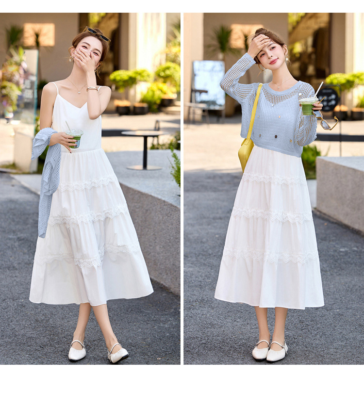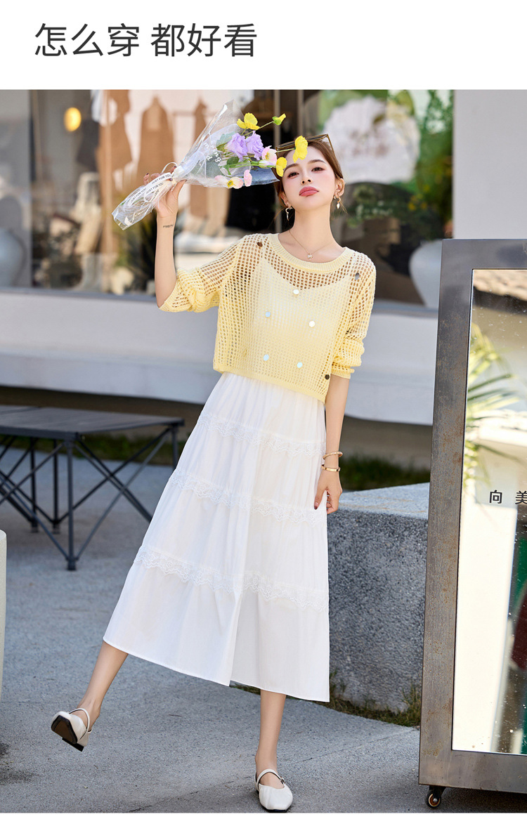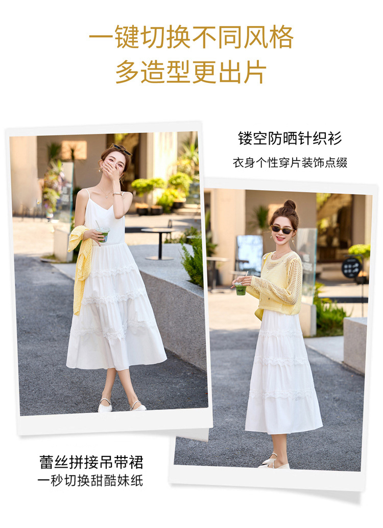 白色吊带连衣裙2025春夏新款韩系独特漂亮超火减龄黄色度假套装裙YF2563