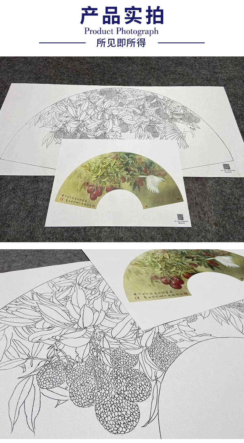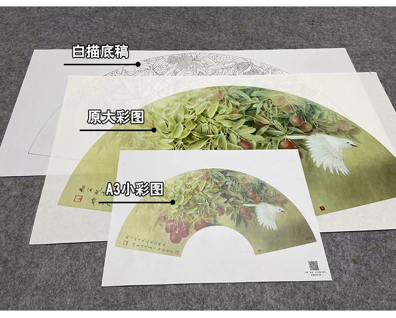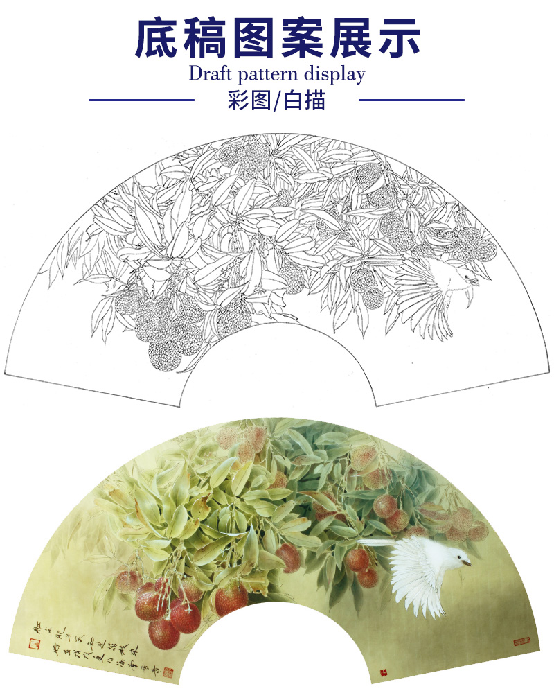 【大彩图】龚雪青工笔画白描底稿扇面小品《来禽图》荔枝临摹勾线花鸟线稿XQ21