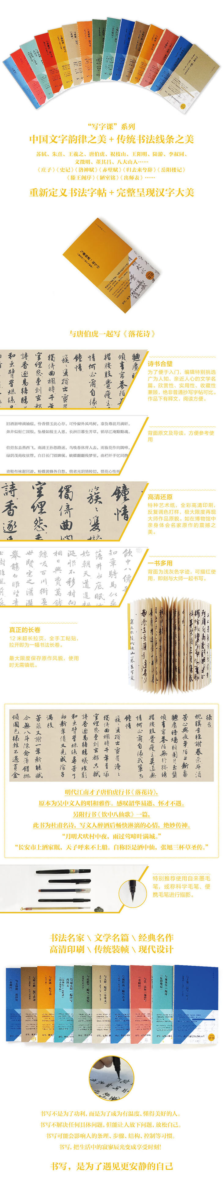 书名:写字课系列 与唐伯虎一起写诗:《落花诗》《饮中八仙歌》(书法字帖毛笔长卷描红)