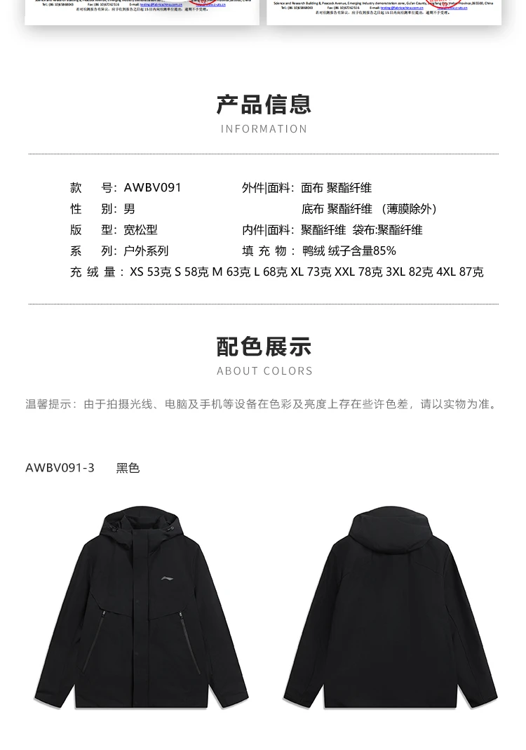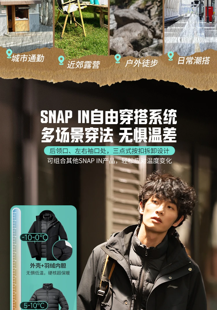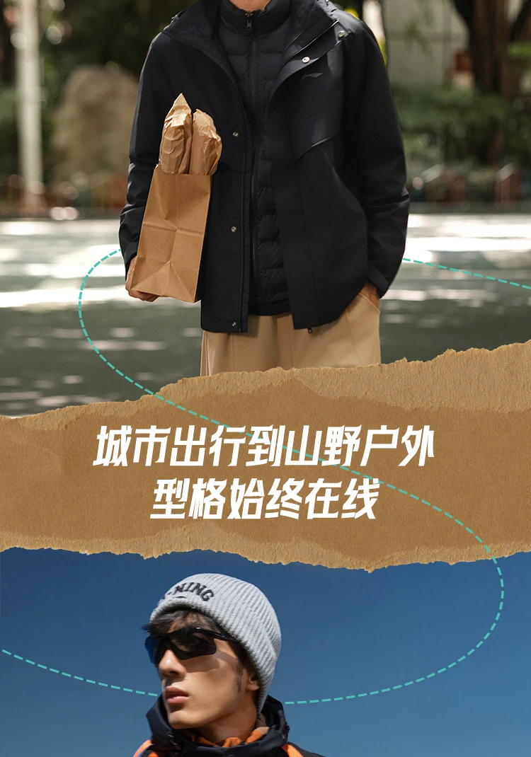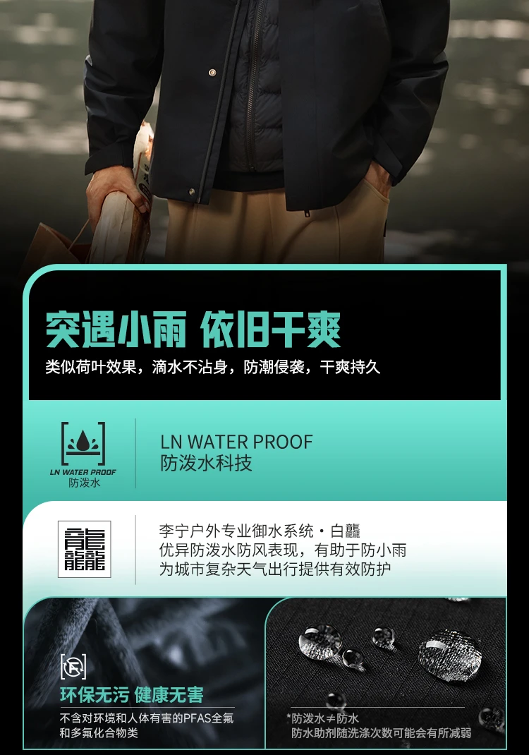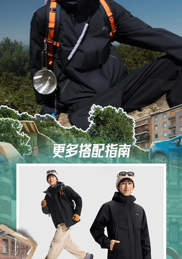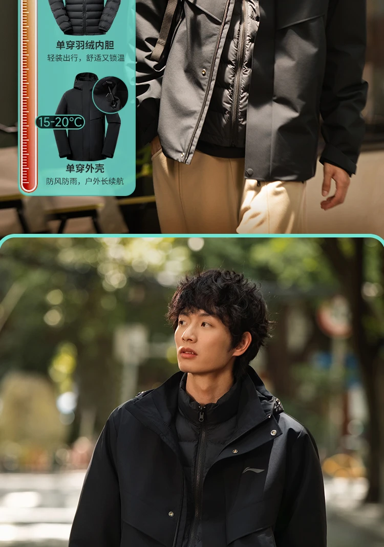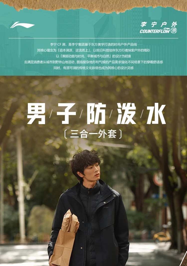 李宁户外CF溯|珑壳外套三合一男子防泼水宽松三合一运动风衣套装AWBV091