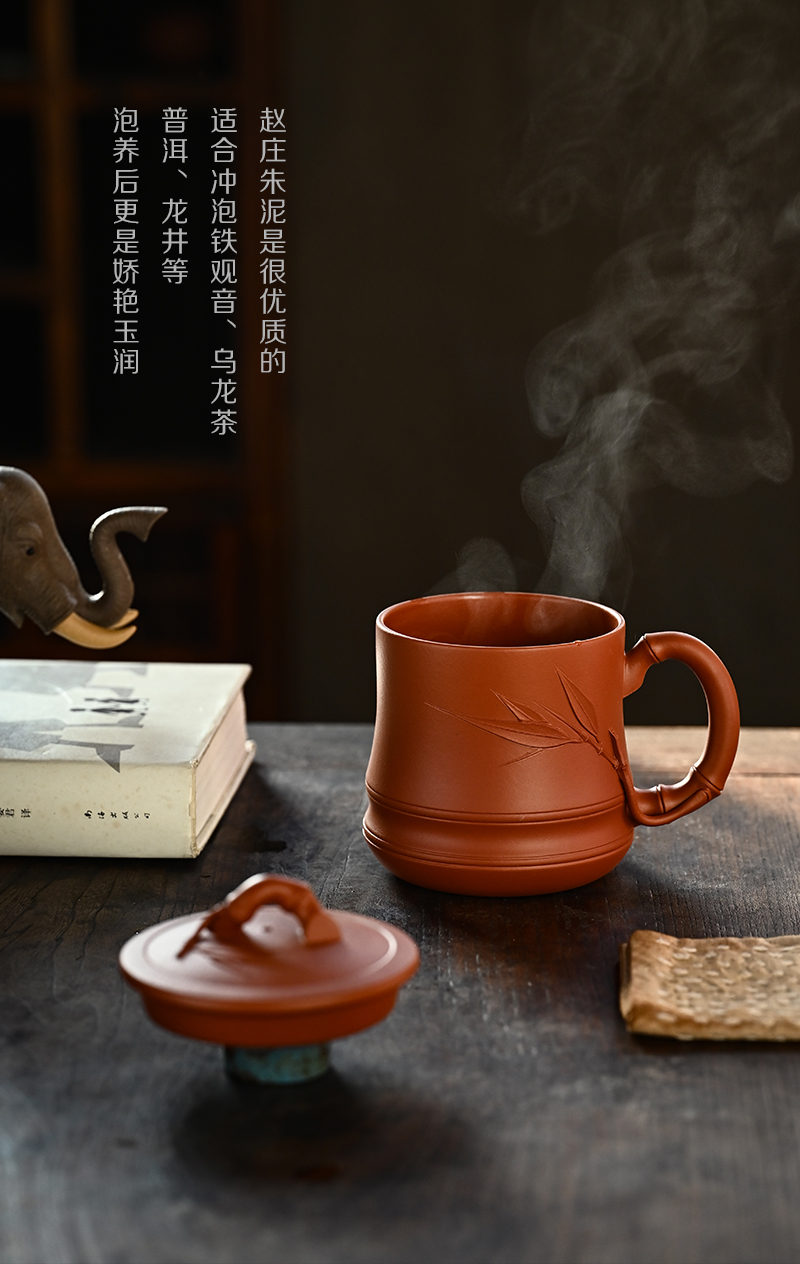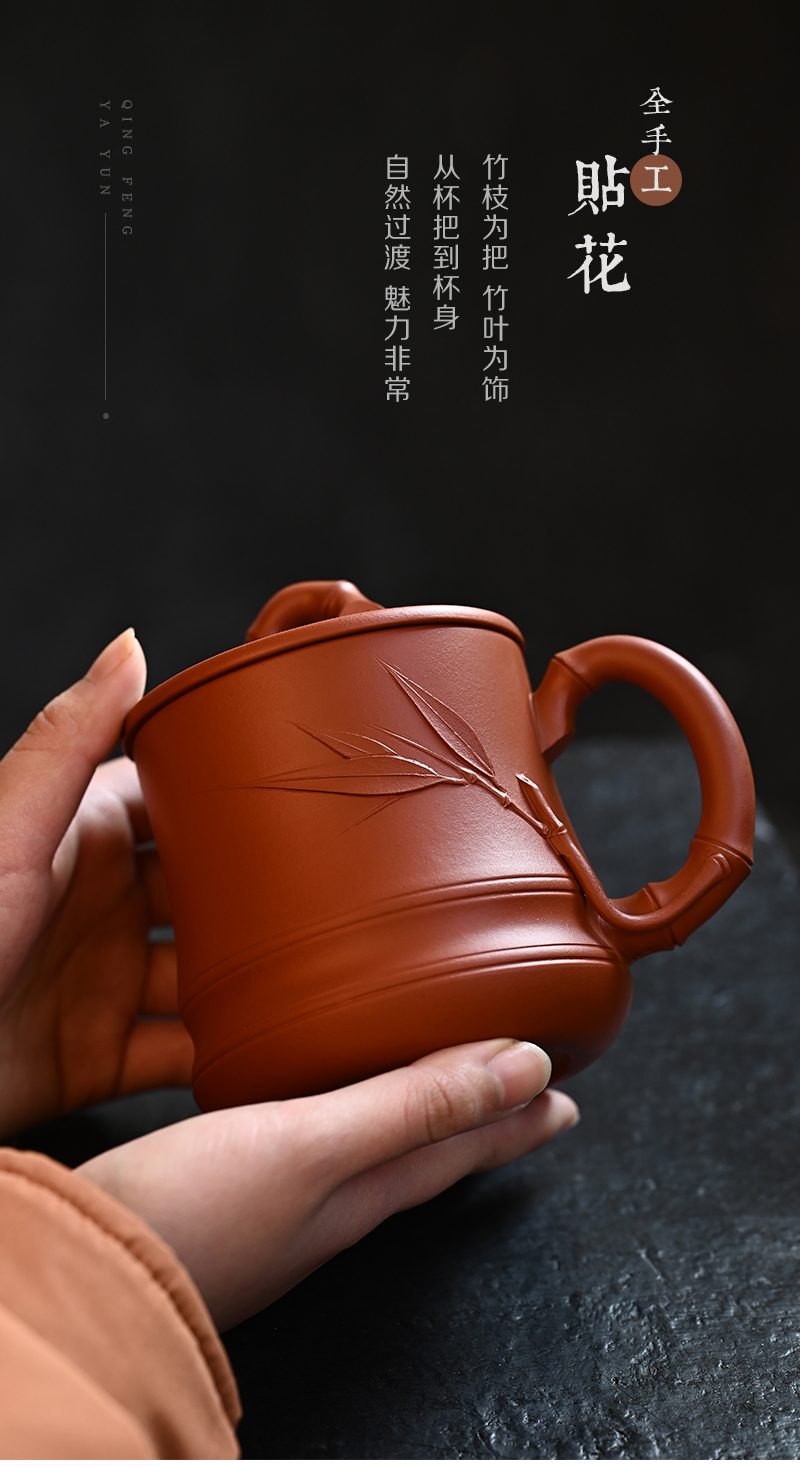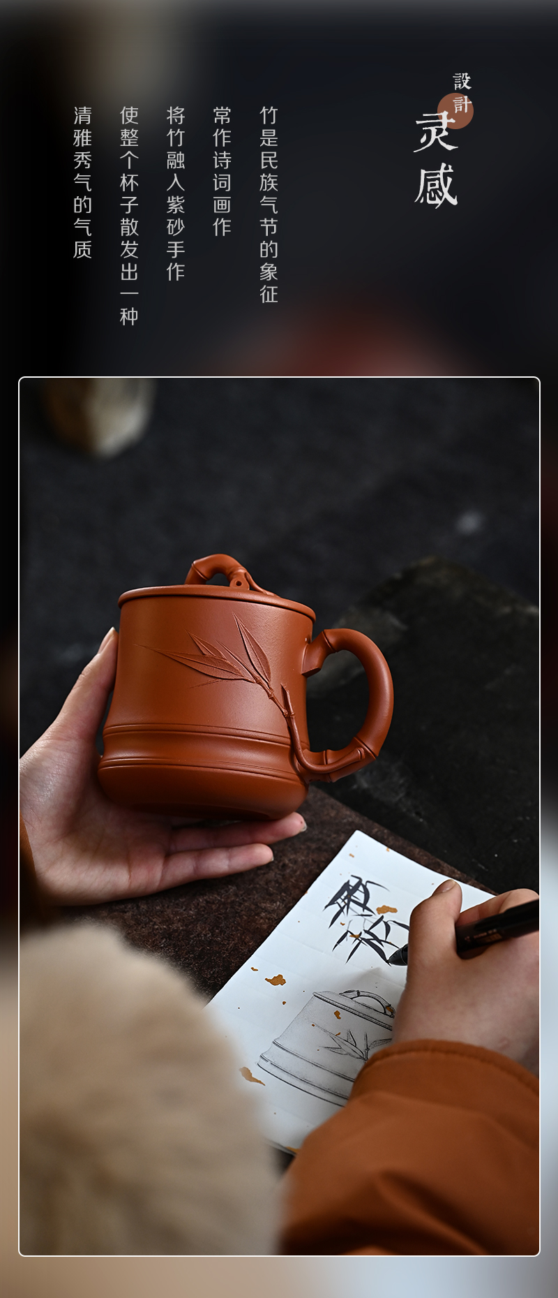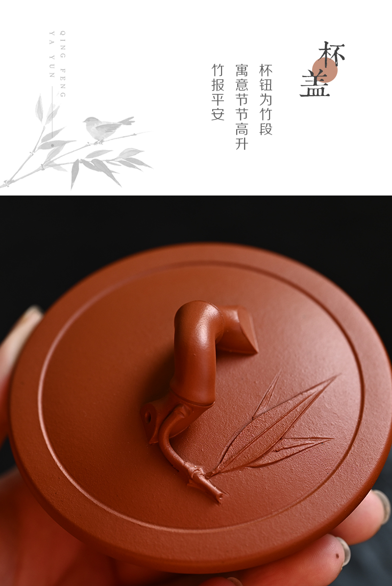 梵匠 『秀竹』名家纯手工 功夫茶泡茶杯男女通用办公大容量盖杯 宜兴原矿朱泥紫砂杯 380cc