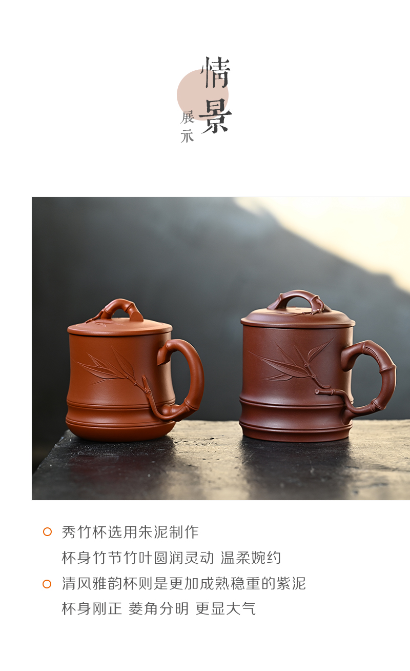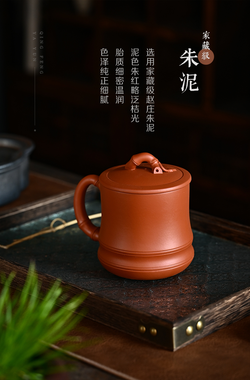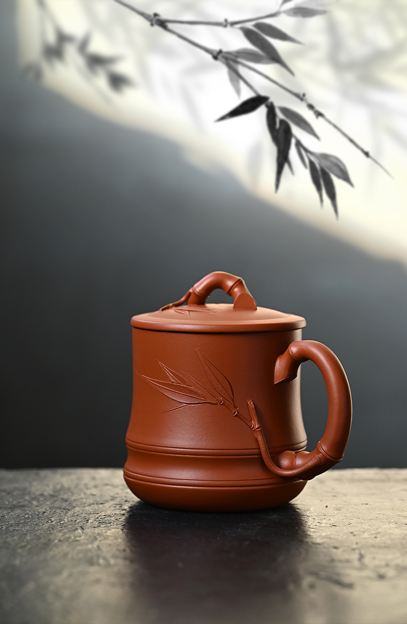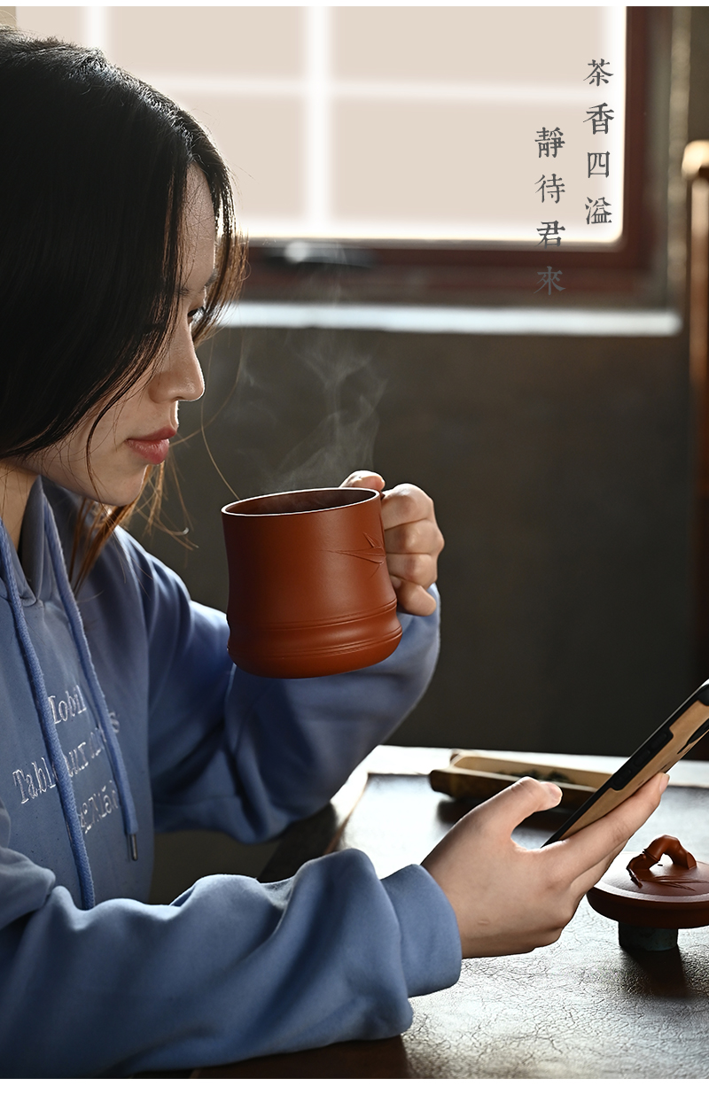 梵匠 『秀竹』名家纯手工 功夫茶泡茶杯男女通用办公大容量盖杯 宜兴原矿朱泥紫砂杯 380cc