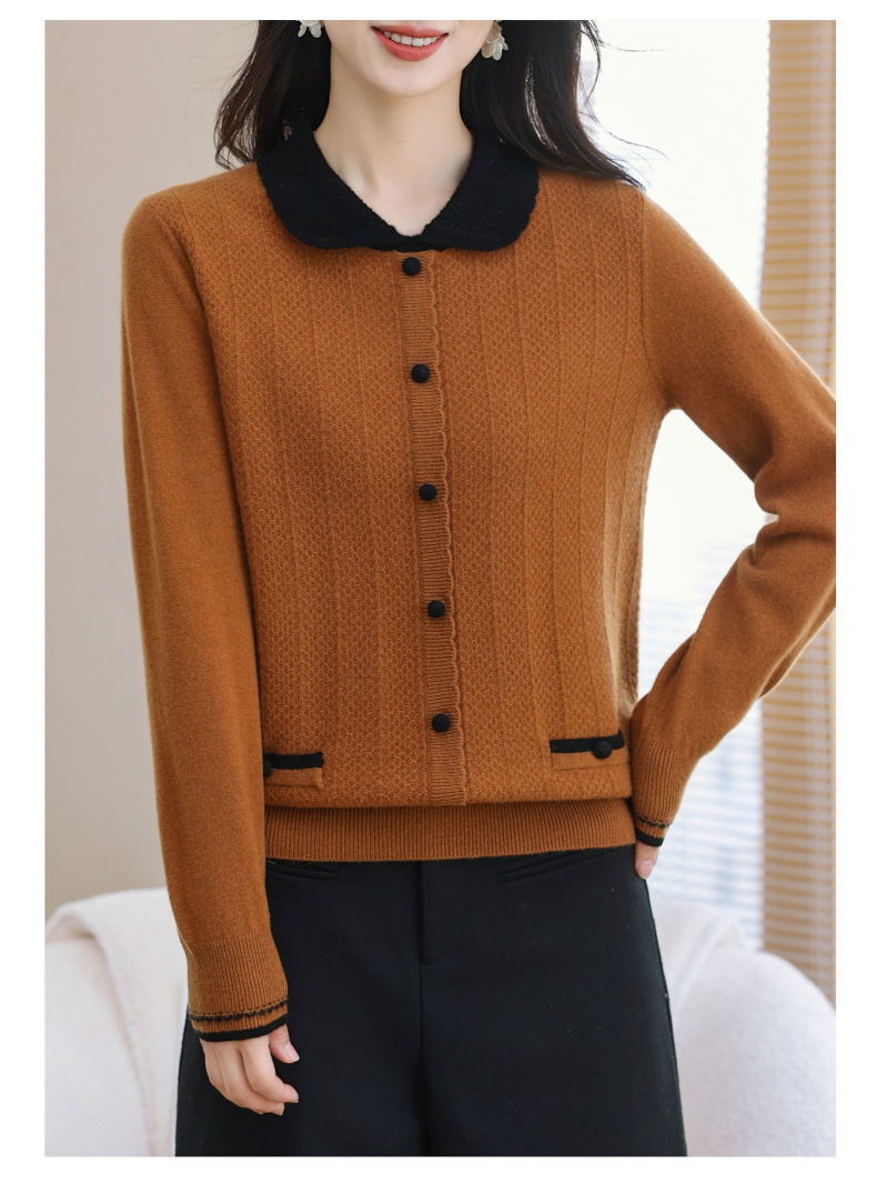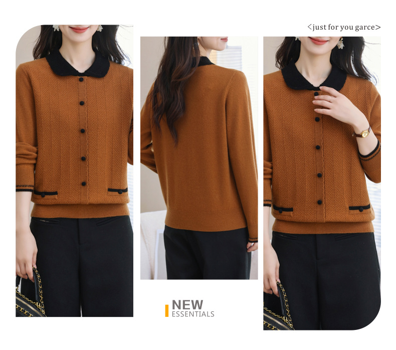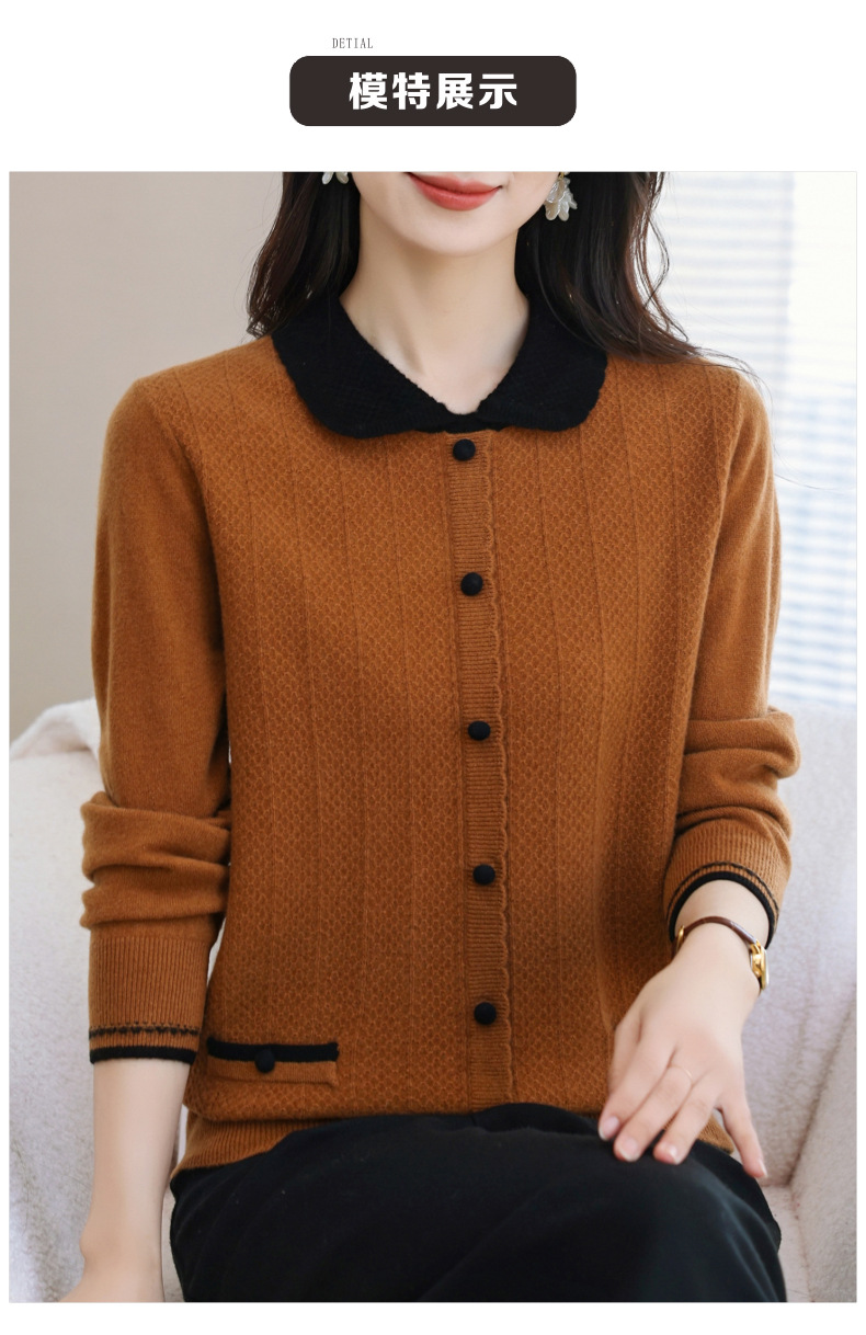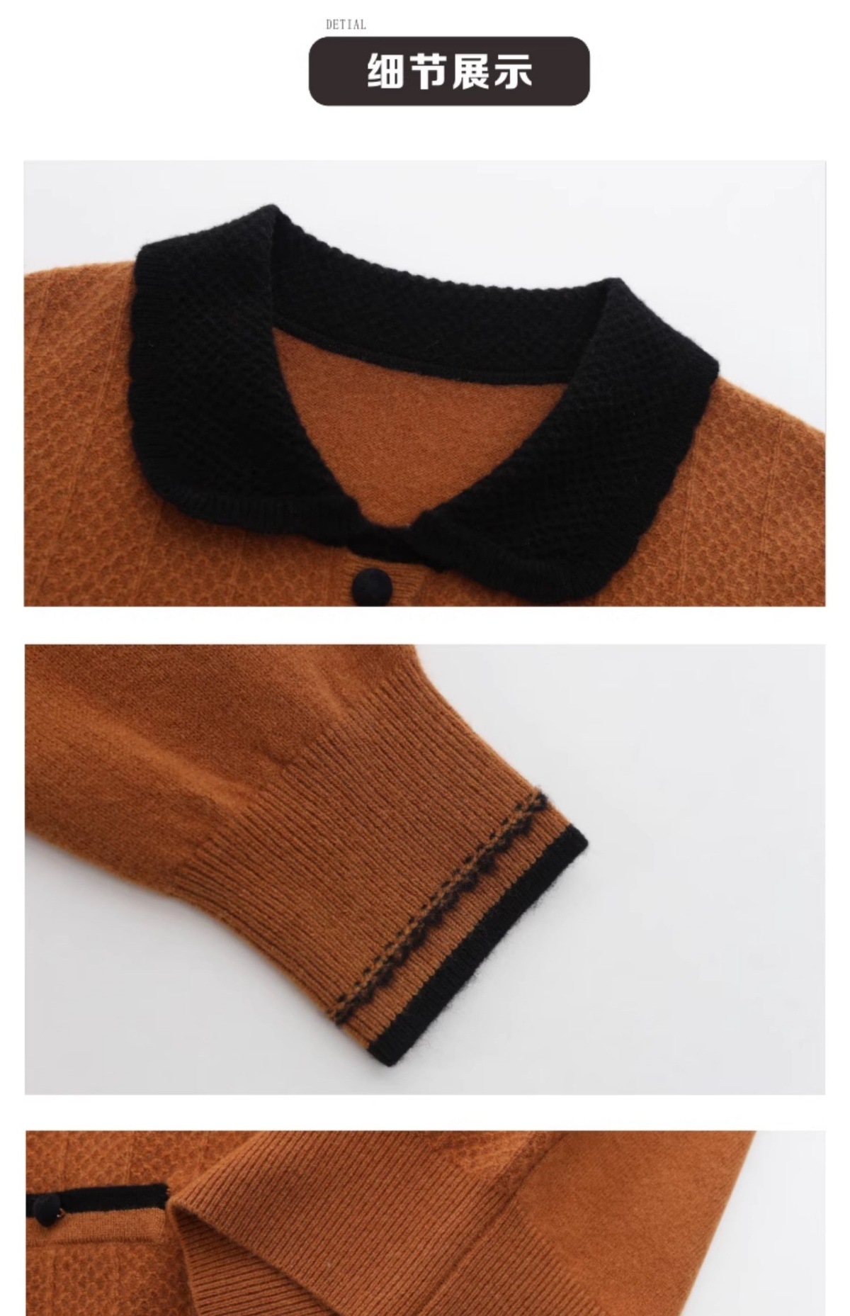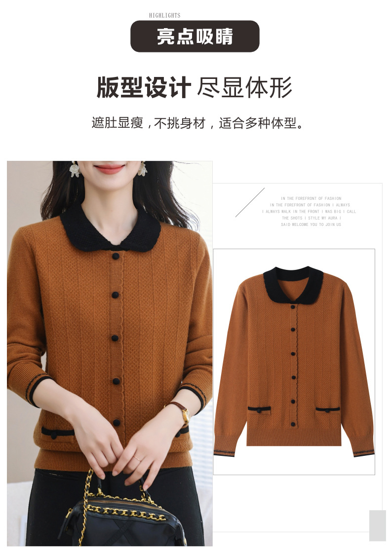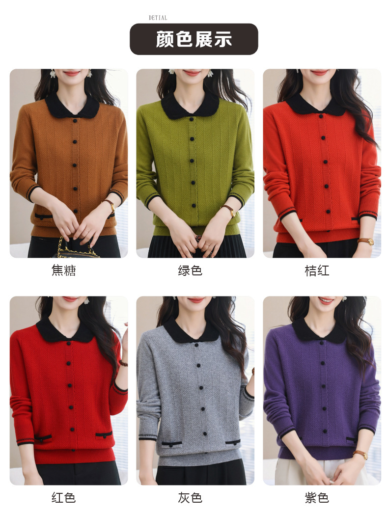 CC-38-6216纯羊毛衫女士100全秋冬季2024新款遮肚打底翻领娃娃毛衣