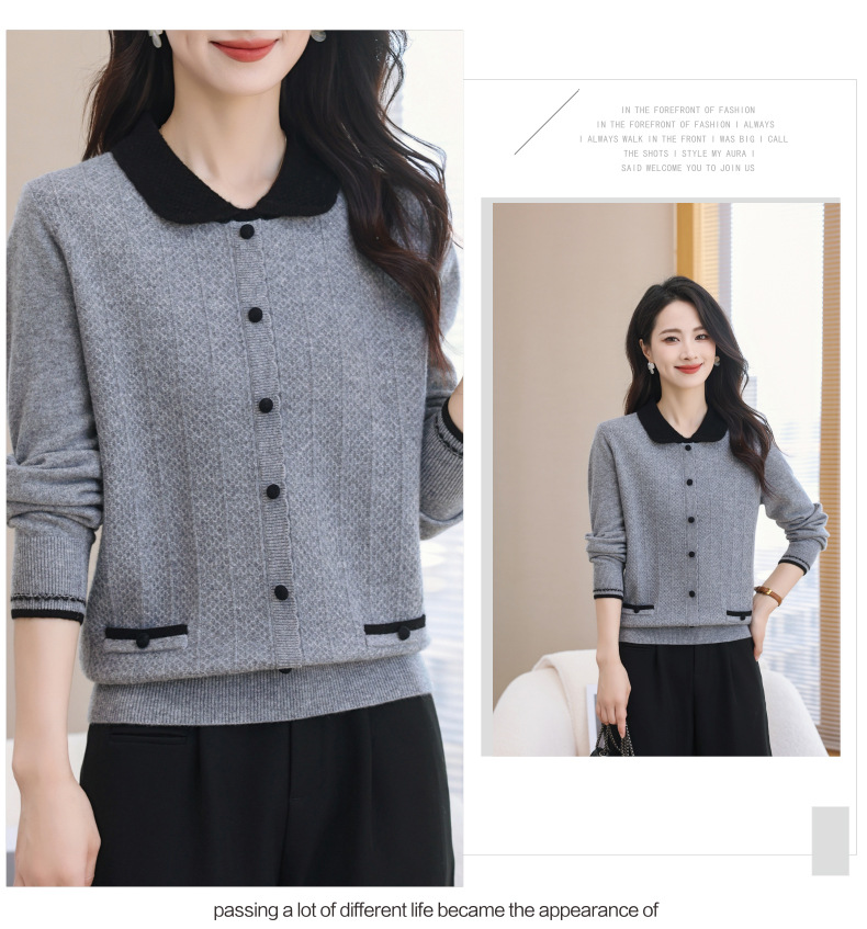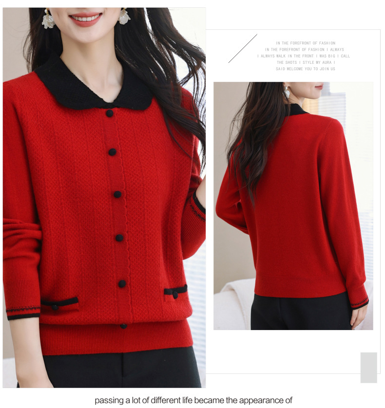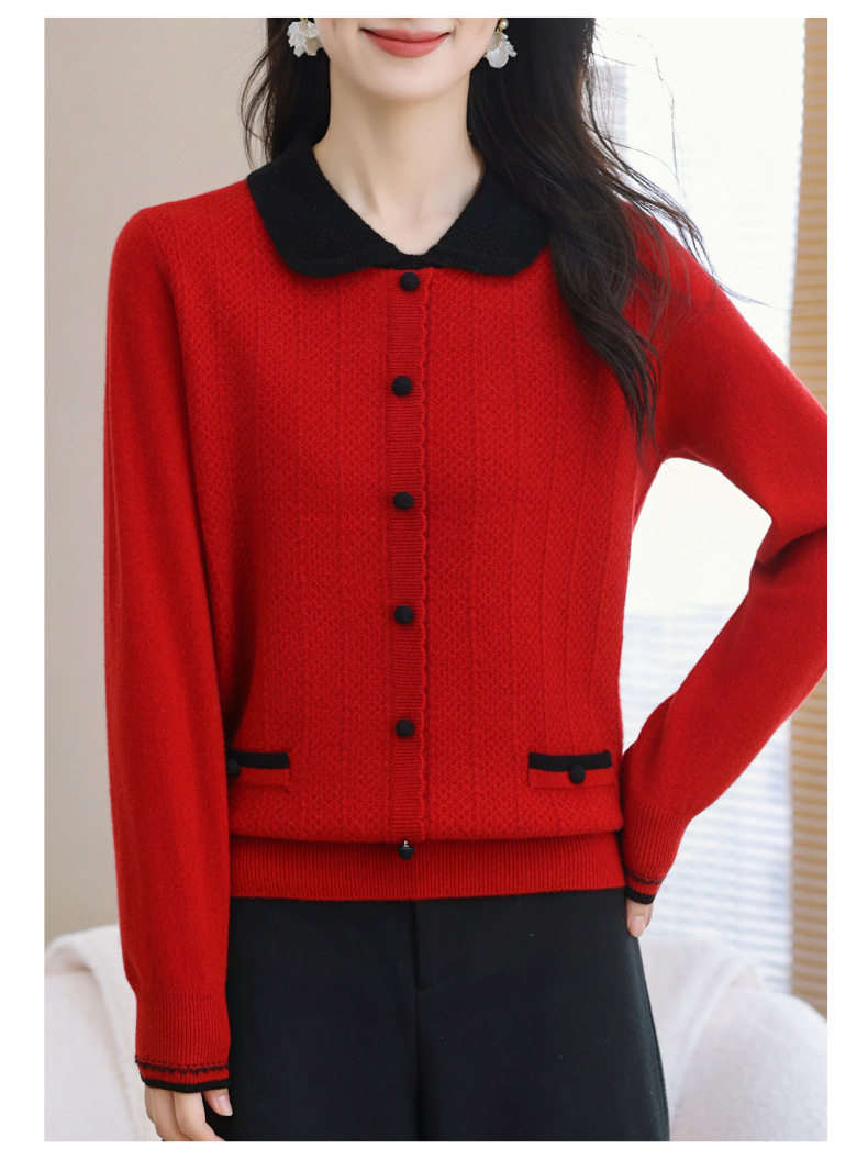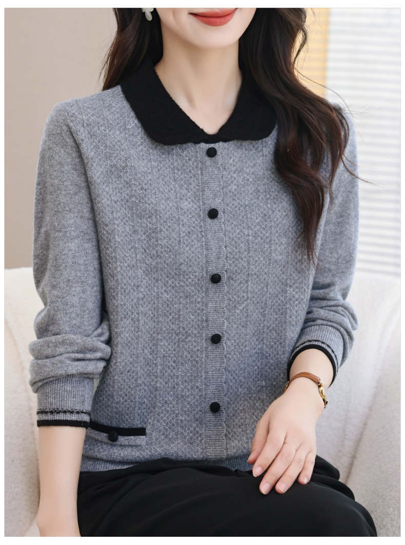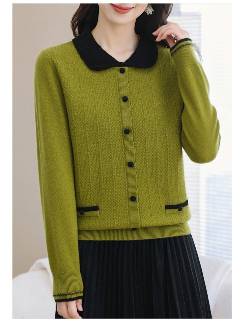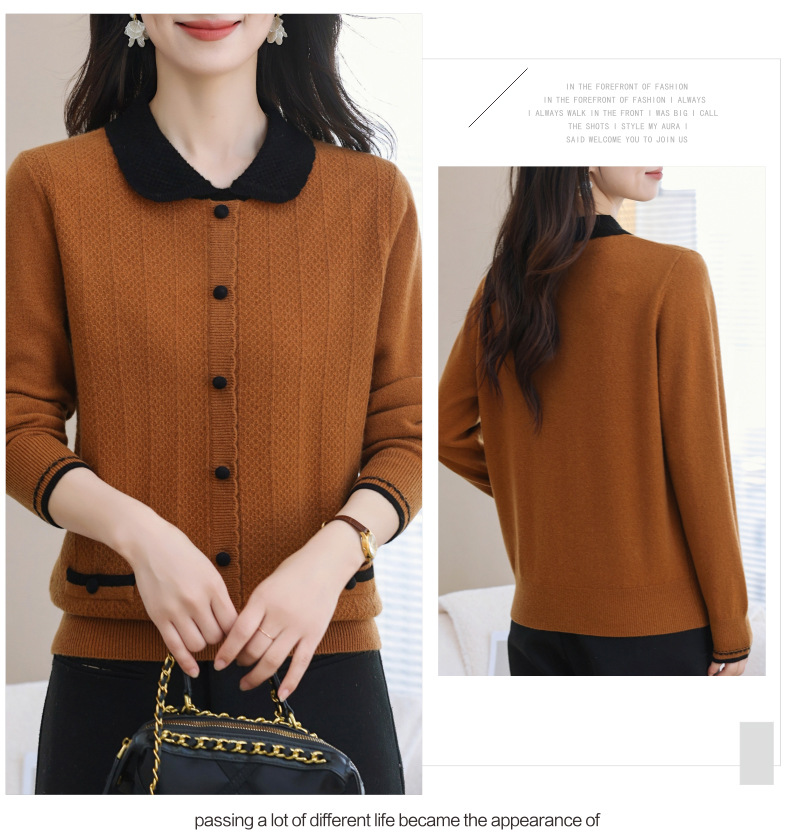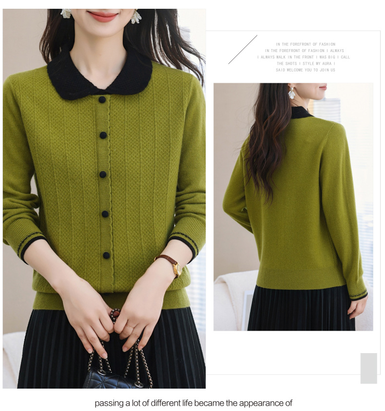 CC-38-6216纯羊毛衫女士100全秋冬季2024新款遮肚打底翻领娃娃毛衣