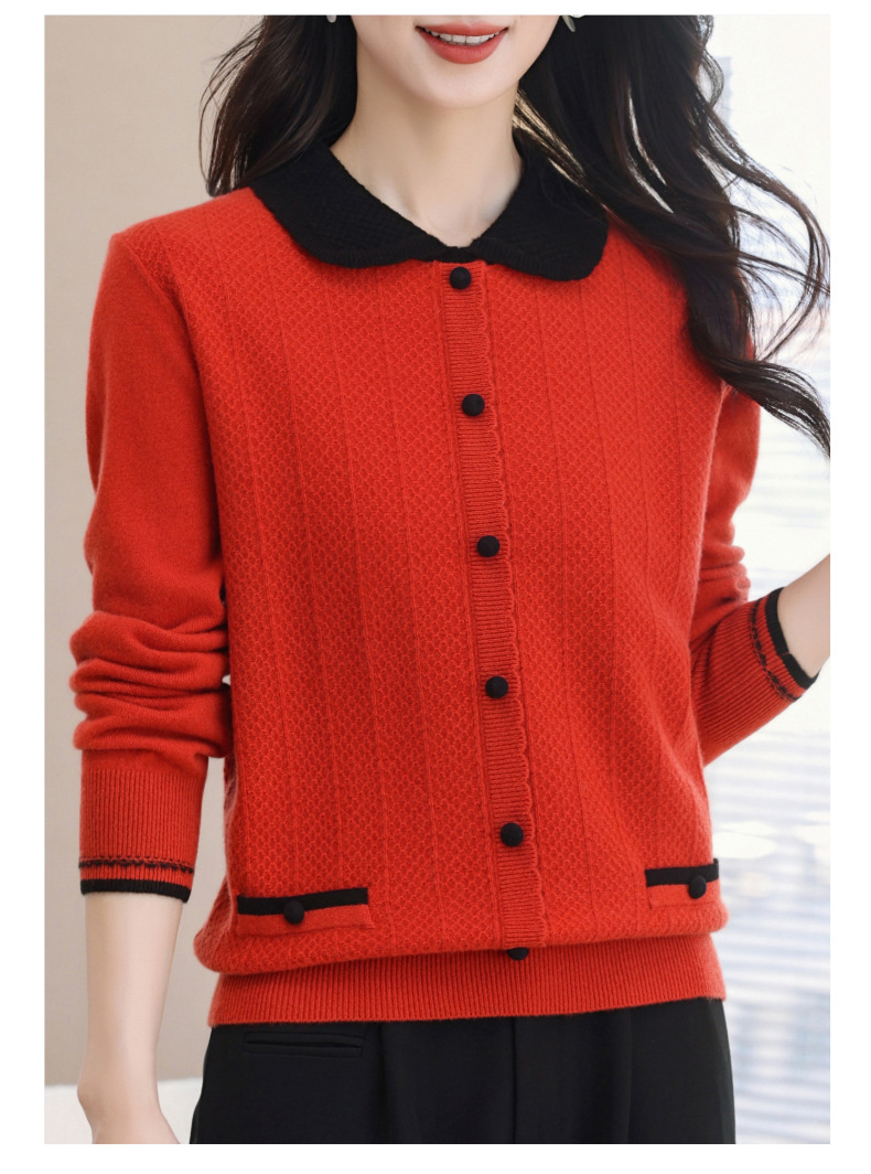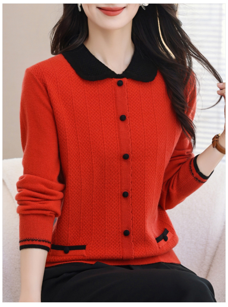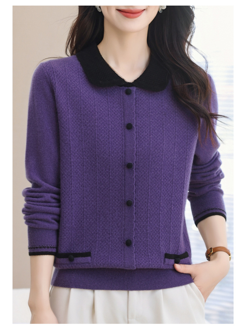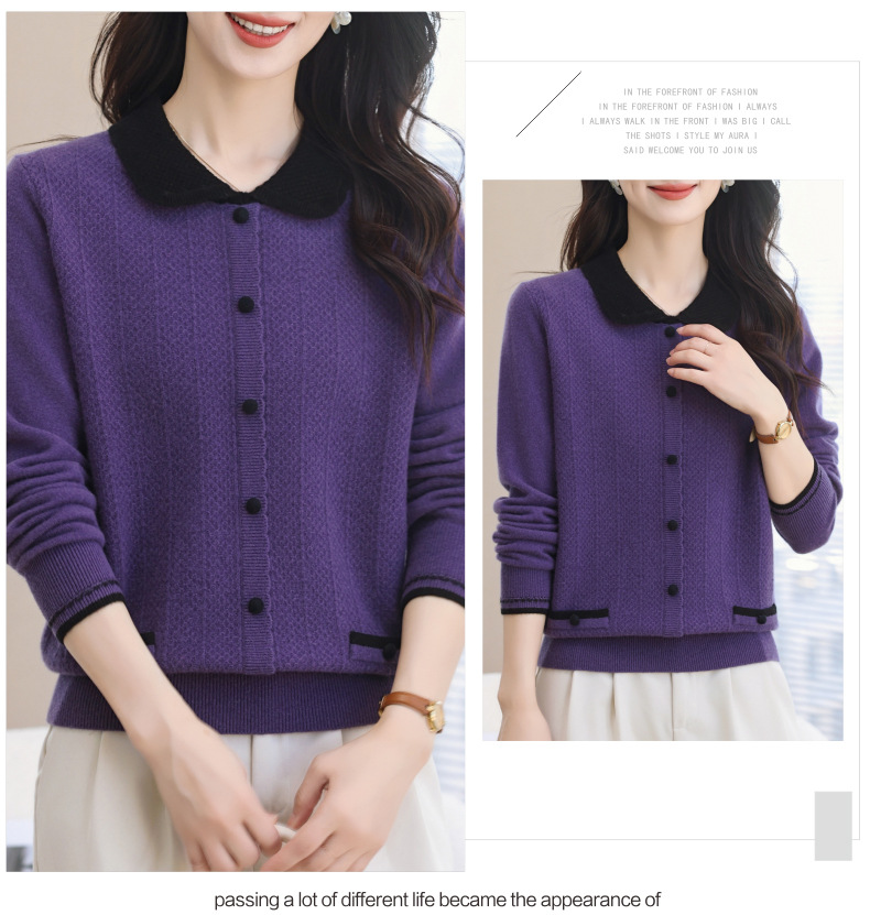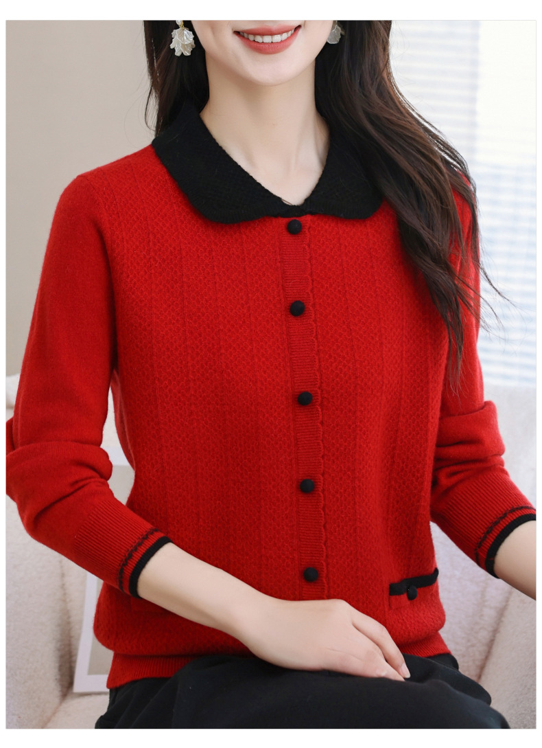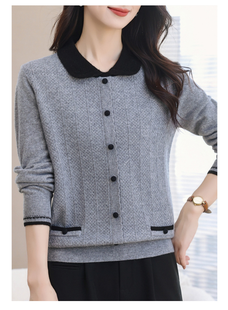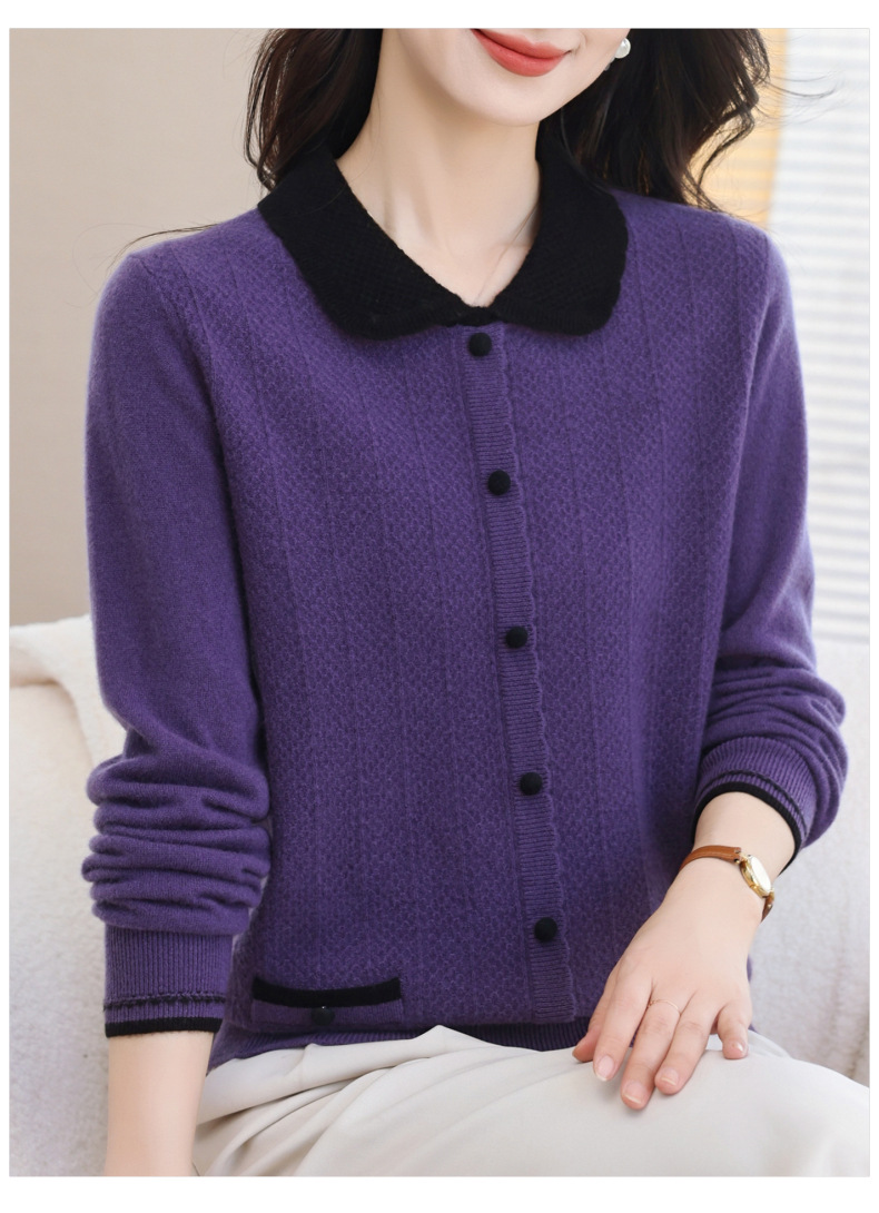 CC-38-6216纯羊毛衫女士100全秋冬季2024新款遮肚打底翻领娃娃毛衣