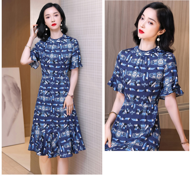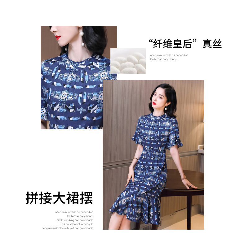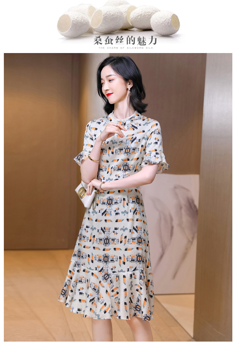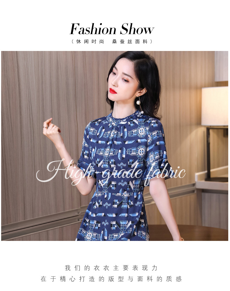 上海旗袍厂ASE-2302圆领气质优雅知性真丝连衣裙桑蚕丝