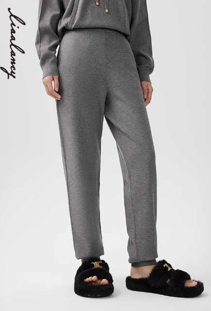 朗姿 高腰束脚宽松针织裤休闲裤LAEK04KPT441G31
