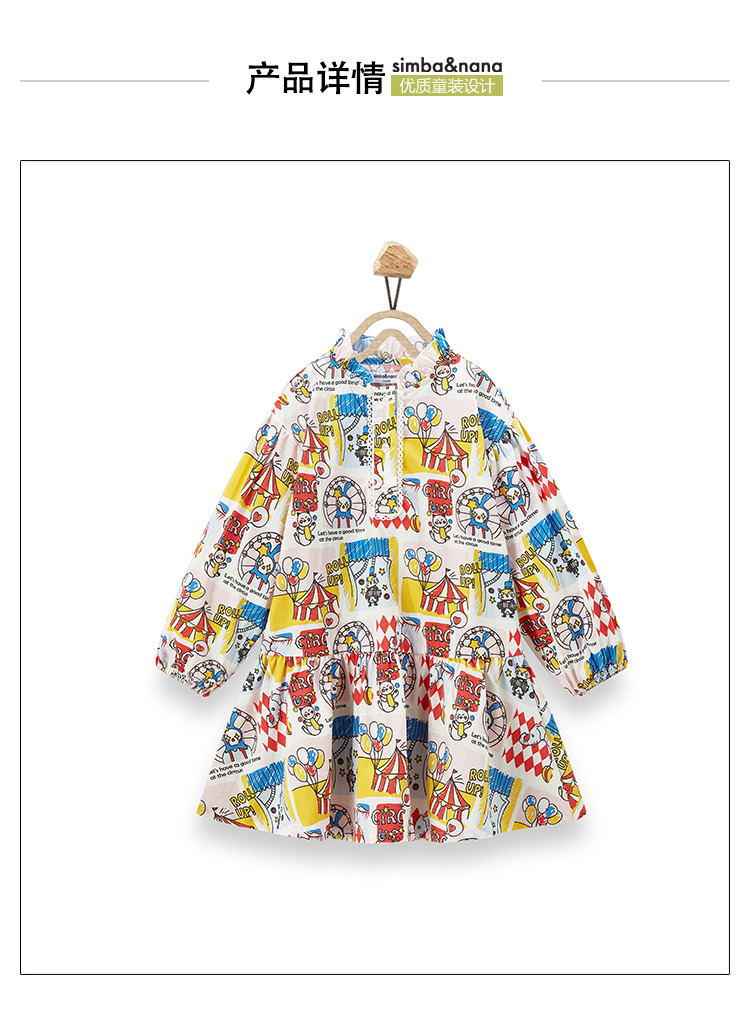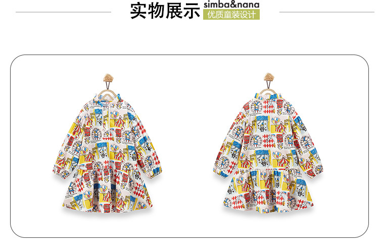 【辛巴娜娜】simbanana复古花色长袖满印蕾丝花边女宝宝连衣裙