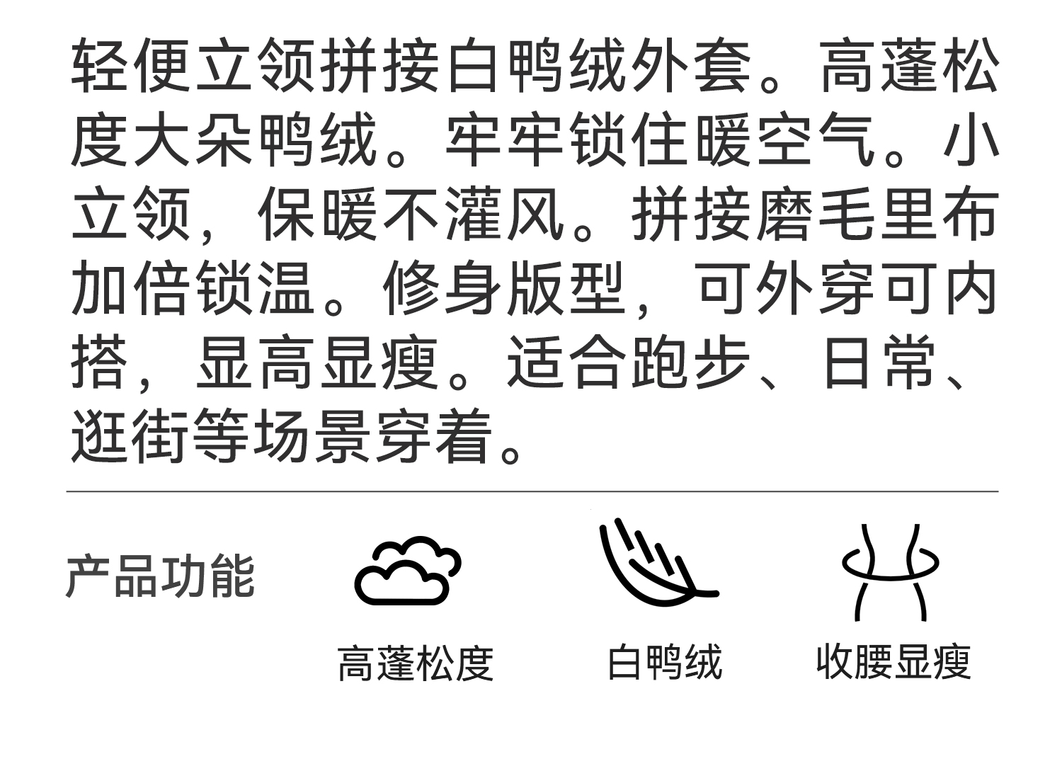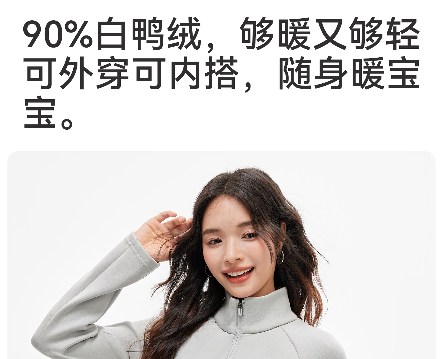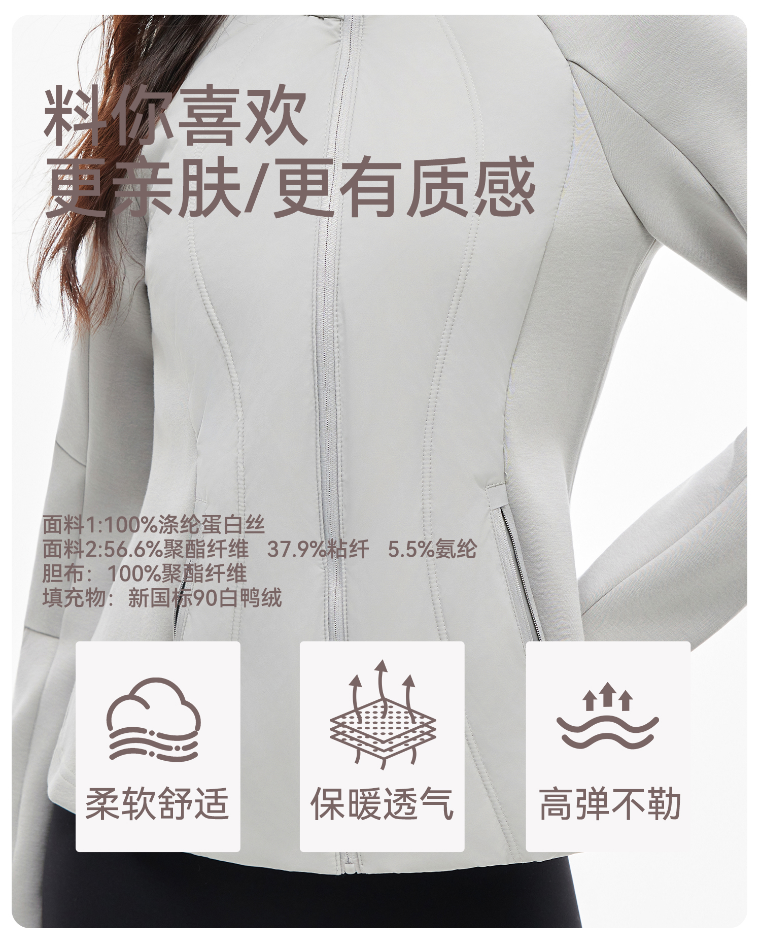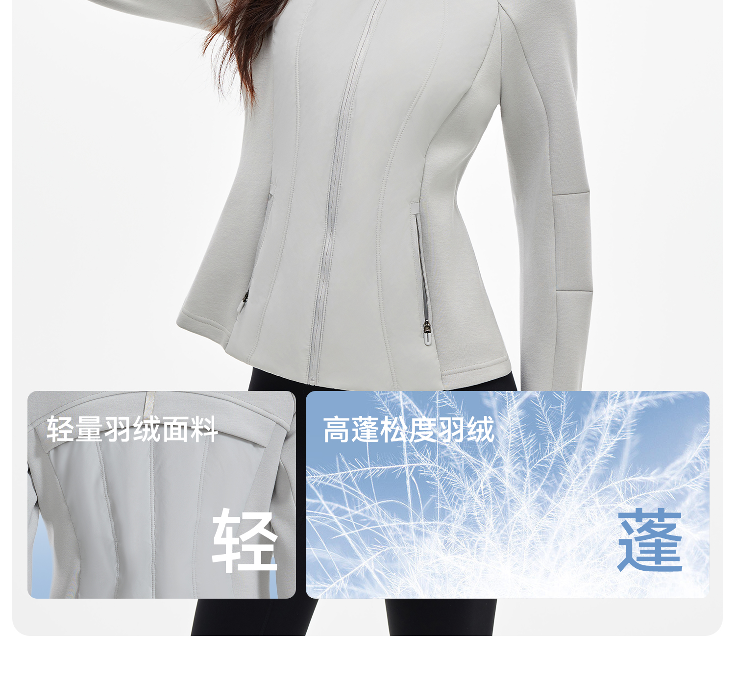 跃牌【安琪拉系列】新款轻薄鸭绒羽绒服女冬季短款修身瑜伽跑步立领运动保暖外套WT8531