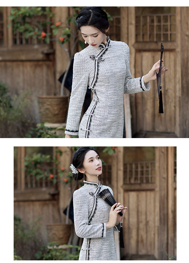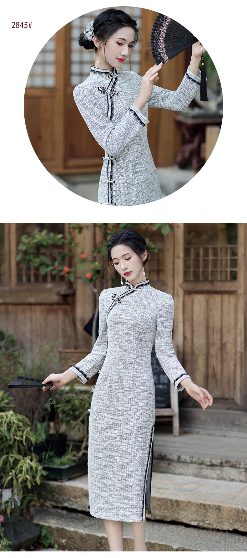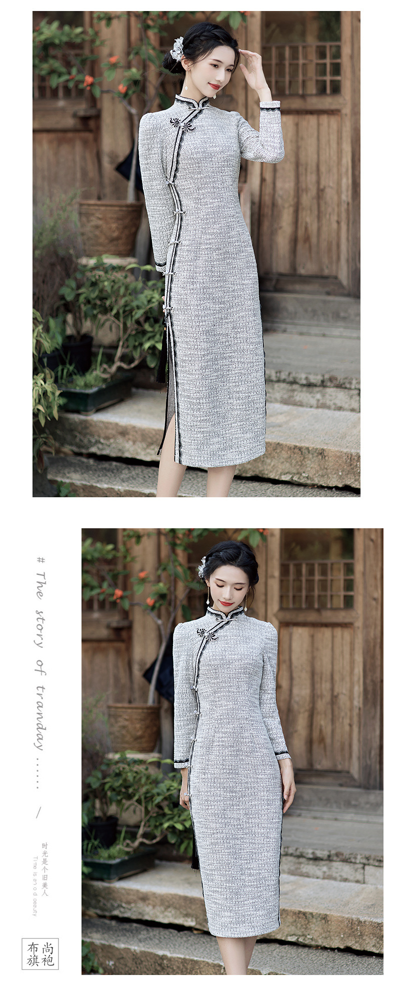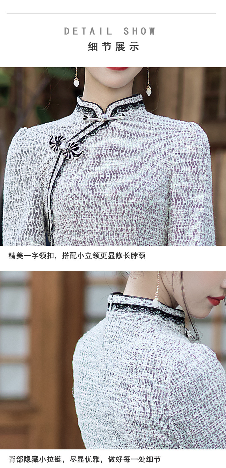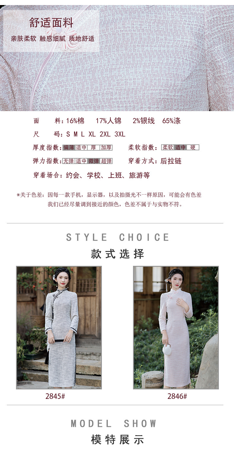 锦棉银丝私服小香风名媛旗袍,聚会宴会走秀优雅气质旗袍BS-2846