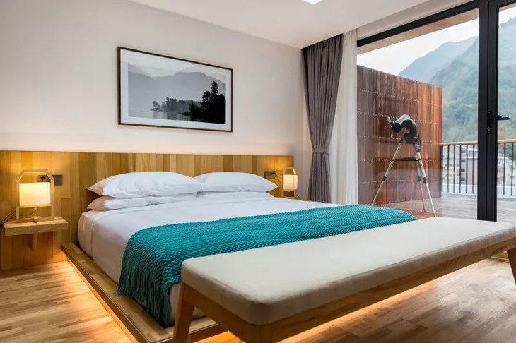 与其他房间的汤泡池不同,loft房间的汤泡池在超大的室外露台上,与整个清新的山谷亲密接触。还自带一台天文望远镜,让你看星空更清晰。