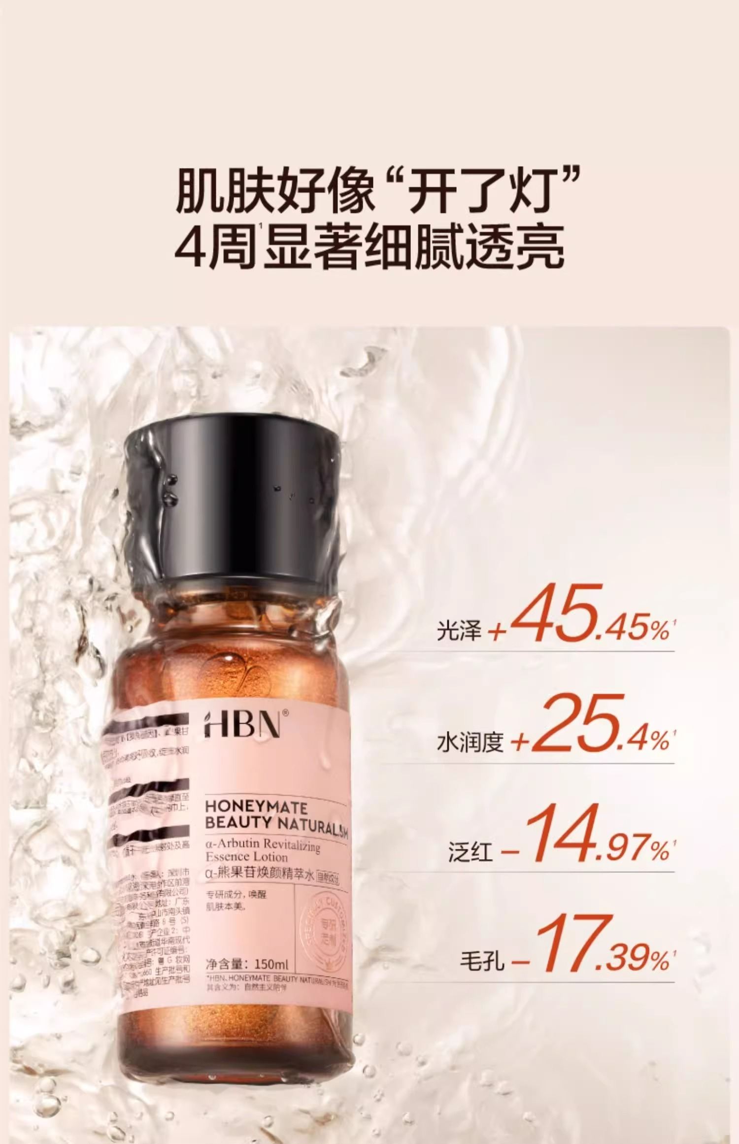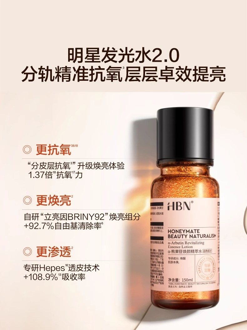 【发光水限时活动:198元/2瓶】HBN·α-熊果苷焕颜精萃水150ml