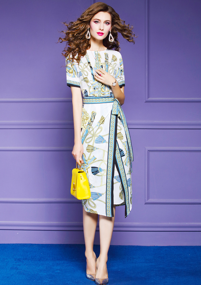 FMY-F20XL31501复古设计感小众圆领修身中长裙