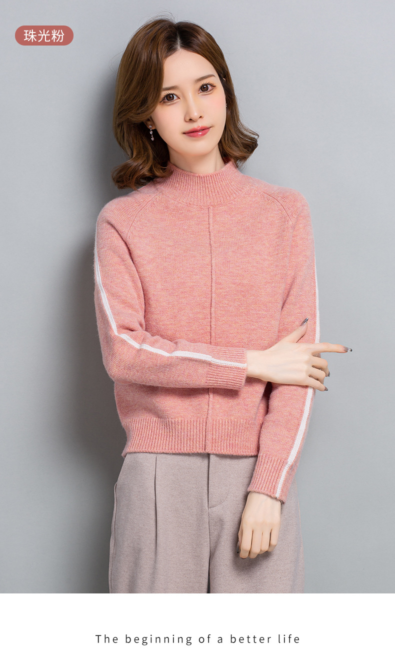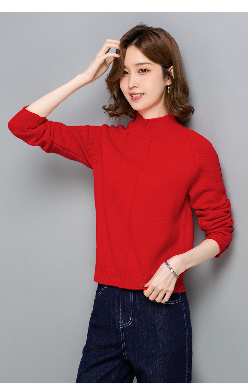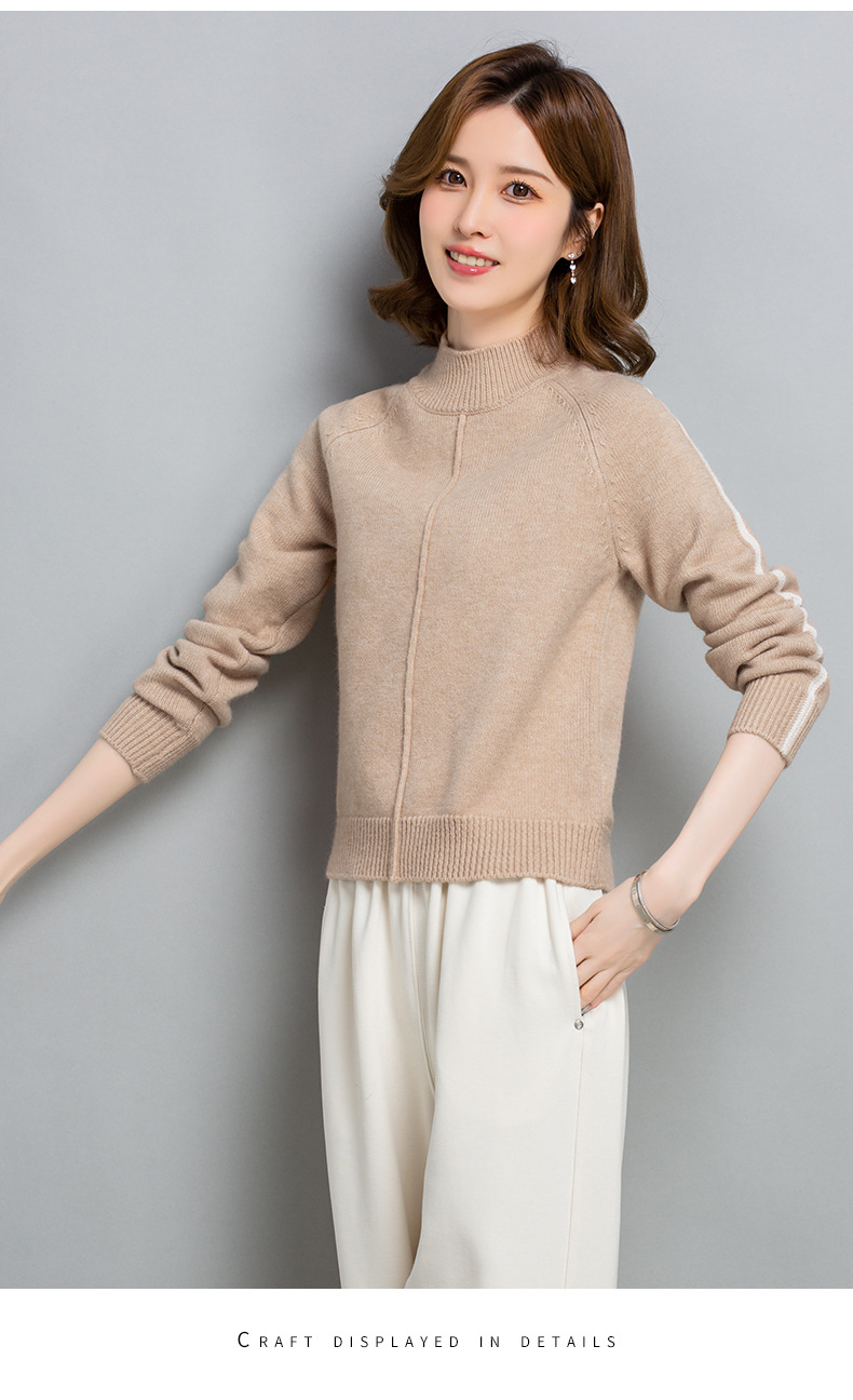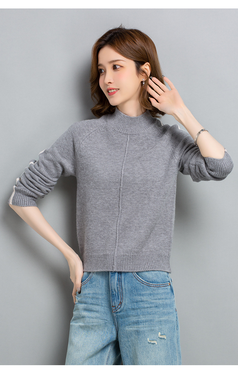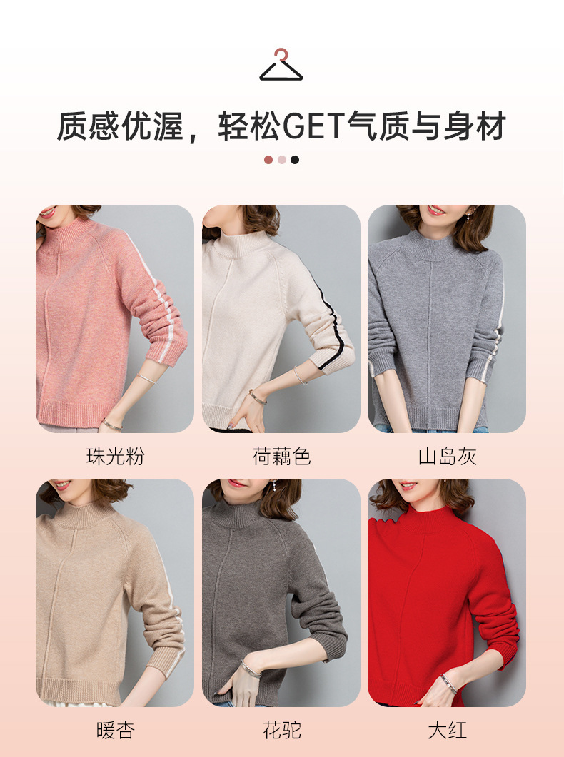 小个子短款毛衣,女士宽松秋冬季宽松休闲上衣洋气半高领针织打底衫CC-23210