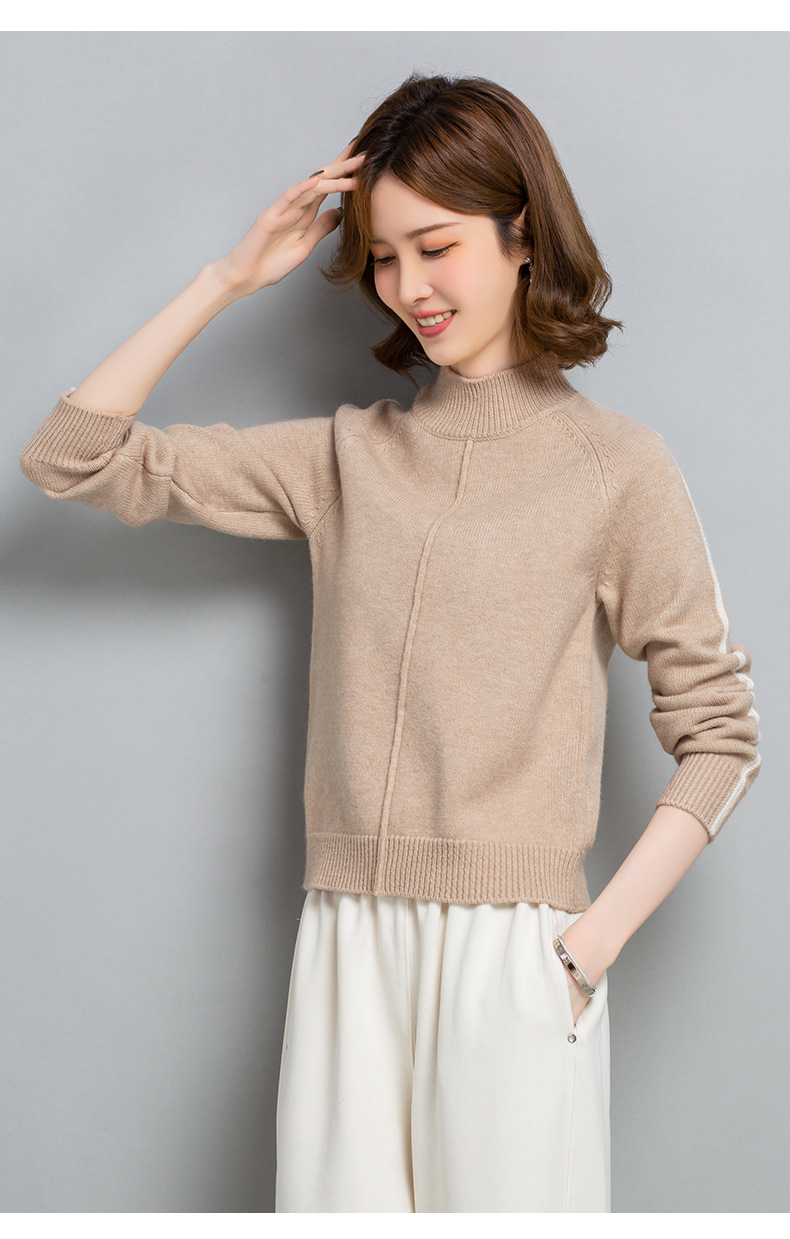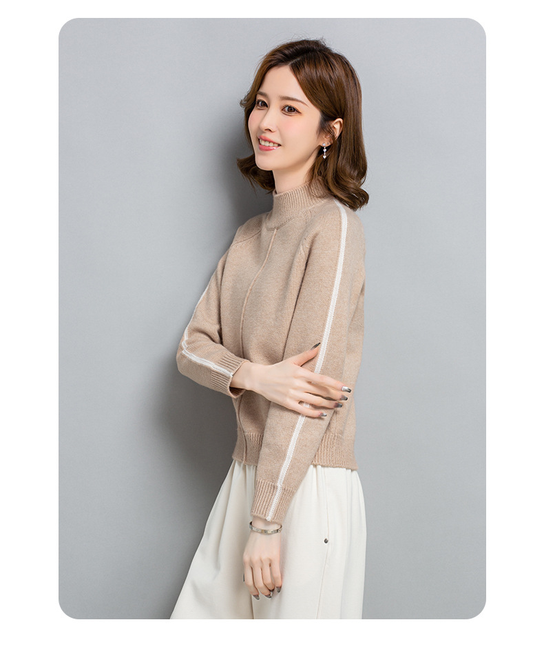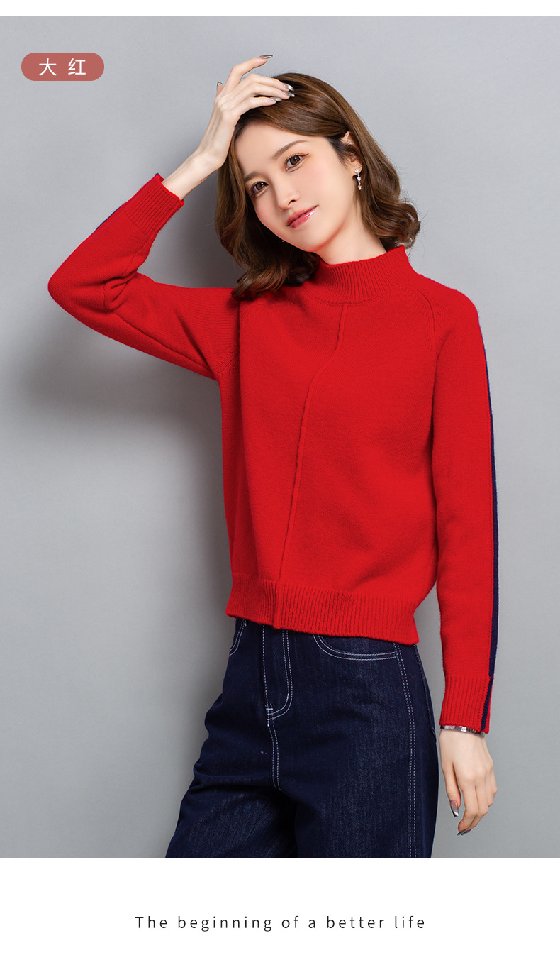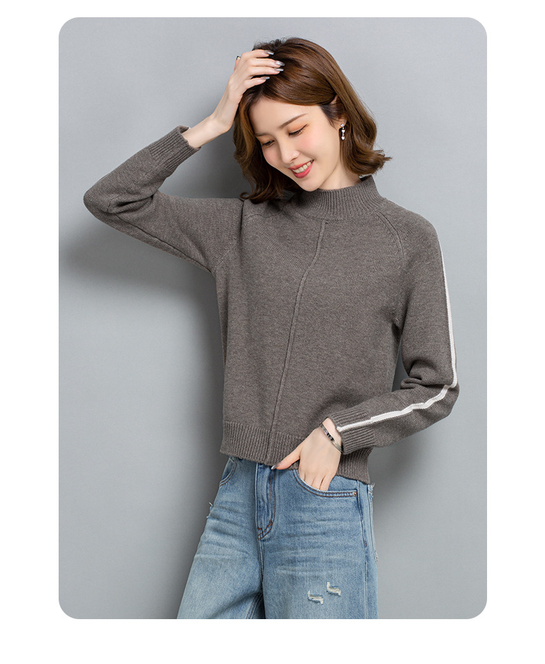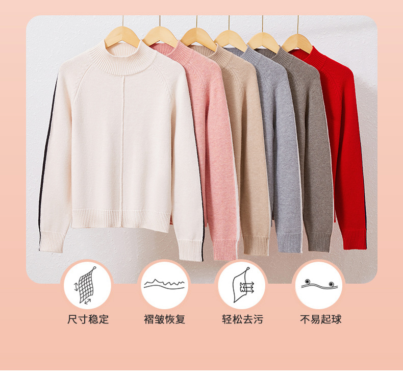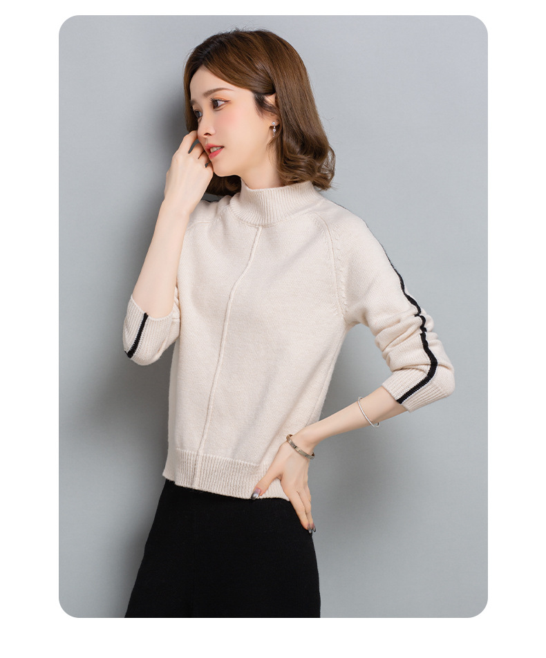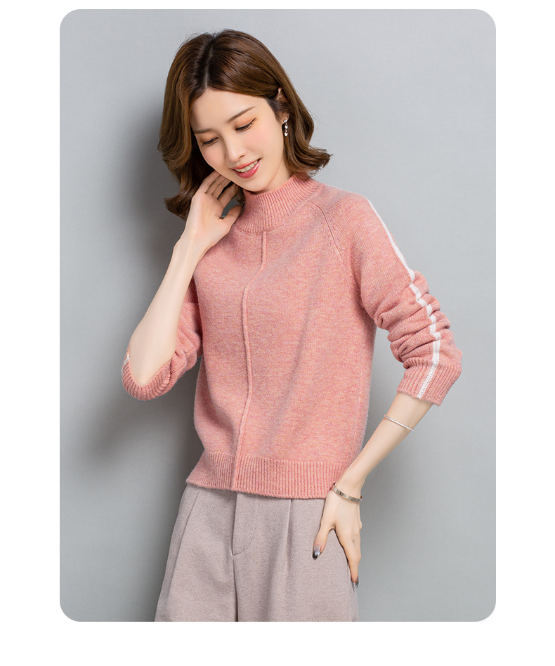 小个子短款毛衣,女士宽松秋冬季宽松休闲上衣洋气半高领针织打底衫CC-23210