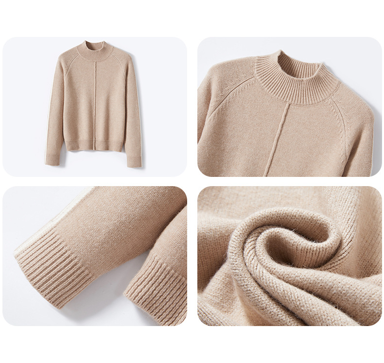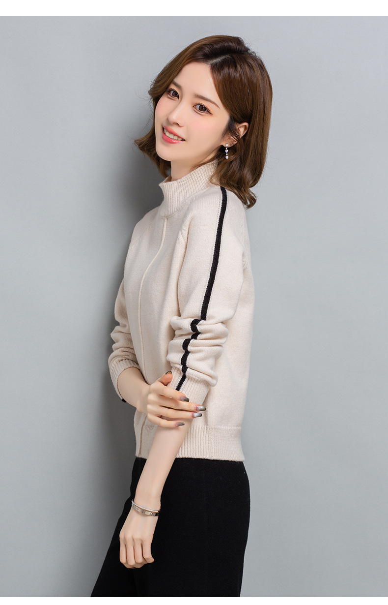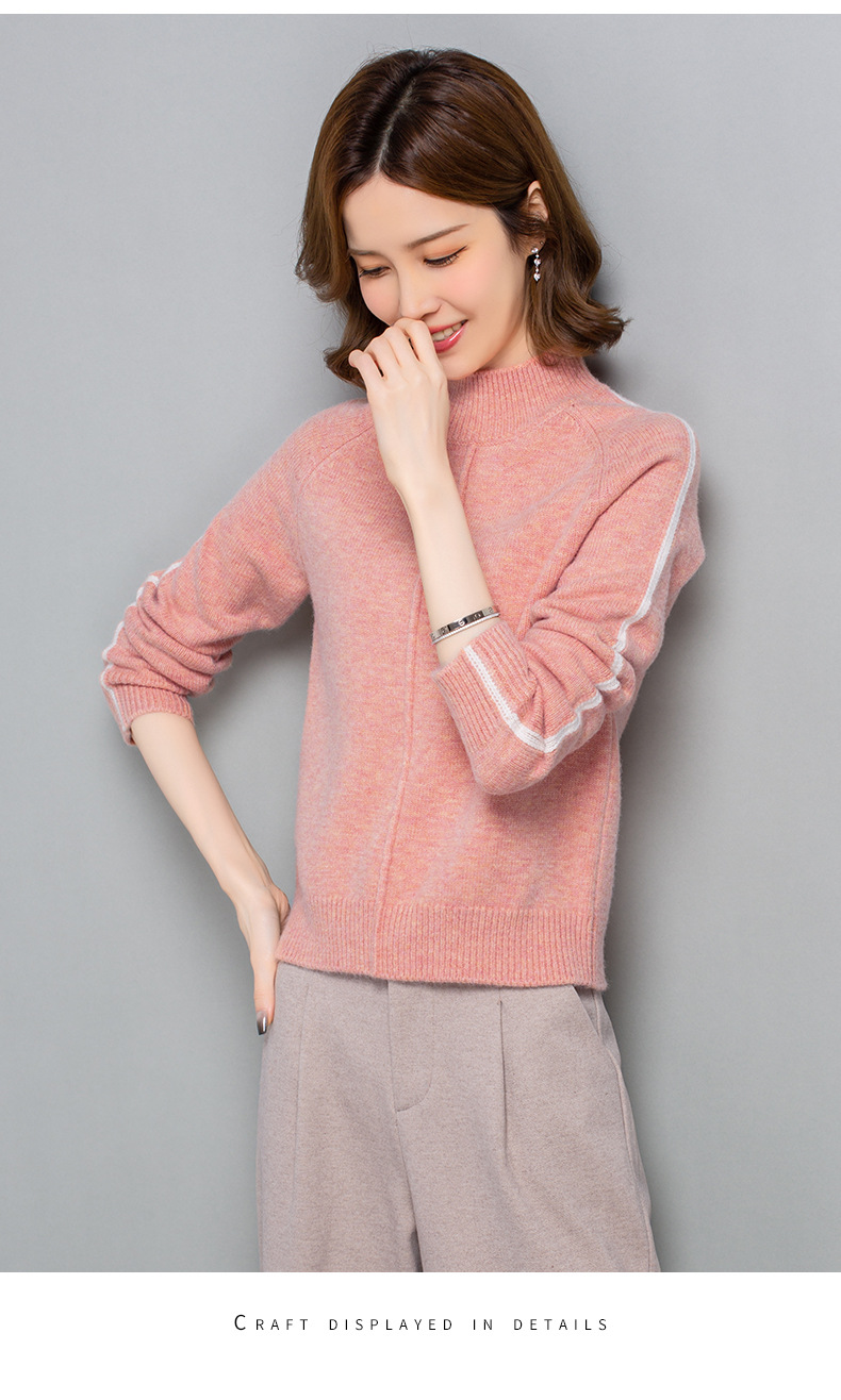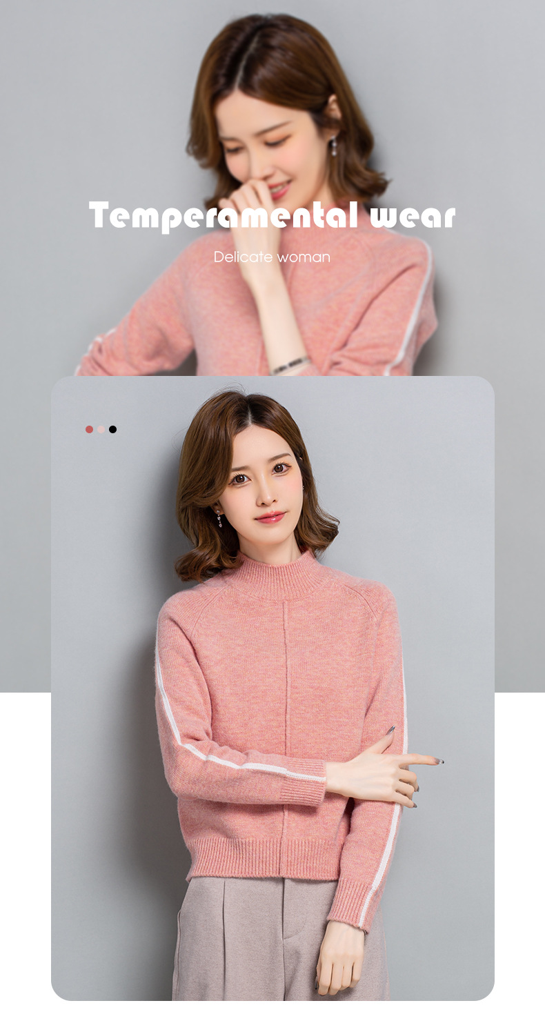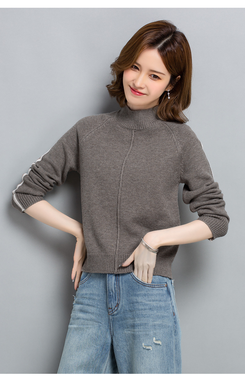 小个子短款毛衣,女士宽松秋冬季宽松休闲上衣洋气半高领针织打底衫CC-23210